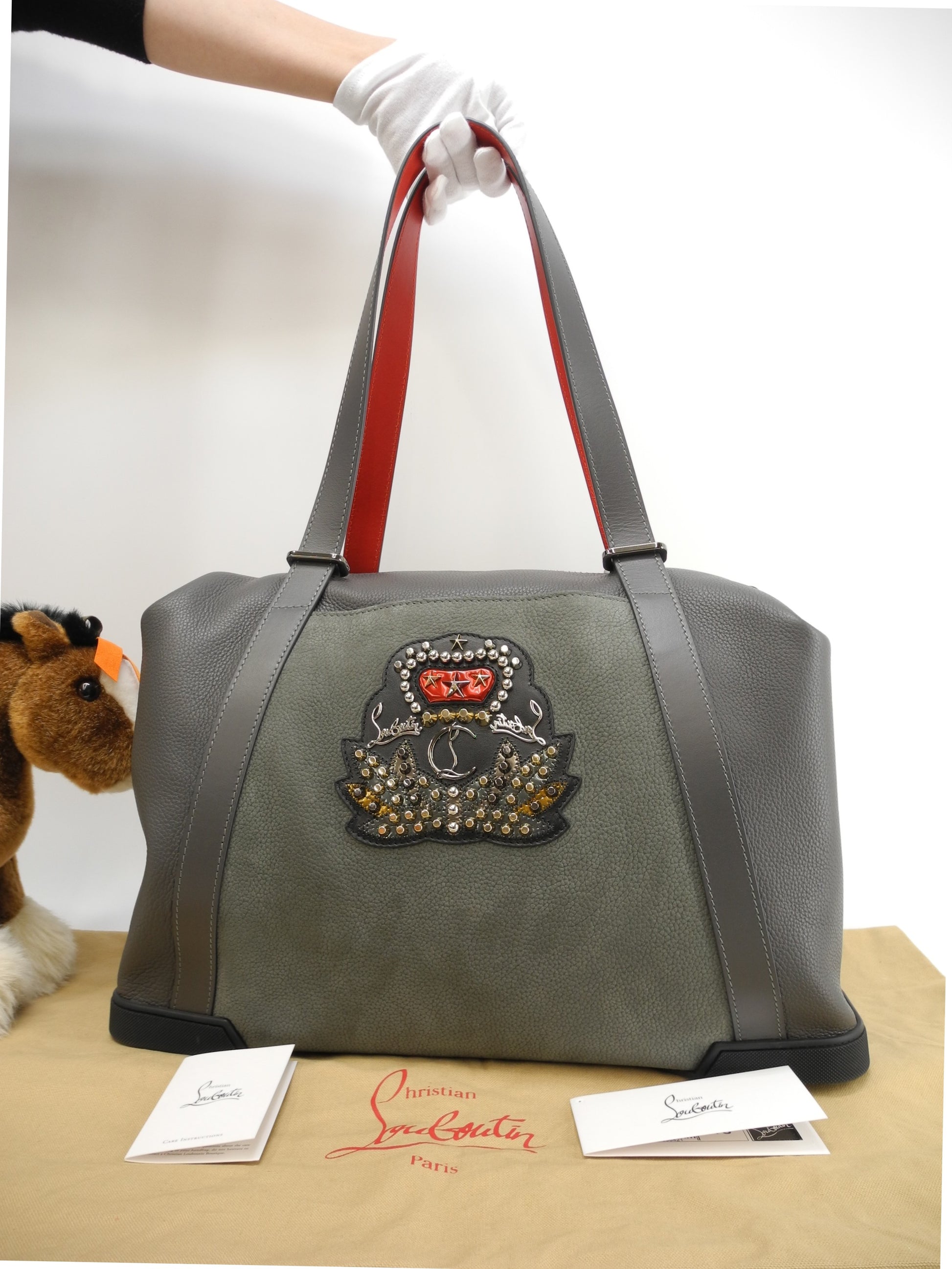 #ChristianLouboutin #Bagdamon #Totebag #Holdall #Charbon #Gray #Calf #Leather #90%new #authentic #stads #spikes #handbag #mens #1175020 #Gold #Silver #secondhand #wholeSale