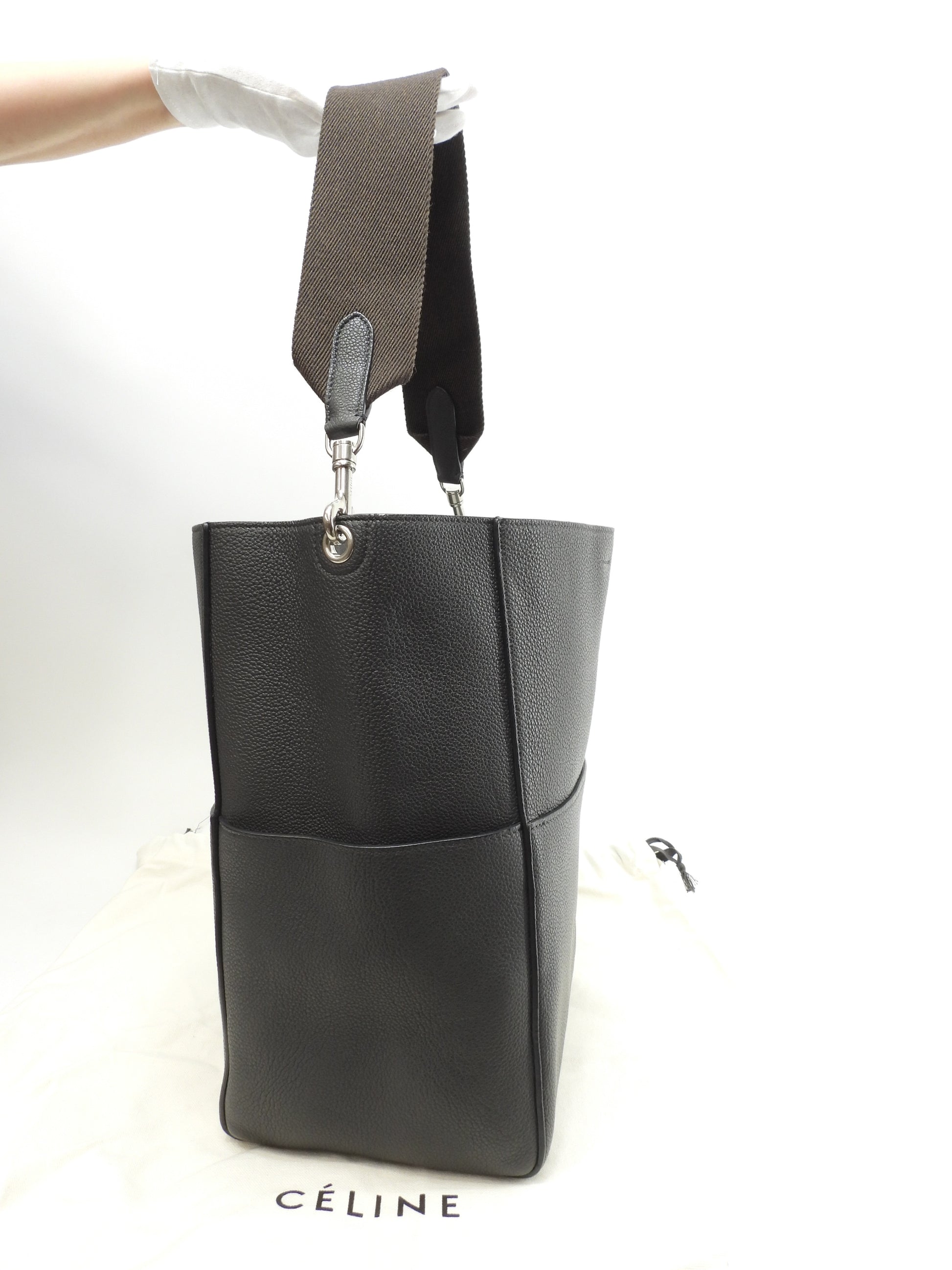 セリーヌ サングルバケット トゴレザー 灰 ホーボーバッグ セミショルダーバッグ 極美品@S-SL-3187