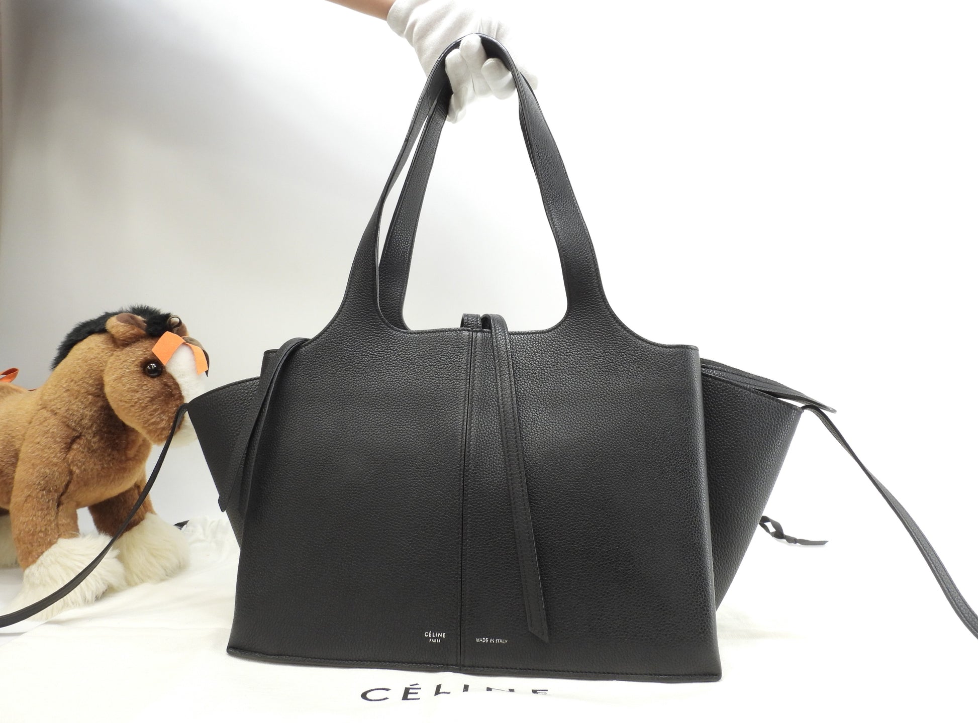 セリーヌ トリフォルド スモール レザー黒 トートバッグ ショルダーバッグ@U-GA-5116