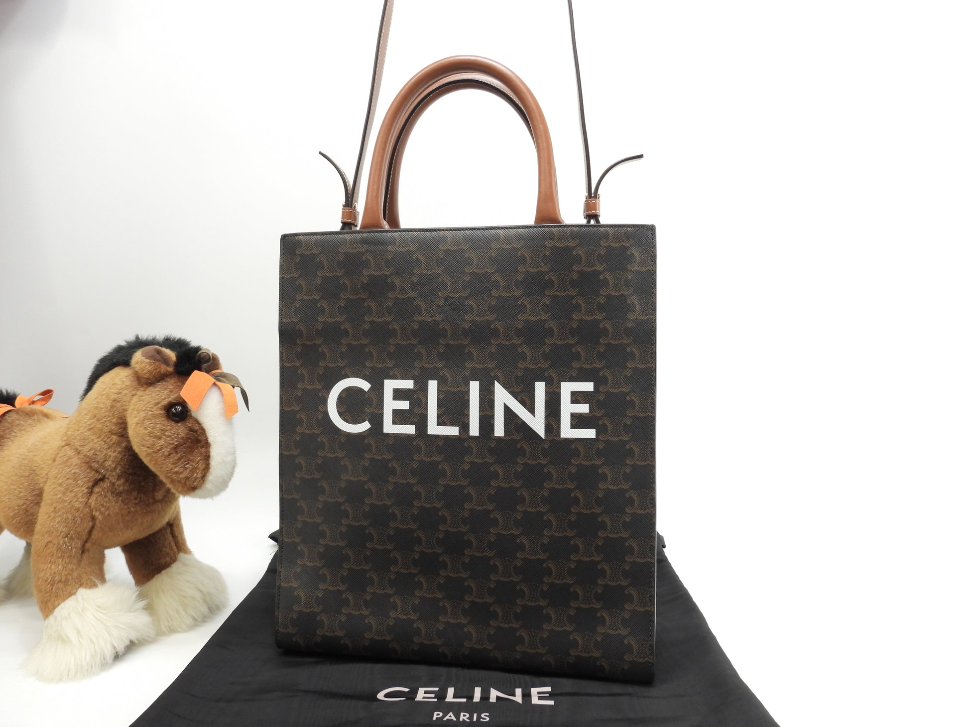 #Celine #HandBag #Strap #Medium #Vertical #Caba #VerticalCaba #TRIOMPHE #PVC #Leather #BK #Brown #90%new #authentic #Crossbody #Bag #Pochette #ShoulderBag #Gold #secondhand #wholeSale #haibanya #aisai-jp #転売可
