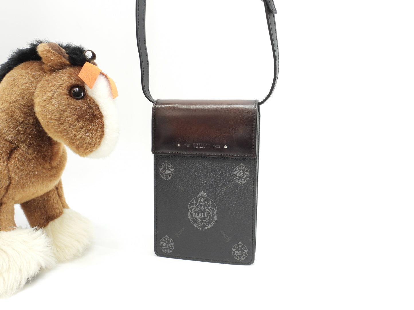 ベルルッティ ミニポシェット シグネチャー 黒茶革 クロスボディバッグ フォンケース 美品@G0220