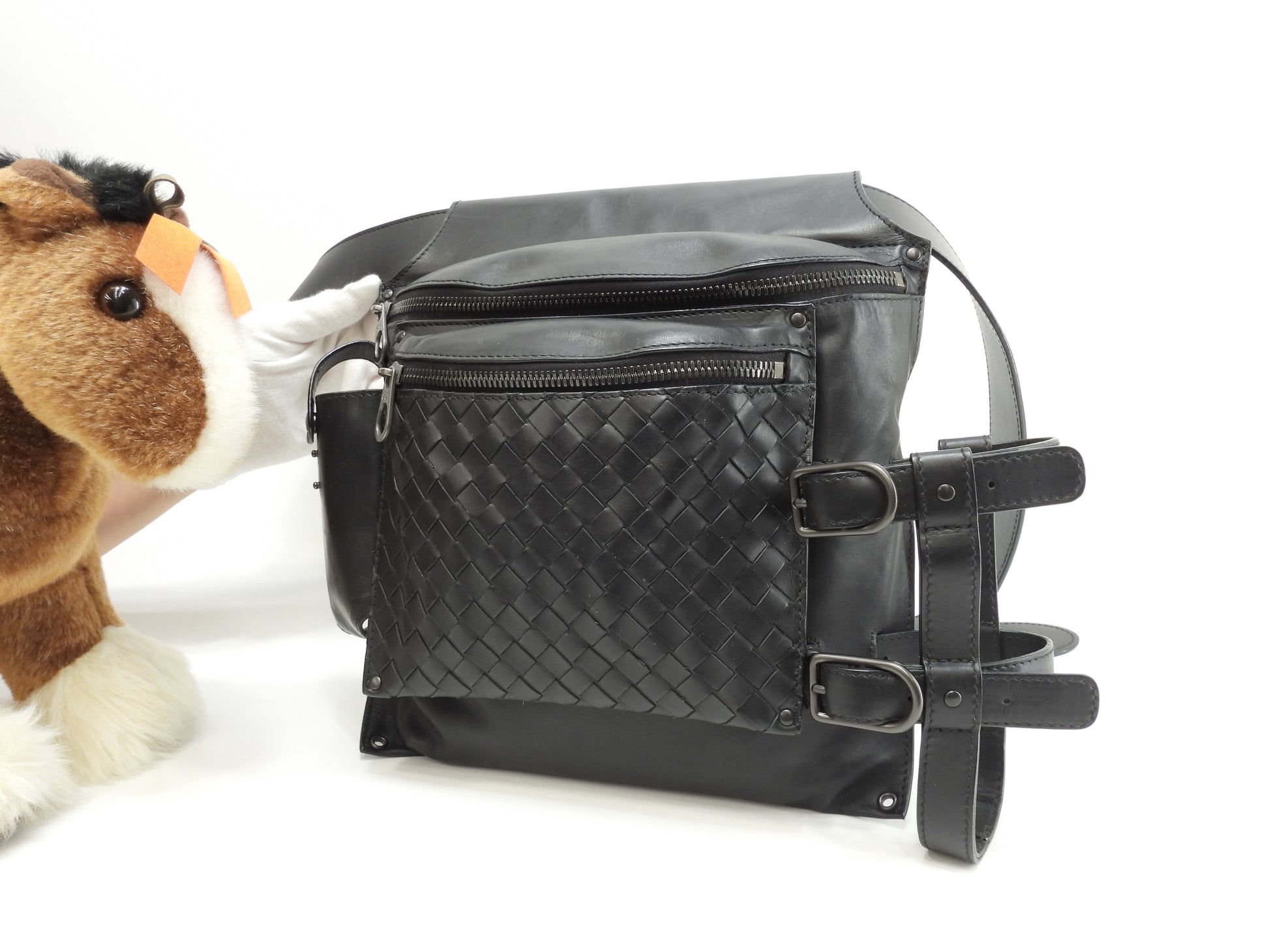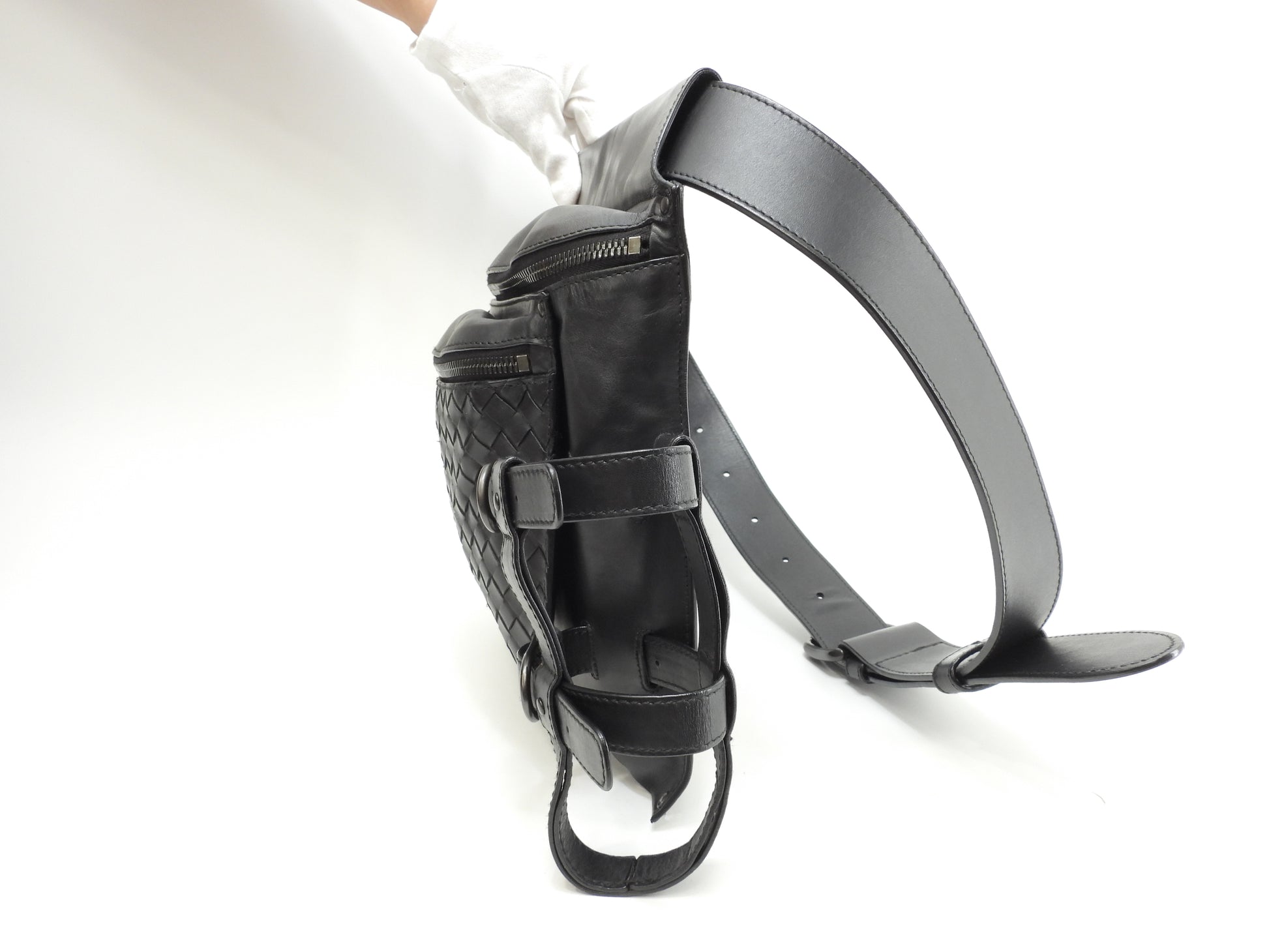 ボッテガヴェネタ ボディバッグ イントレチャート レザー黒 ウエストバッグ 美品@ 251