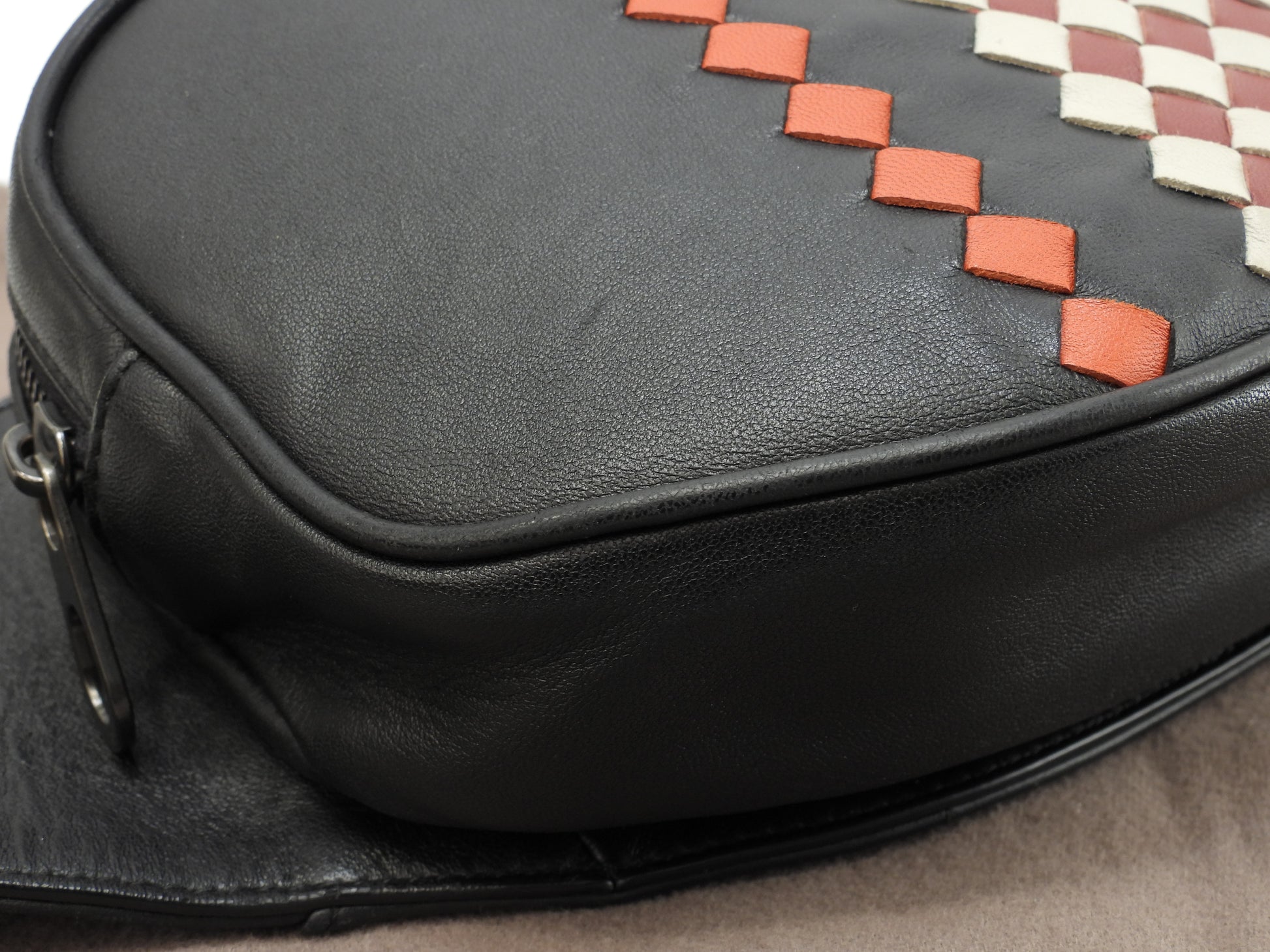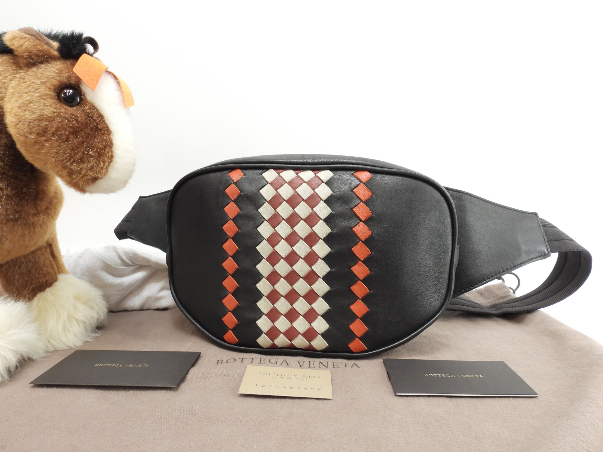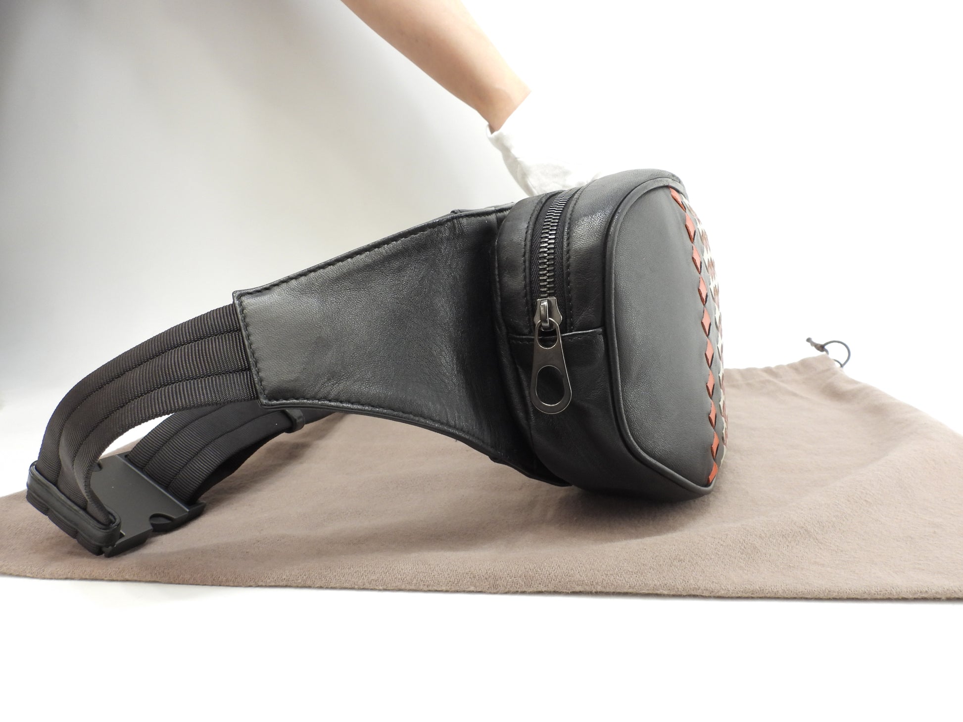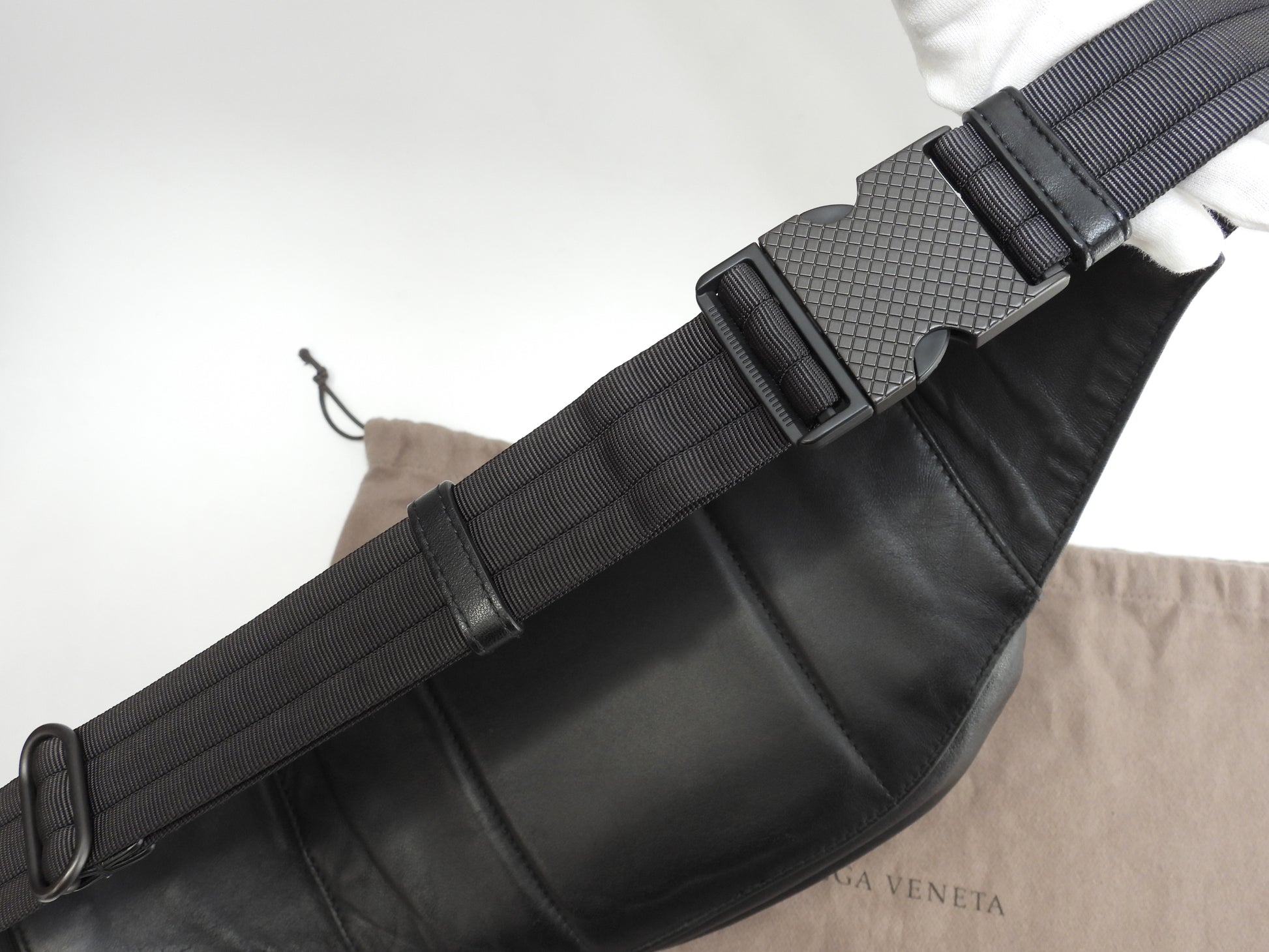 ボッテガヴェネタ ボディバッグ イントレチャート レザー黒 斜掛ショルダーバッグバムバッグ@B07843435K