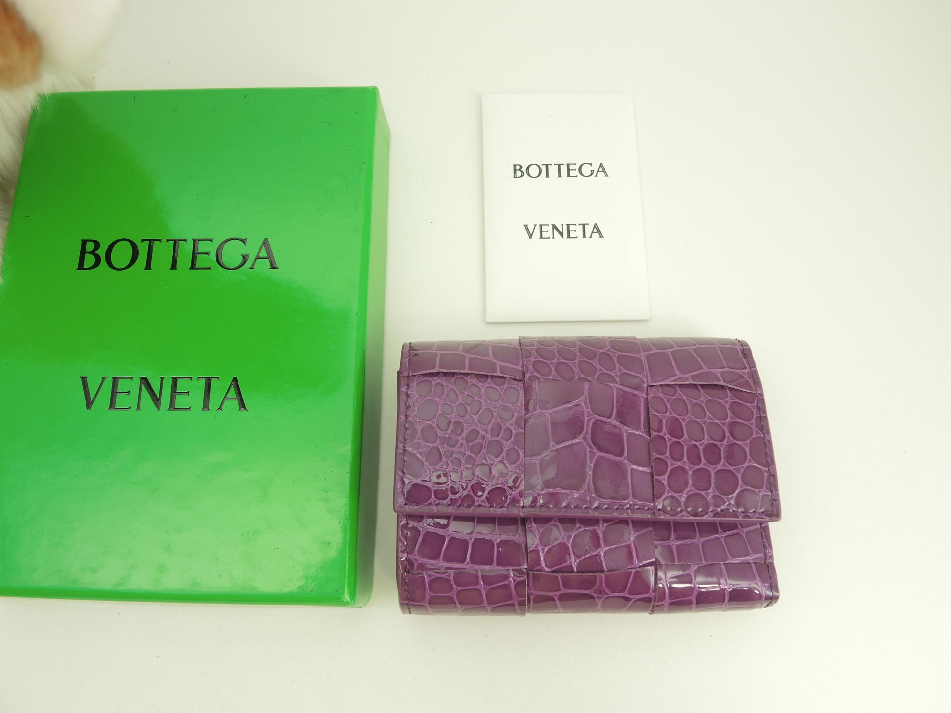 #BOTTEGAVENETA #Bottega #Veneta #CompactWallet #SmallWallet #Wallet #Shine #Crocodile #Cassette #Purple #90%new #authentic #Tri-Hold #Gold #secondhand #wholeSale #haibanya #aisai-jp #転売可