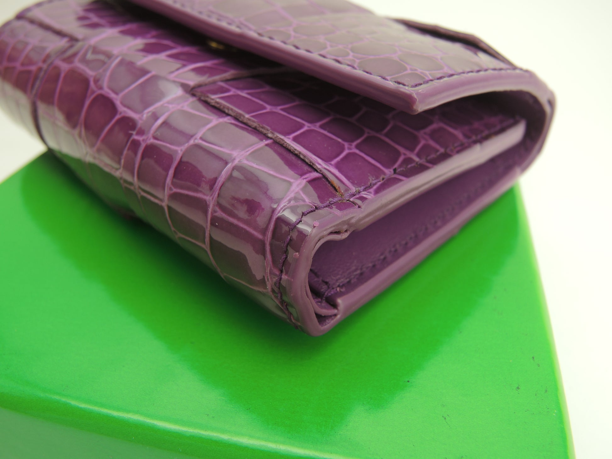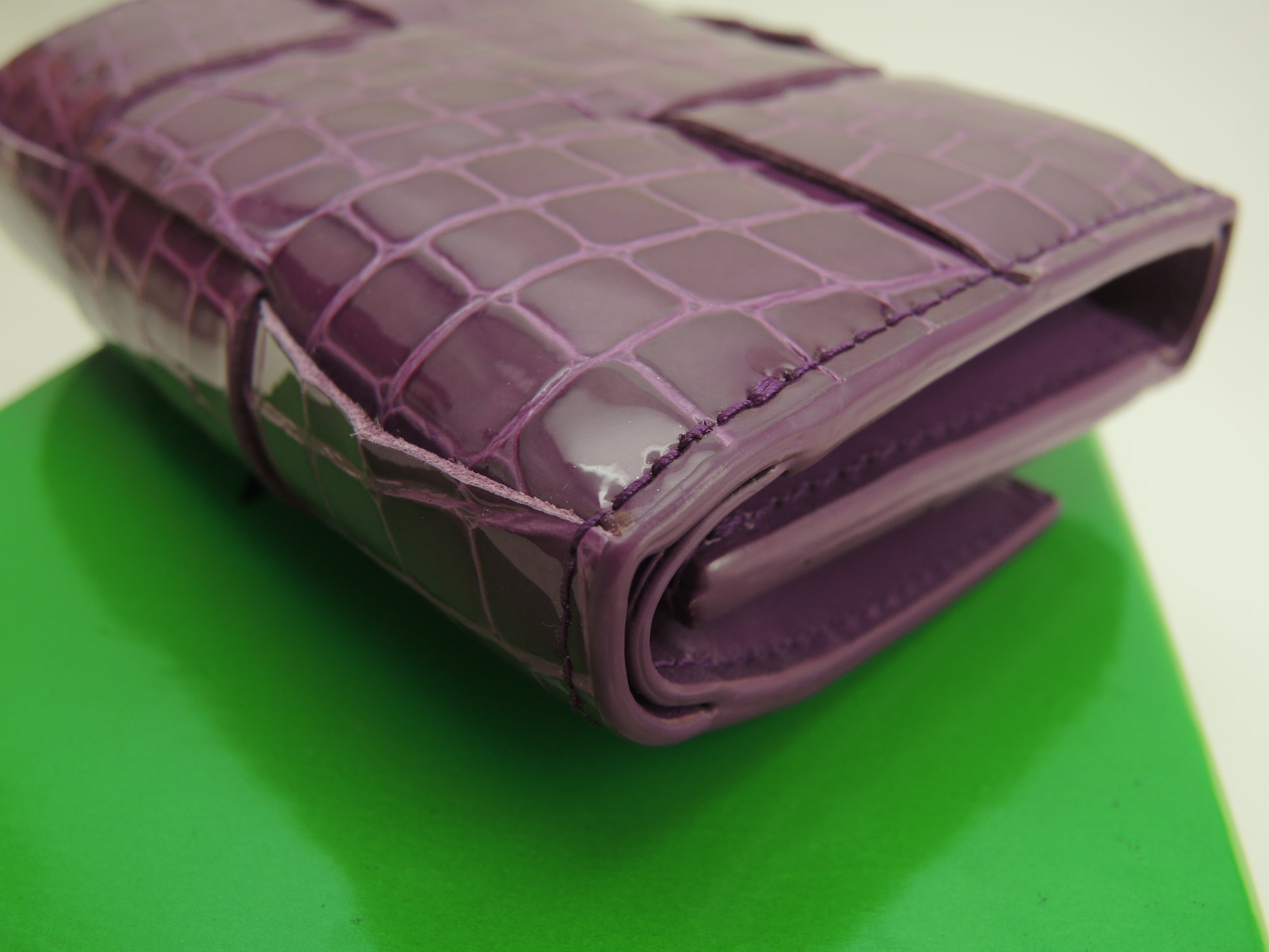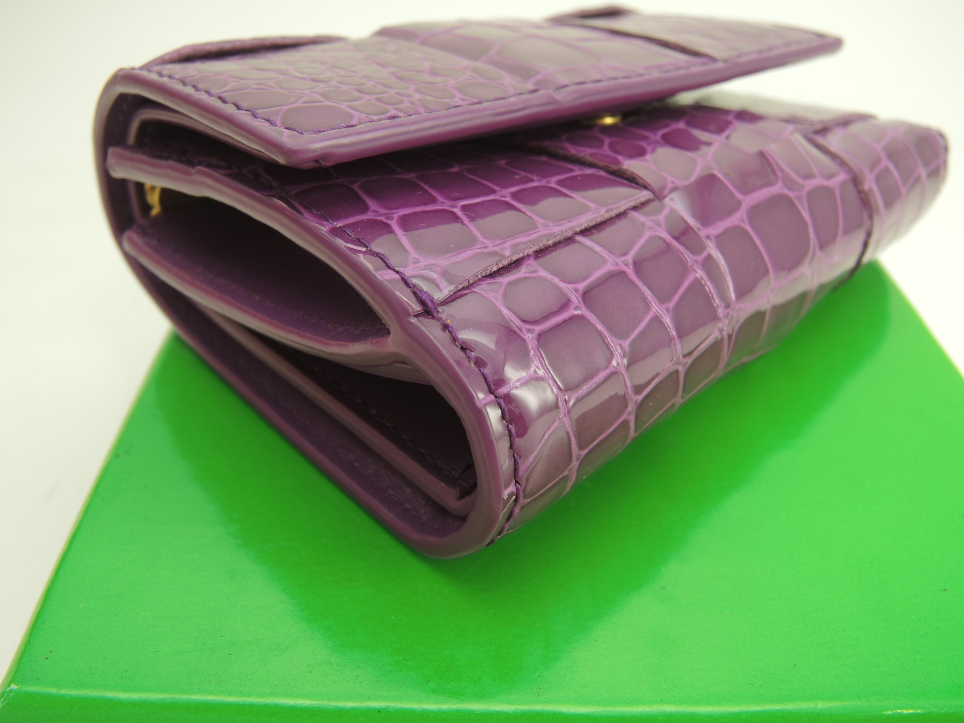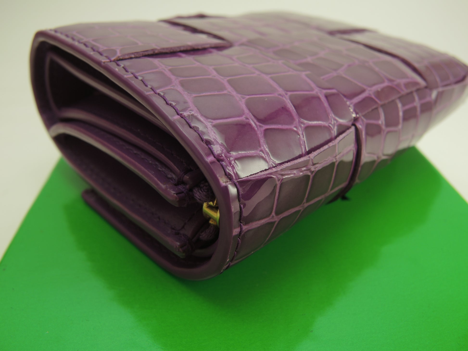 ボッテガヴェネタ 3折財布 カセット クロコダイル紫 スモールウォレット 極美品@P02710410A