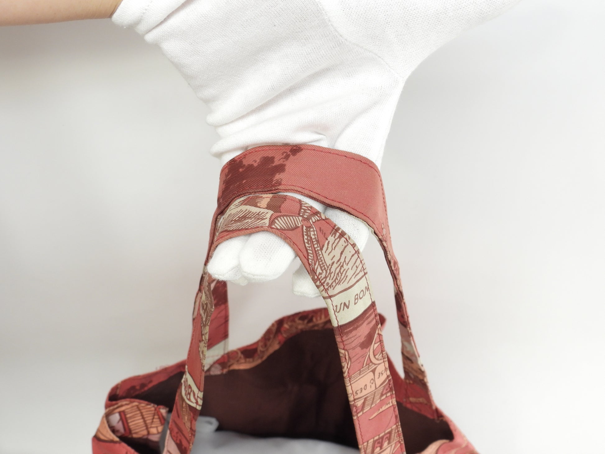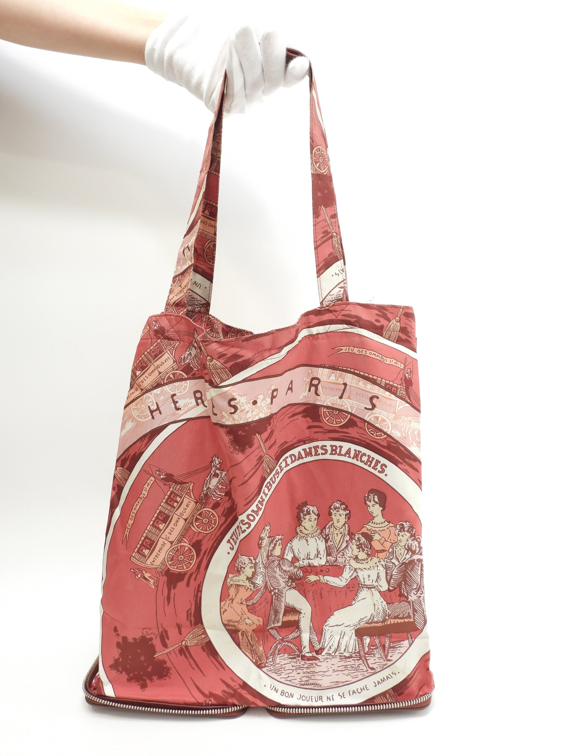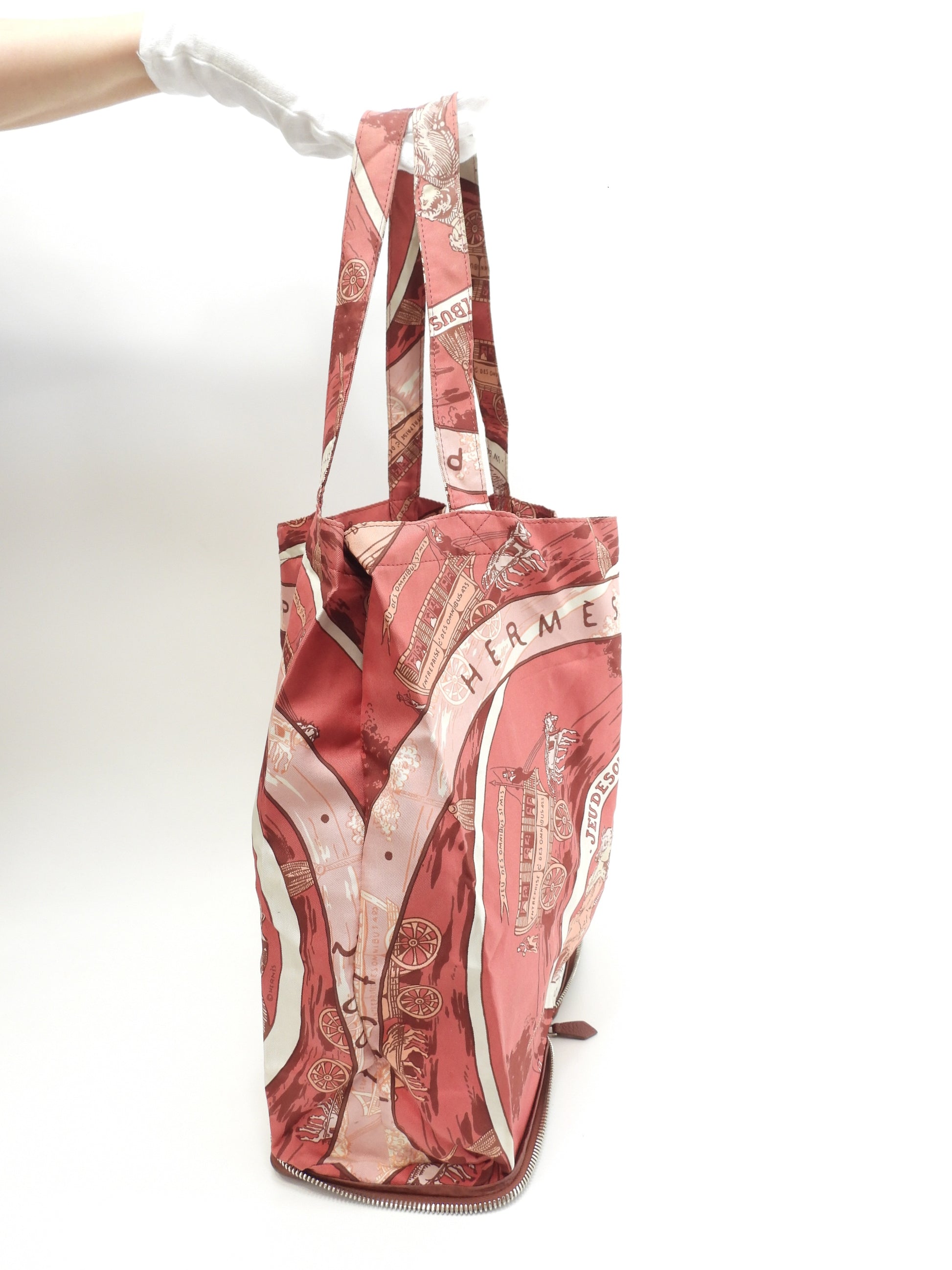 エルメス シルキーポップ シルク白ピンク レザー赤茶 エコバッグ ハンドバッグ@ 1