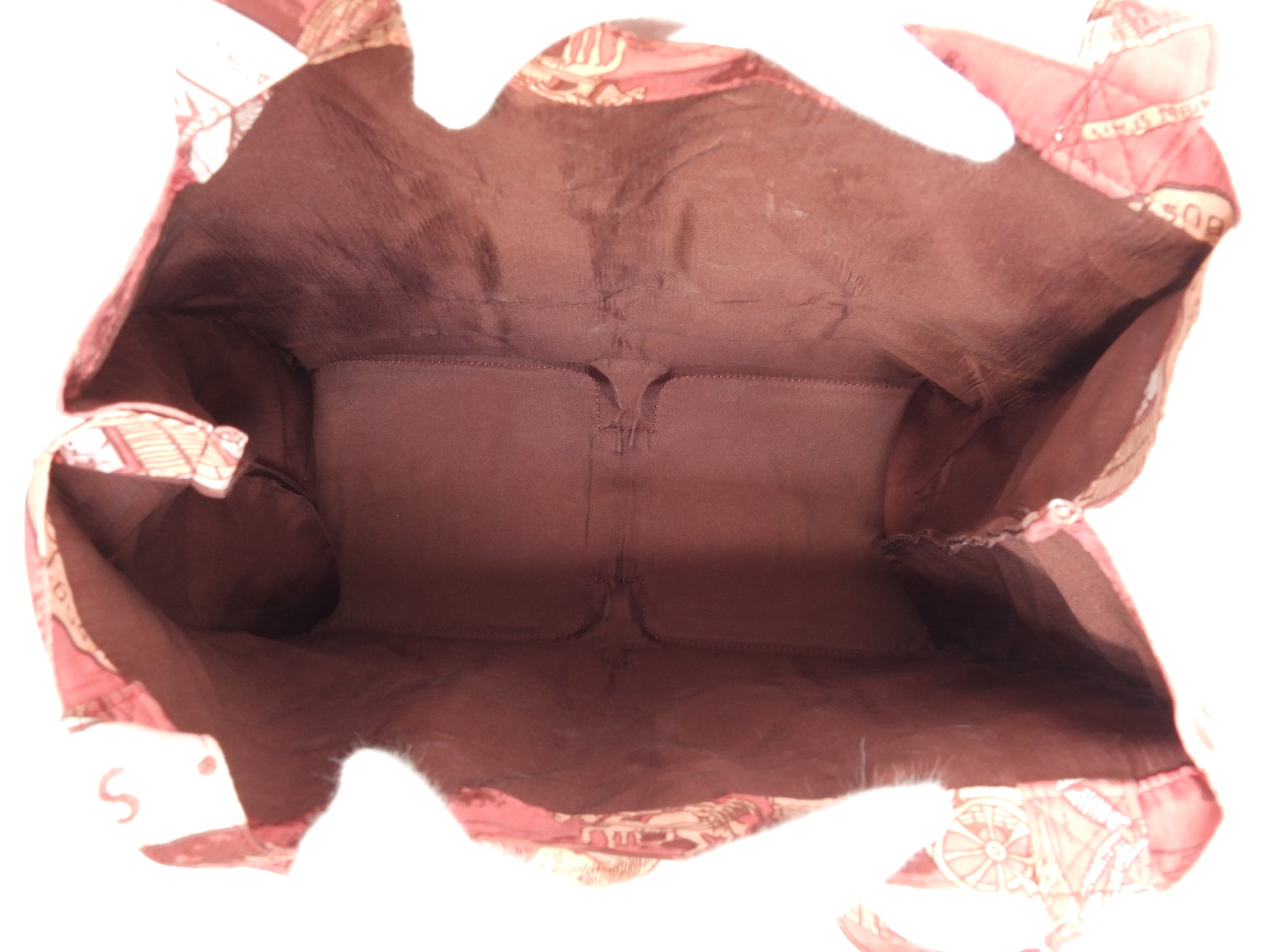 情報 : シルクボディは薄シミ・薄汚れが少しございますが、目立つダメージはございません。ハンドルは使用による薄汚れが全体的にございますが、弱りはございません。バッグ内は薄汚れが少しございますが、目立つダメージはございません。外面レザー部分はスレ・汚れもなく状態は良いです。ファスナーの開閉はかためで、引き手革にダメージはございません。