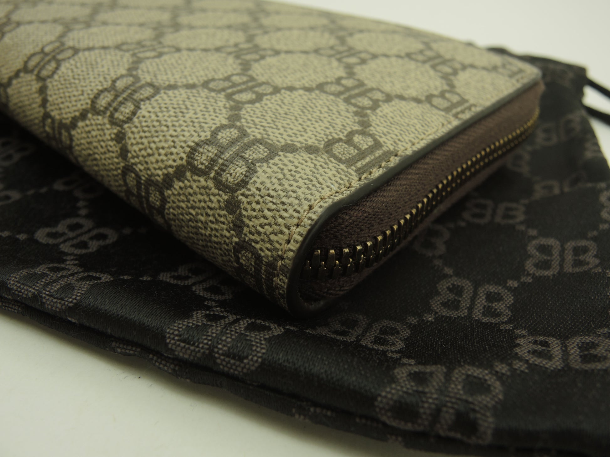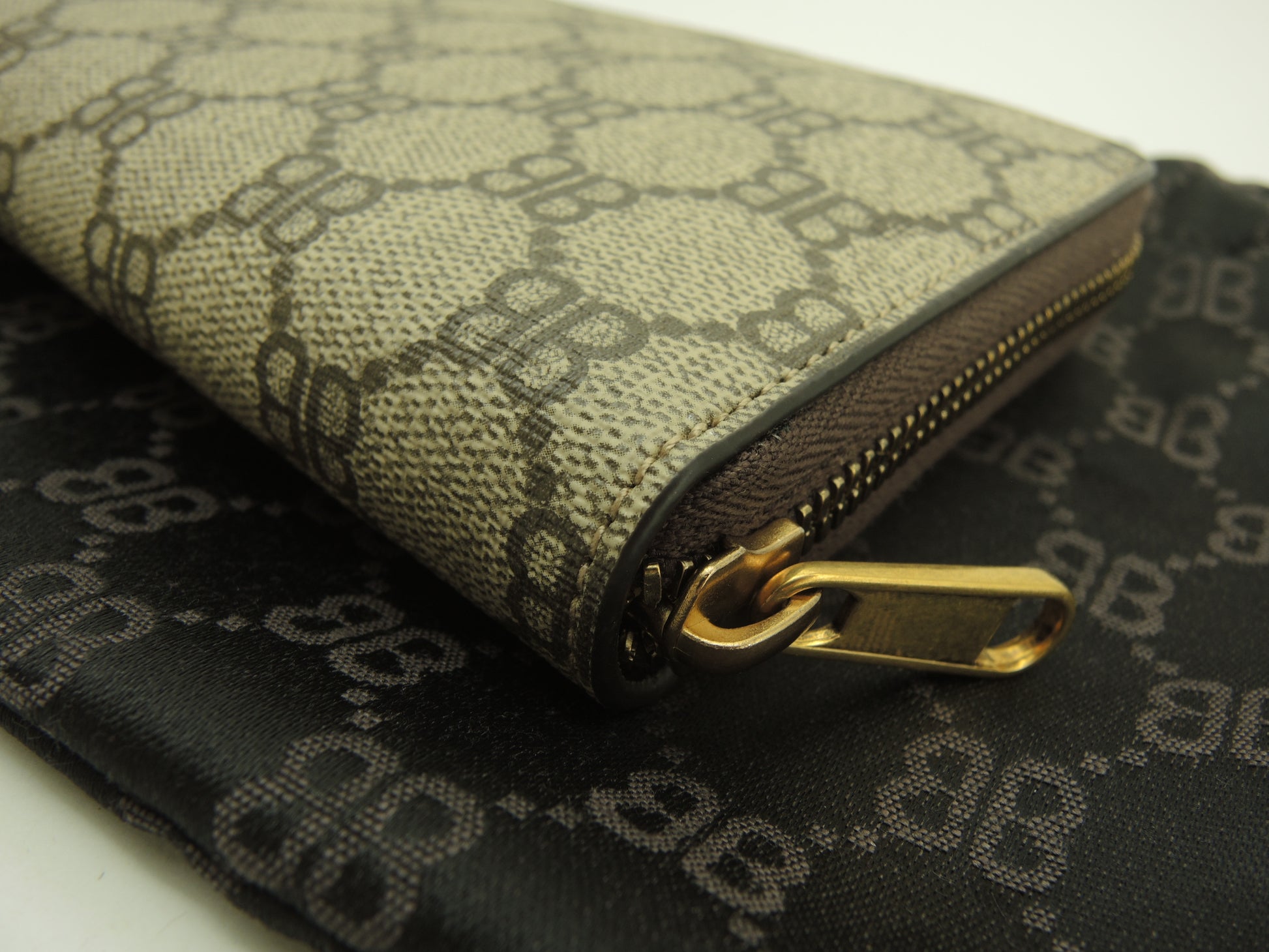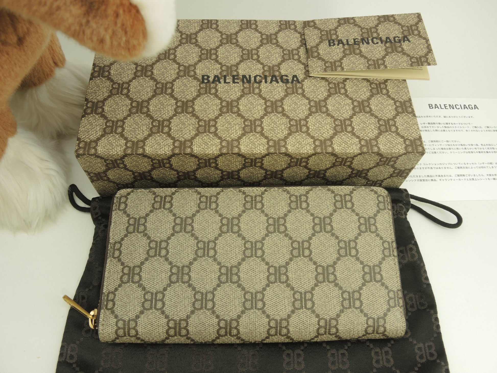 グッチxバレンシアガ ロングウォレット BB柄 PVC灰 ジップ長財布 新品@ 1