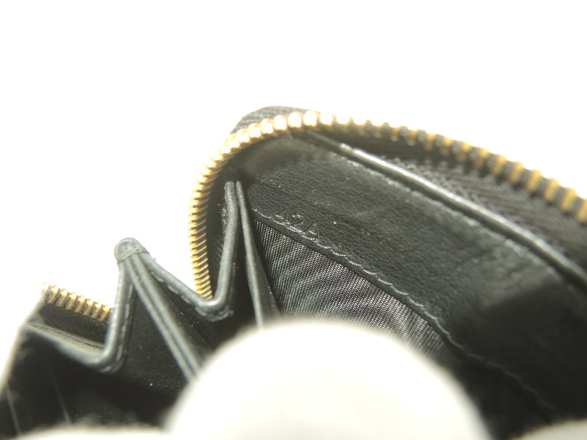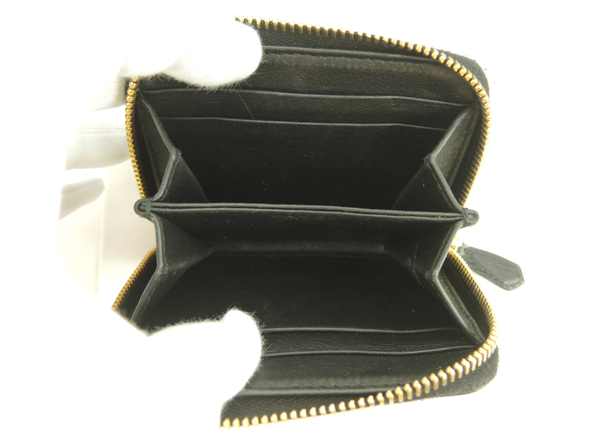 情報 : ボディは薄汚れが全体的にちょこちょこございますが、酷いダメージはなく綺麗なほうです。角・湾曲部にスレはほとんどございません。コインケース内は銭汚れ・コイン痕が少しございます。ファスナーの開閉はスムースです。ファスナーの引手革にスレ・汚れ・弱りはございません。金具部分は使用でできる薄スレが全体的にあり、メッキ剥げも少しございます。