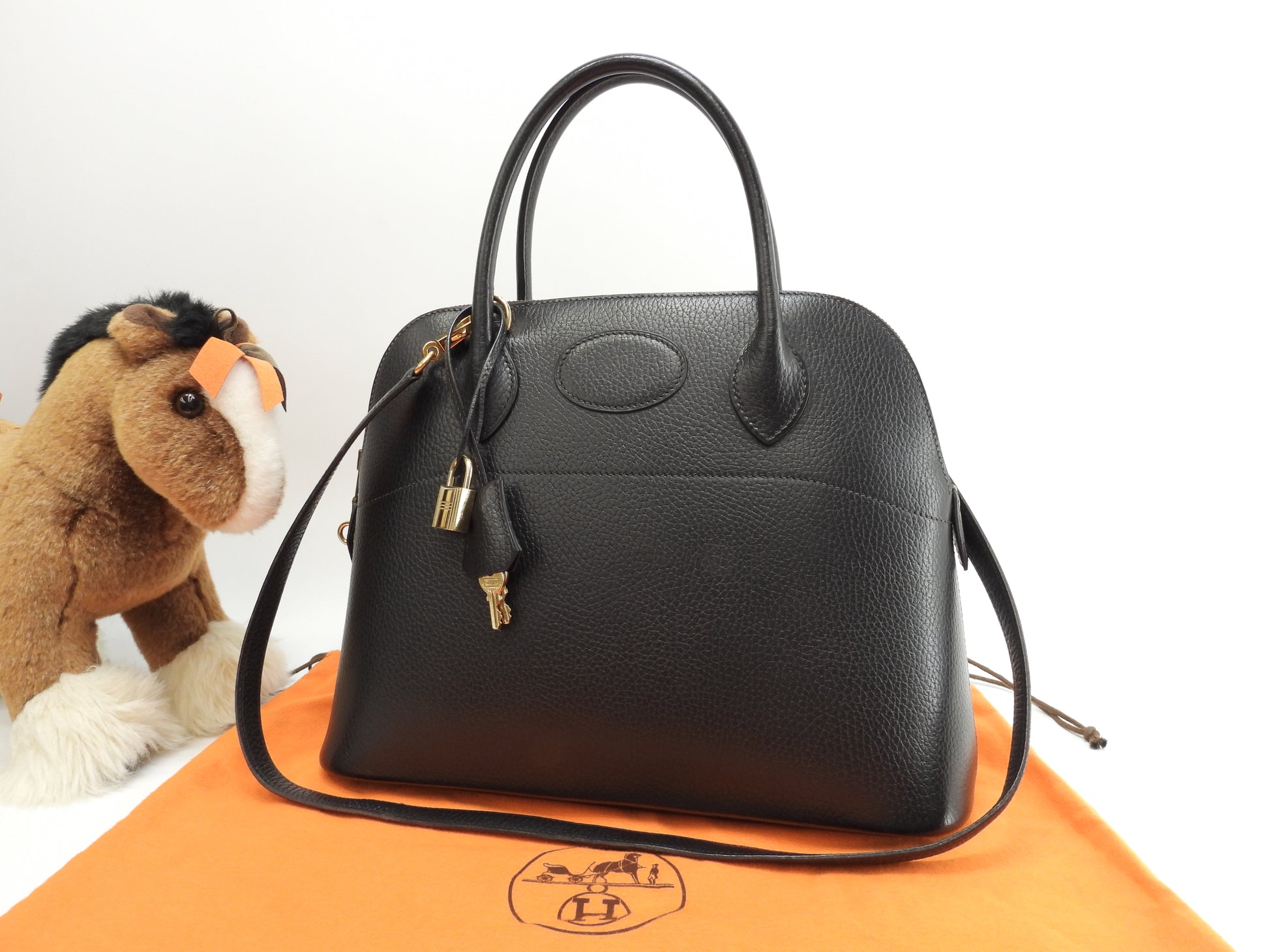 エルメス ボリード31 アルデンヌ黒 ゴールド金具 s付ハンドバッグ@〇Z
