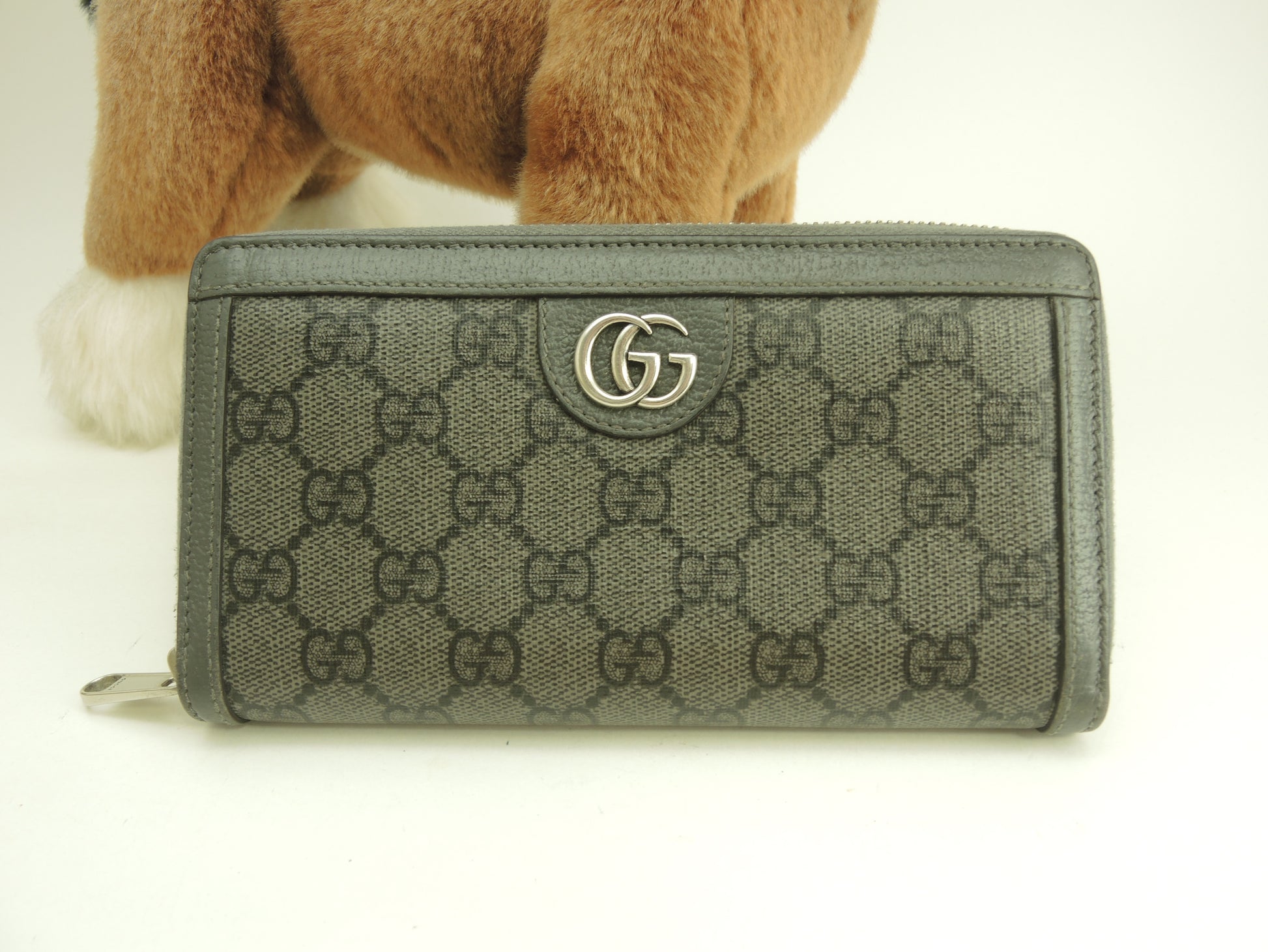 グッチ ジップアラウンドロングウォレット GGオールド PVPレザー灰 長財布@706844-525040