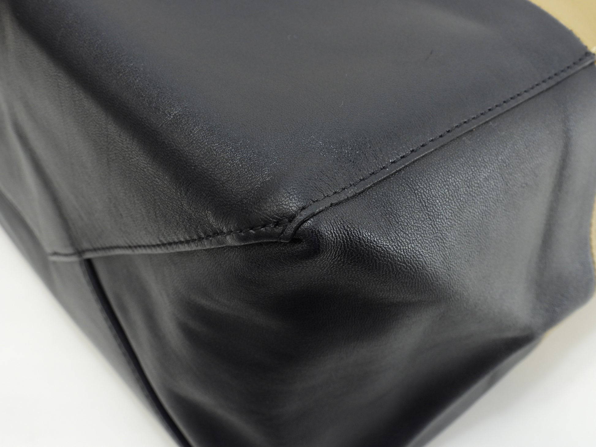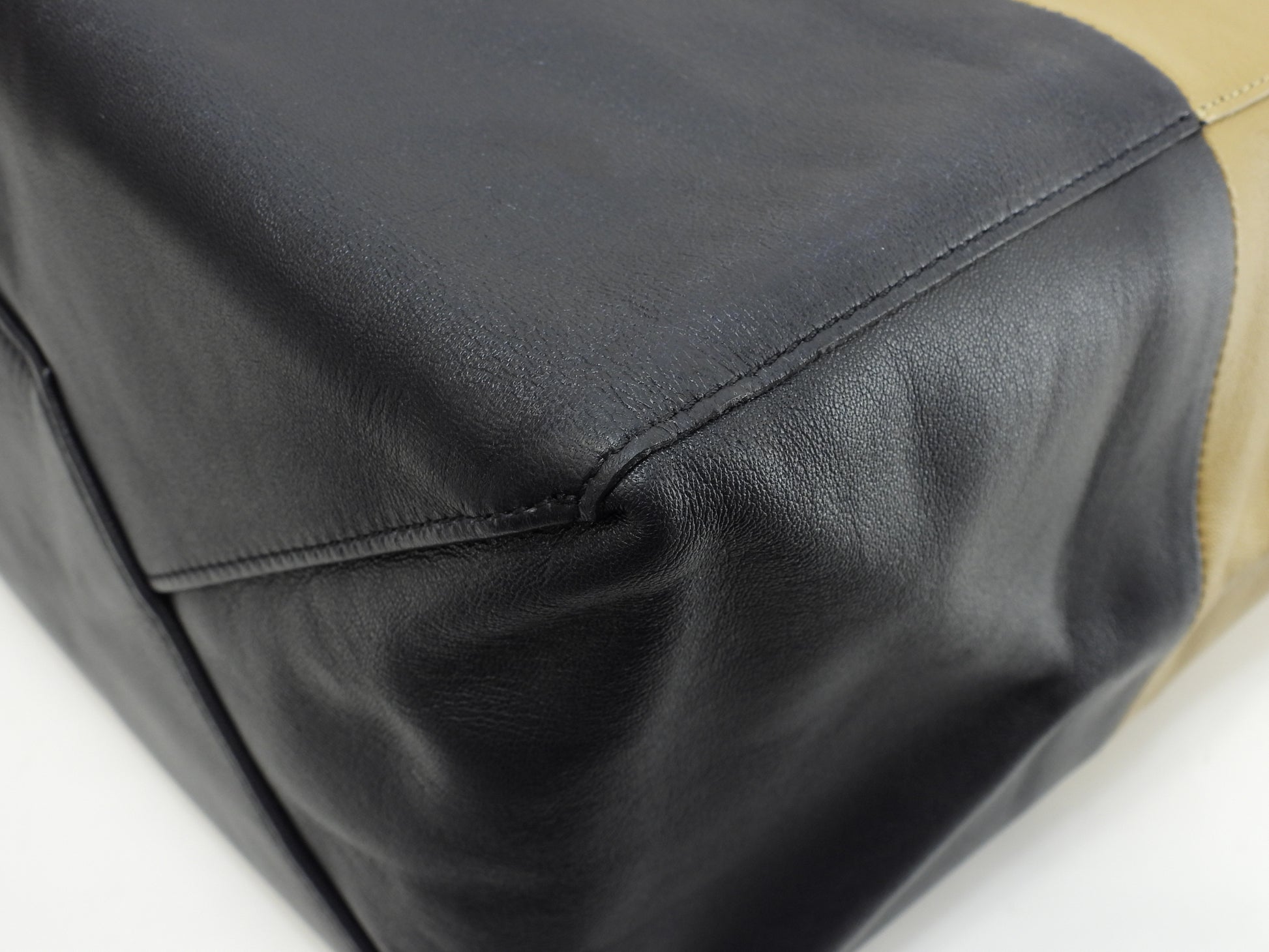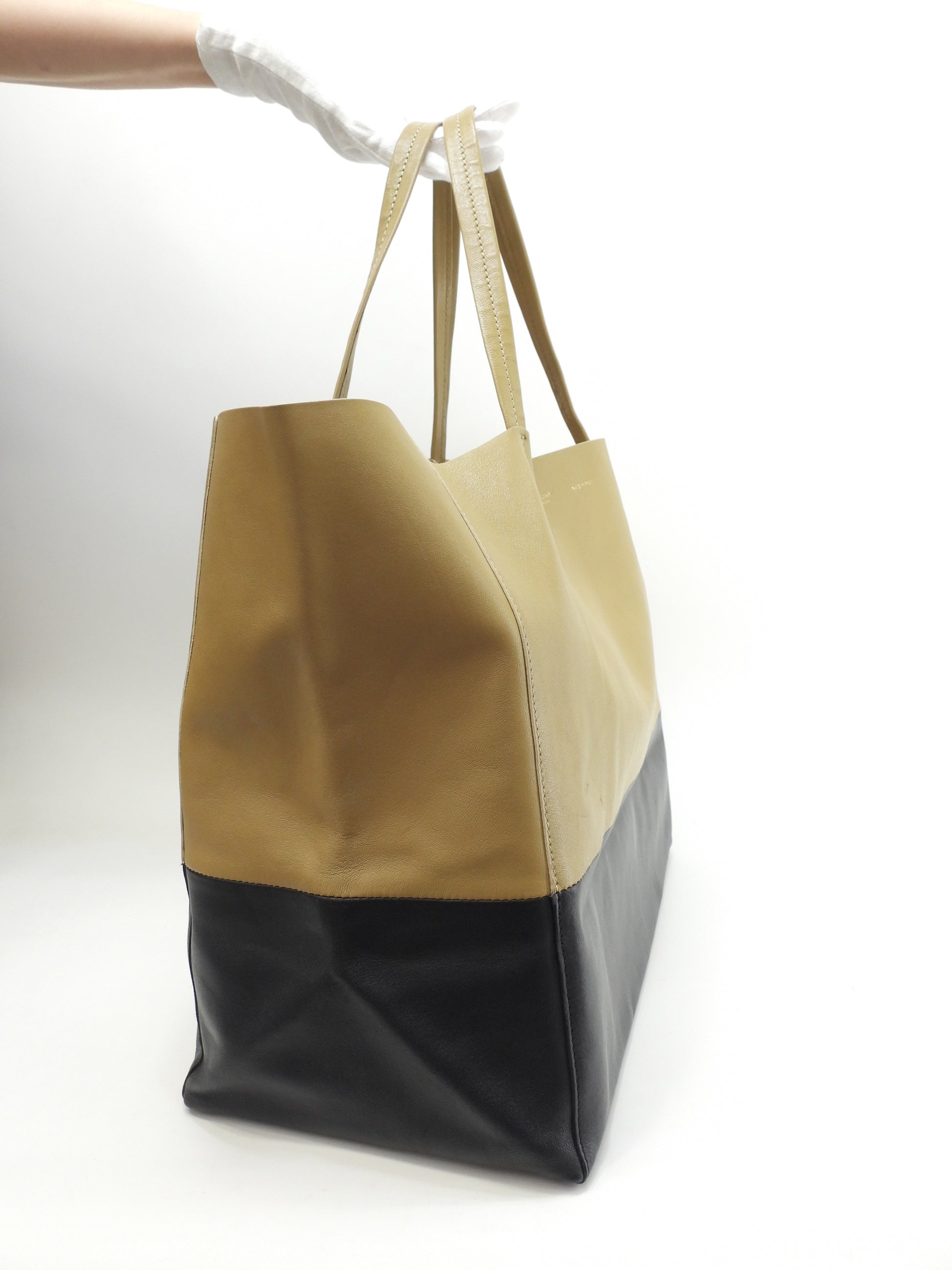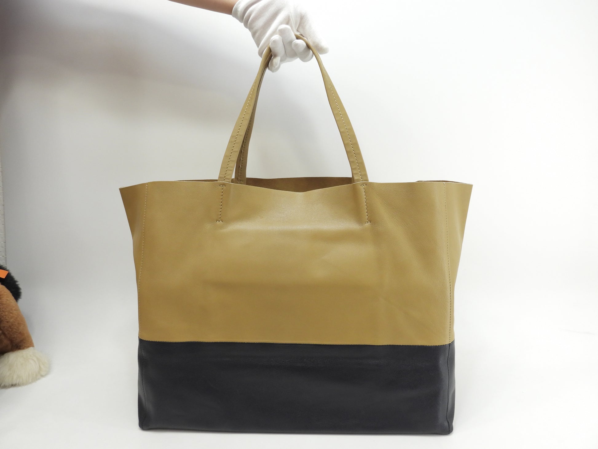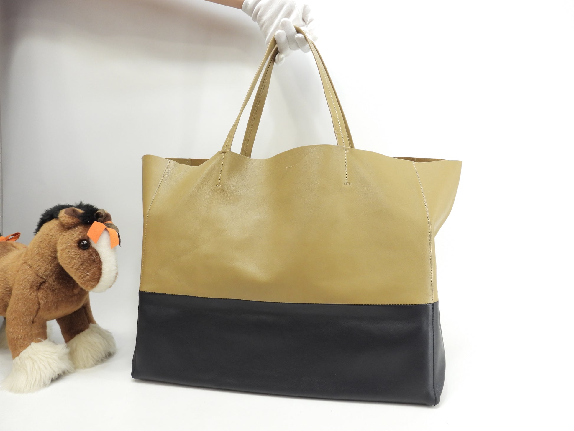 セリーヌ カバホリゾンタル レザー ベージュ黒 ショルダーバッグ トートバッグ@W-MM-0162