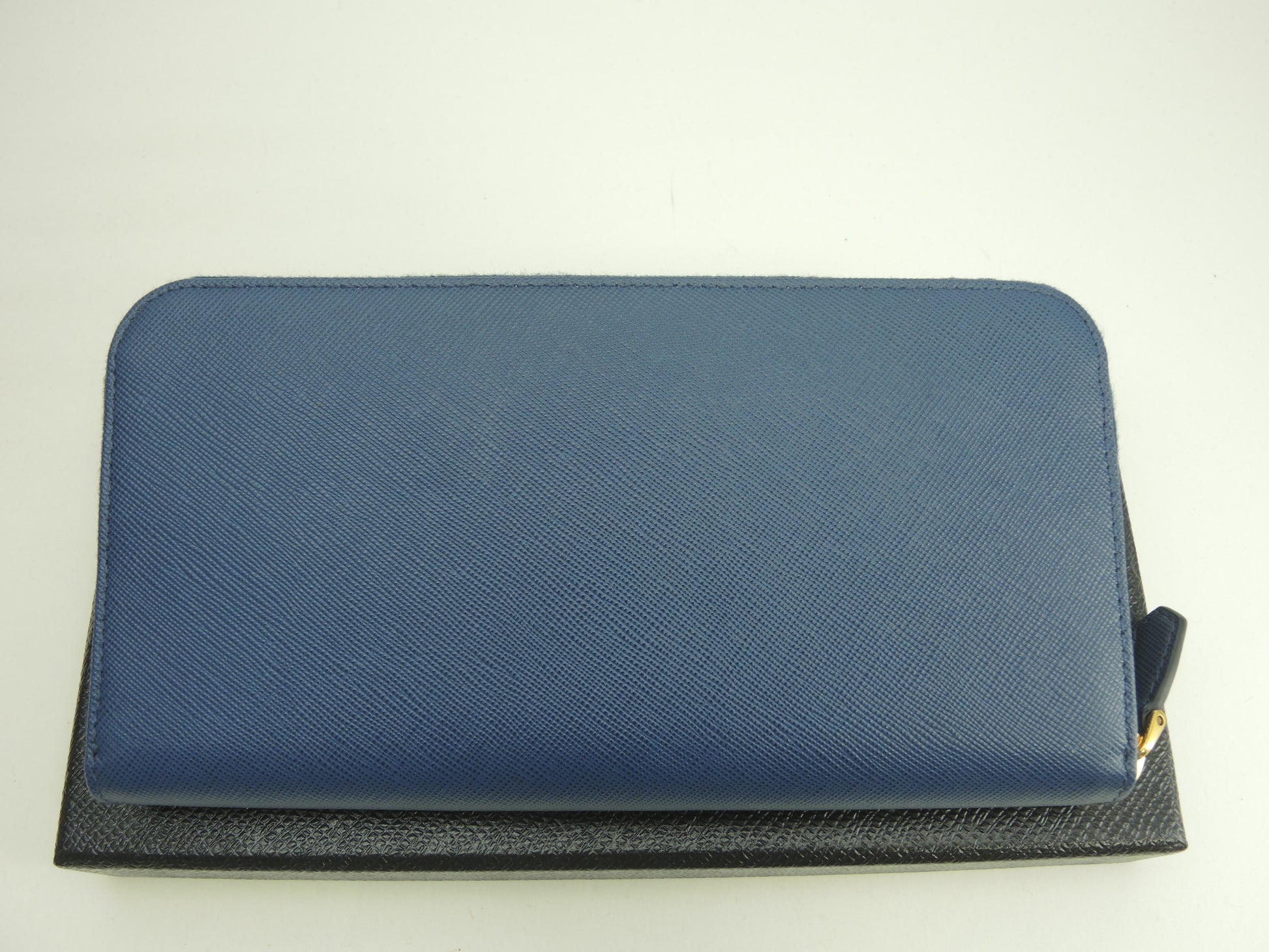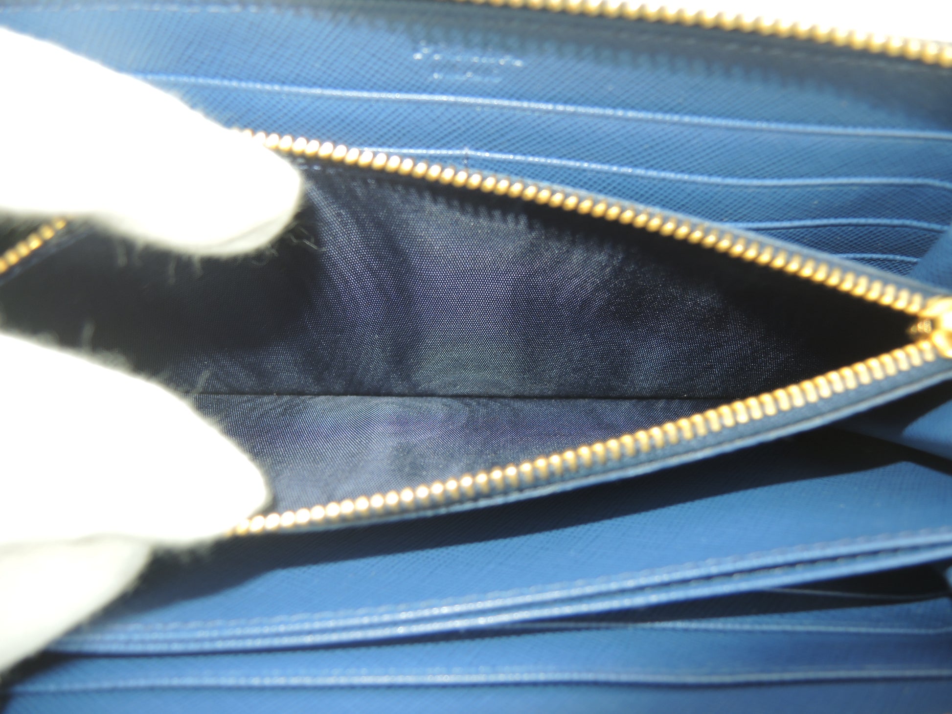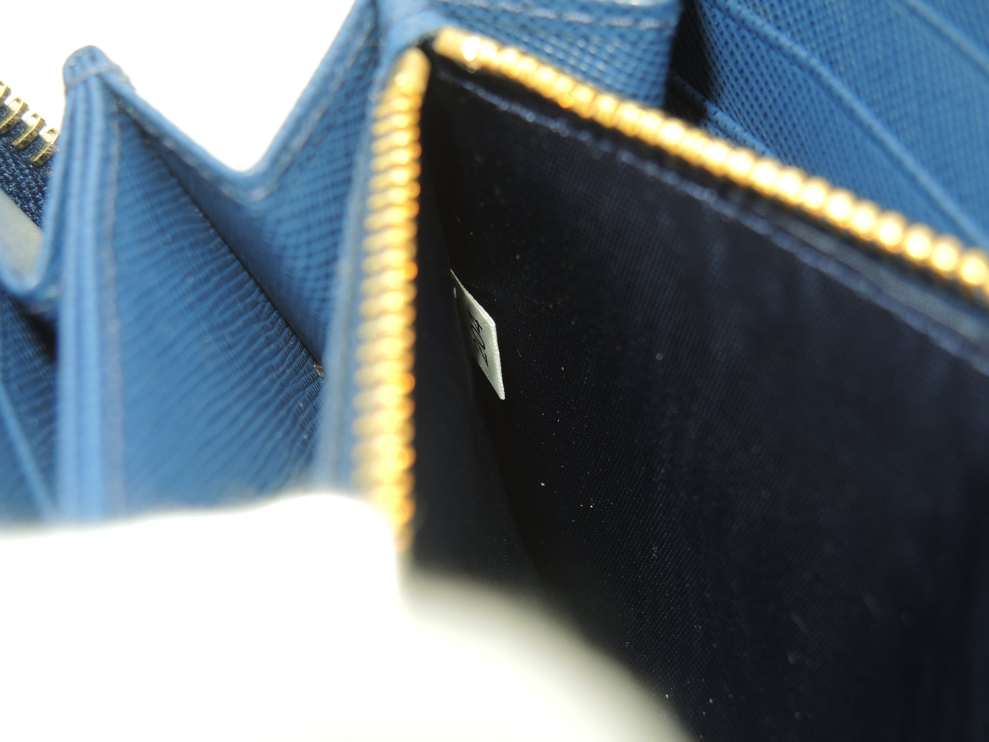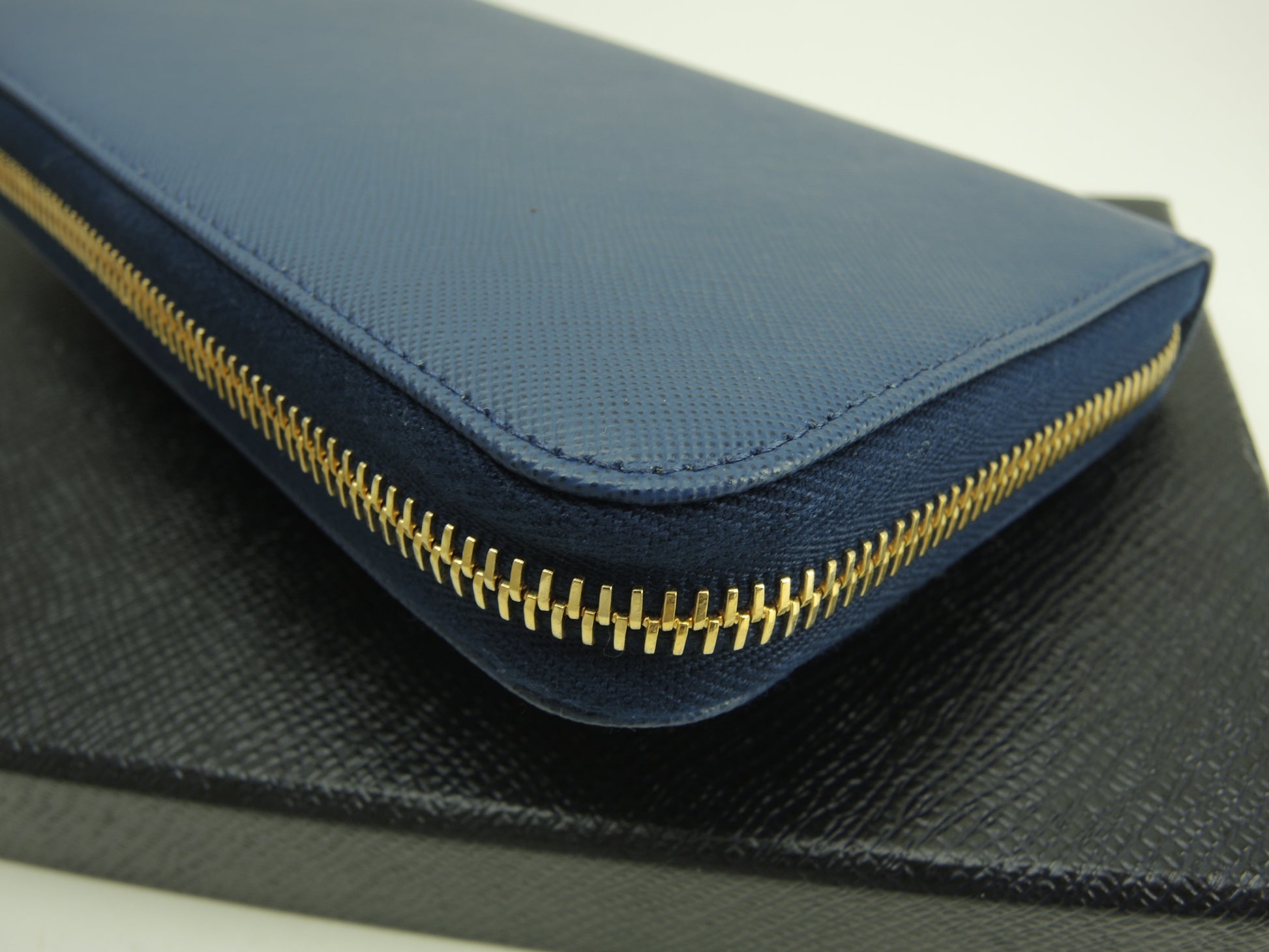 #Prada #LongWallet #Saffiano #Leather #Blue #Bluette #95%new #authentic #ribbon #RaundZip #ZipAround #Wallet #1ML506 #Gold #secondhand #wholeSale #haibanya #aisai-jp #転売可