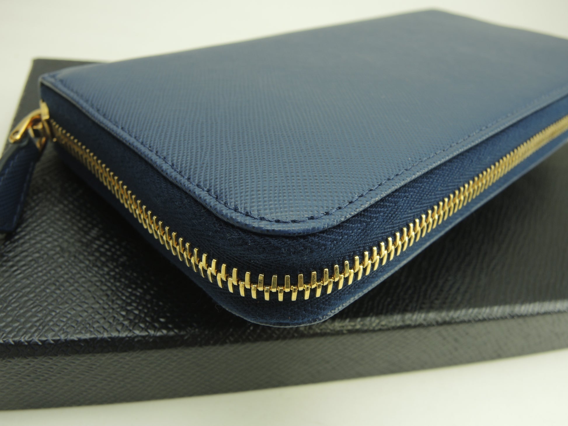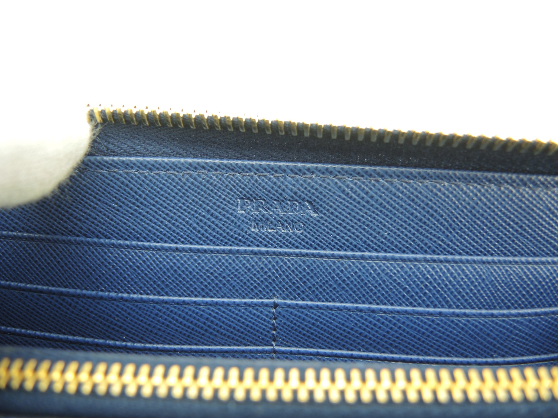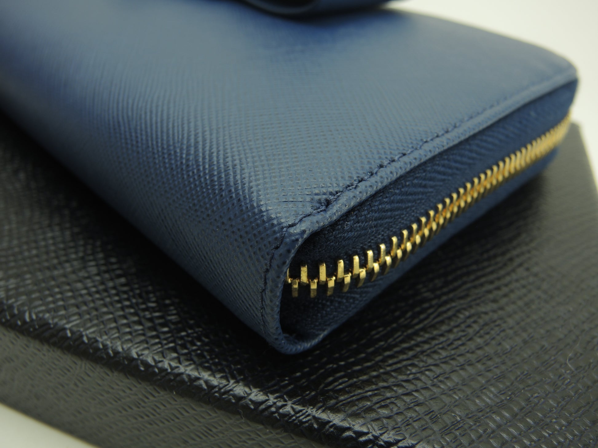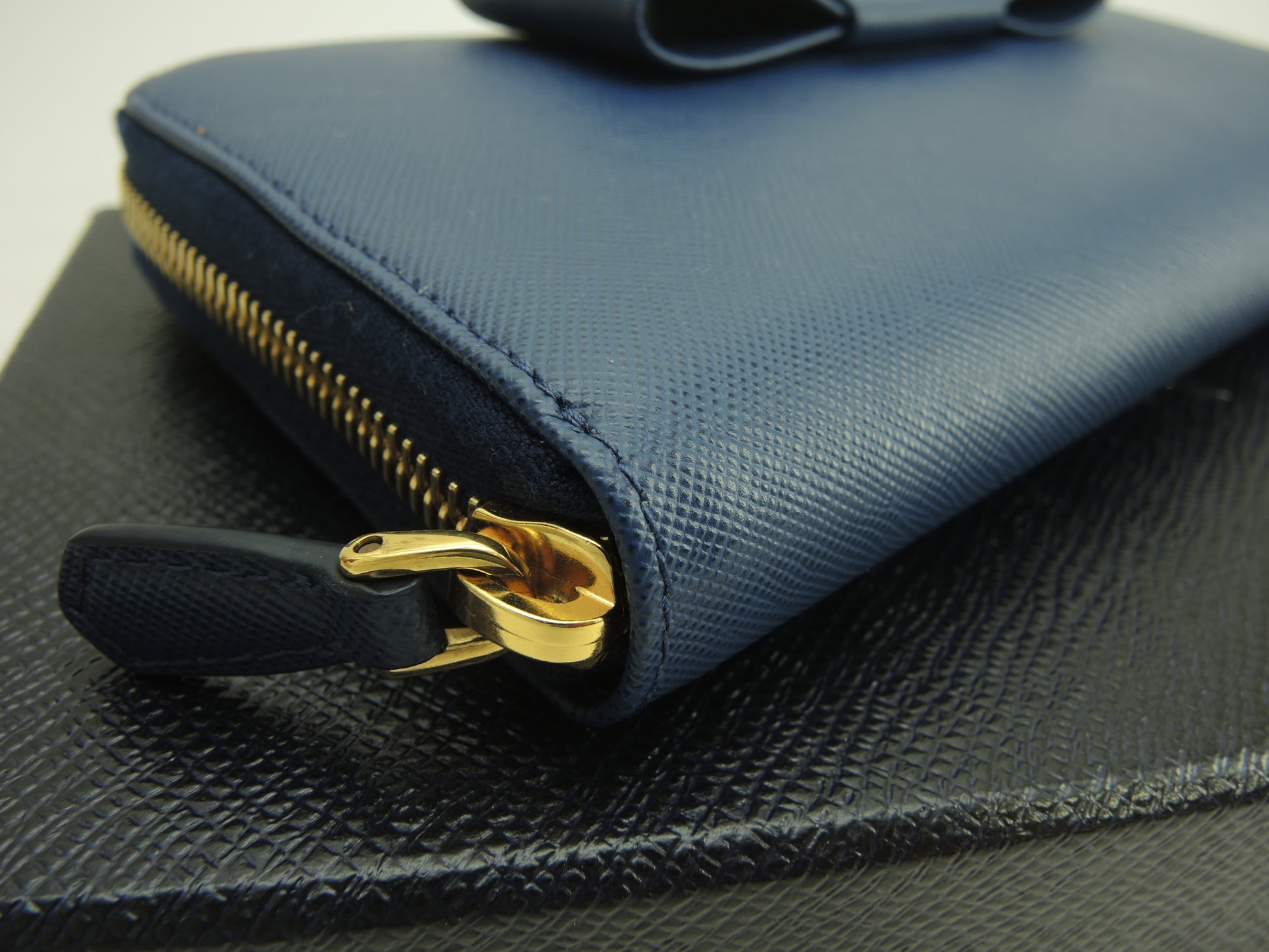 #Prada #LongWallet #Saffiano #Leather #Blue #Bluette #95%new #authentic #ribbon #RaundZip #ZipAround #Wallet #1ML506 #Gold #secondhand #wholeSale #haibanya #aisai-jp #転売可