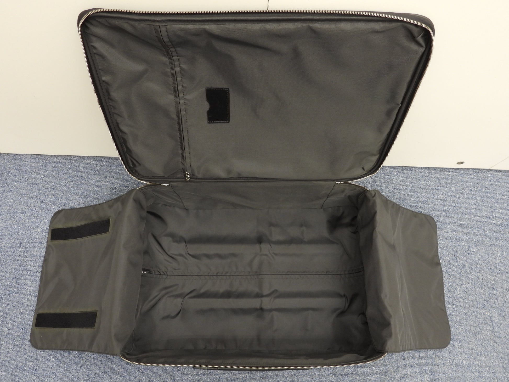 情報 : ボディは線スレ・薄スレがところどころございますが、酷いダメージはございません。底部角付近に擦れ・削れが少しございます。使用には問題ございませんが、蓋と本体の接合部のゴムに亀裂・剥がれが全体的にございます。グリップは薄スレ・薄汚れ・小傷が少しございますが、弱りはございません。収納可能なキャリーグリップは薄スレ・汚れが全体的に少しございますが、弱りもなく状態は良いです。ローラーは使用による薄スレ・薄汚れがございますが、亀裂・壊れはございません。バッグ内は色褪せが少しございますが、目立つダメージもなく綺麗です。ファスナーの開閉は少しかためです。金具部分は薄スレ・小傷・メッキ剥げが少しございます。