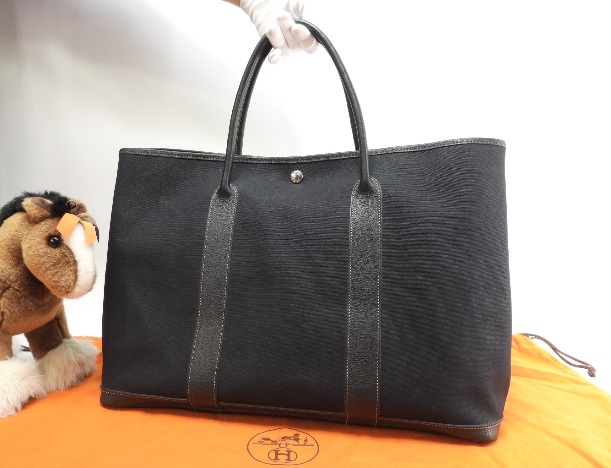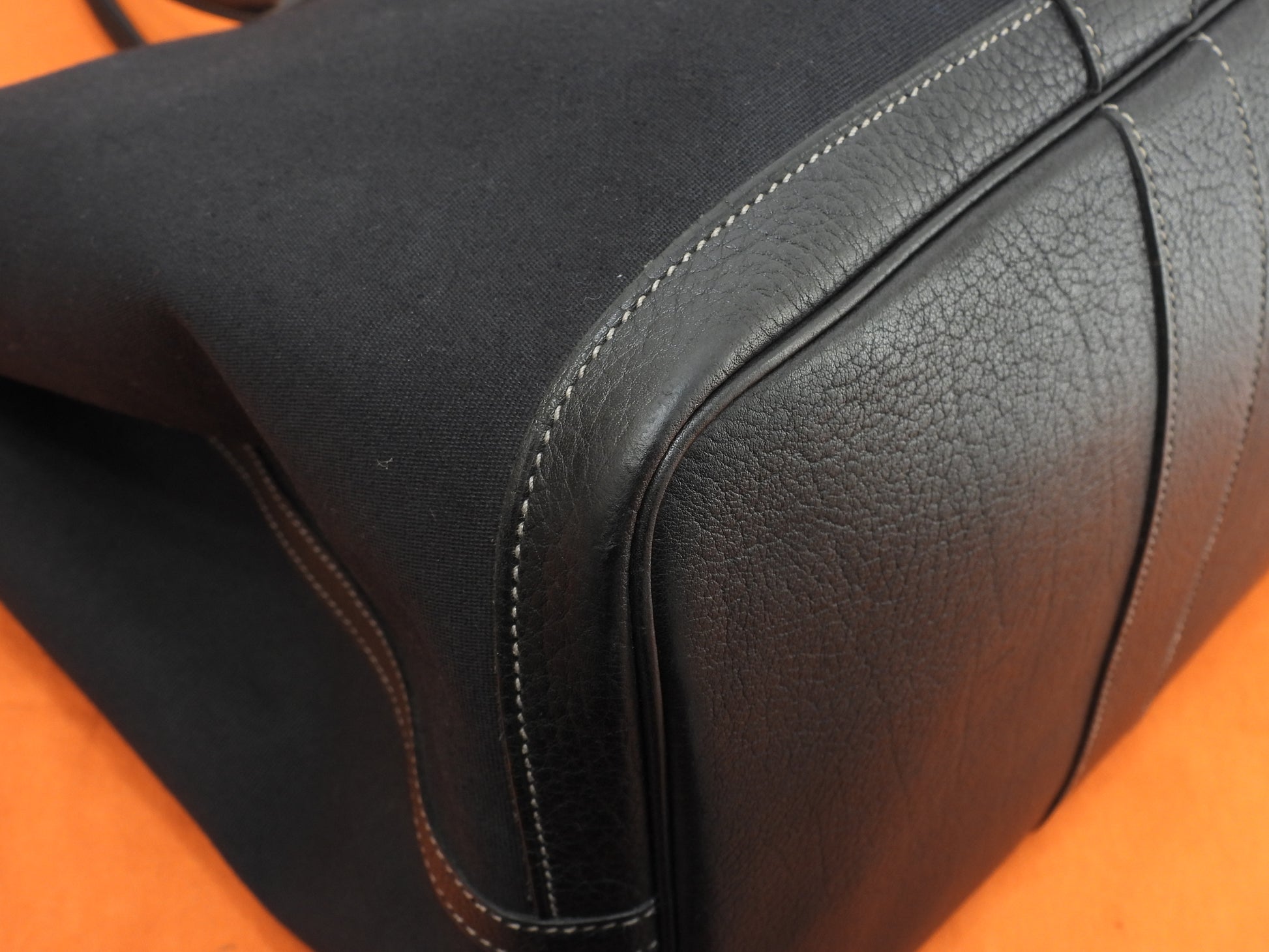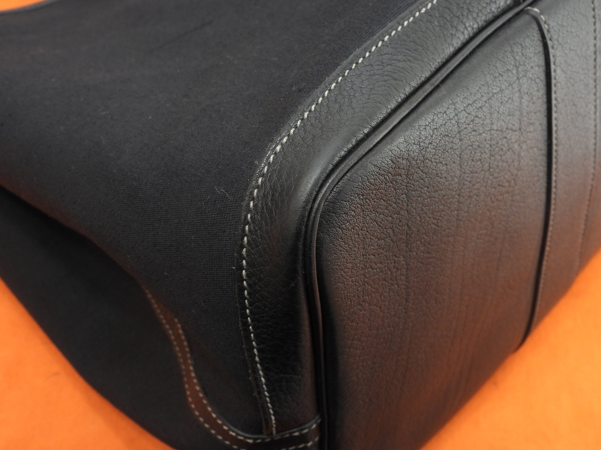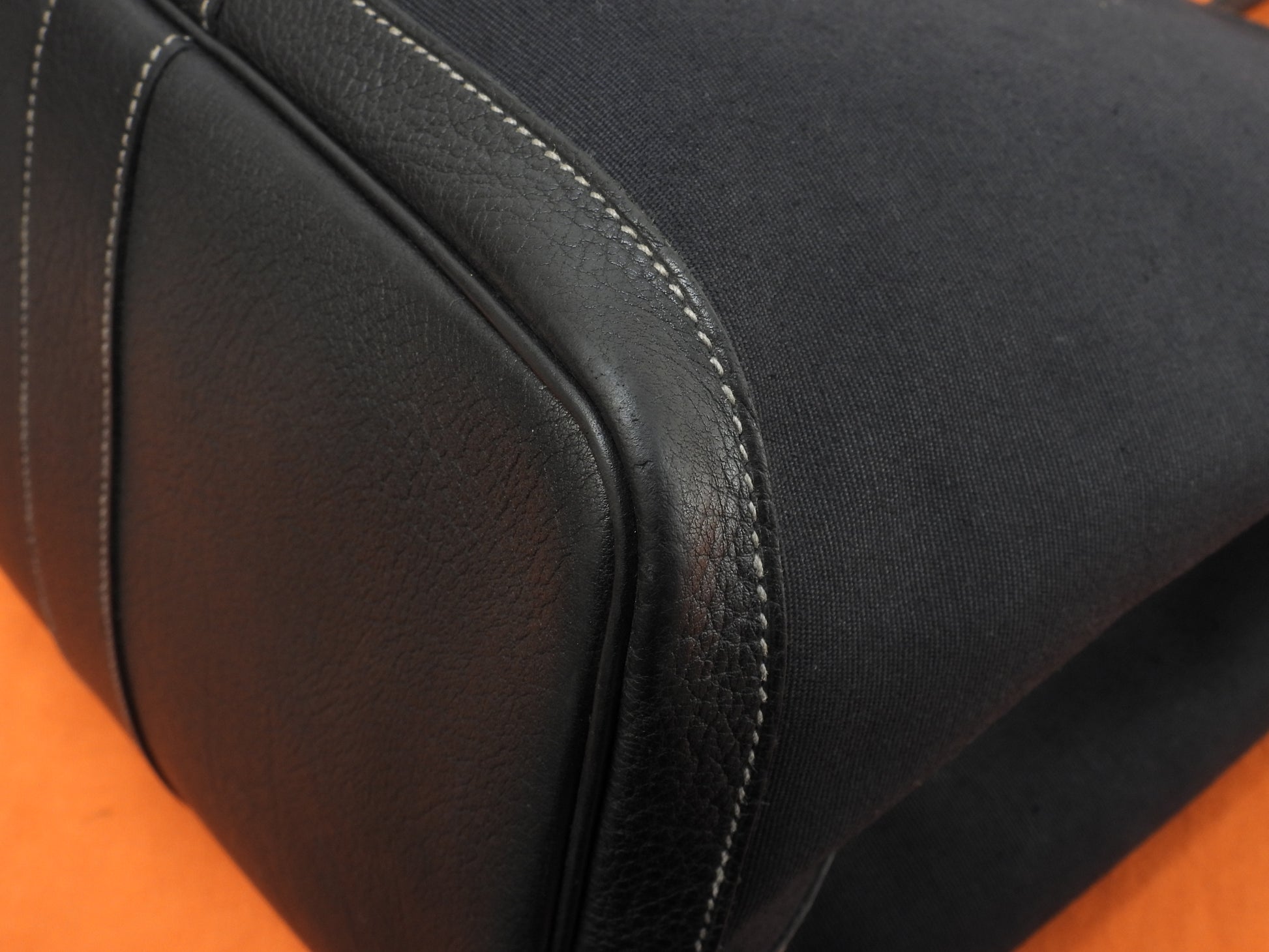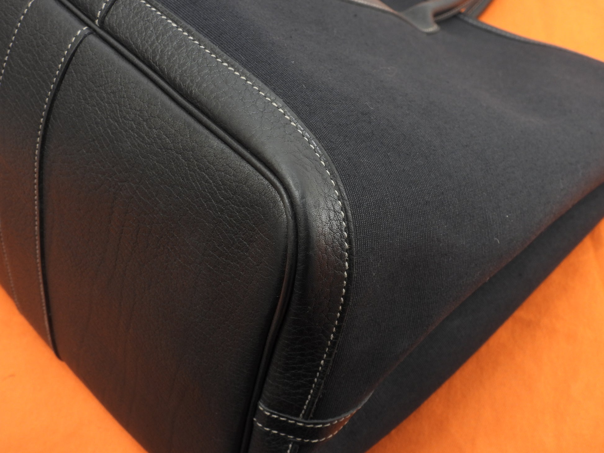 エルメス ガーデンパーティMM コットン/レザー 黒 トートバッグ大 ハンドバッグ大 美品@□H 3