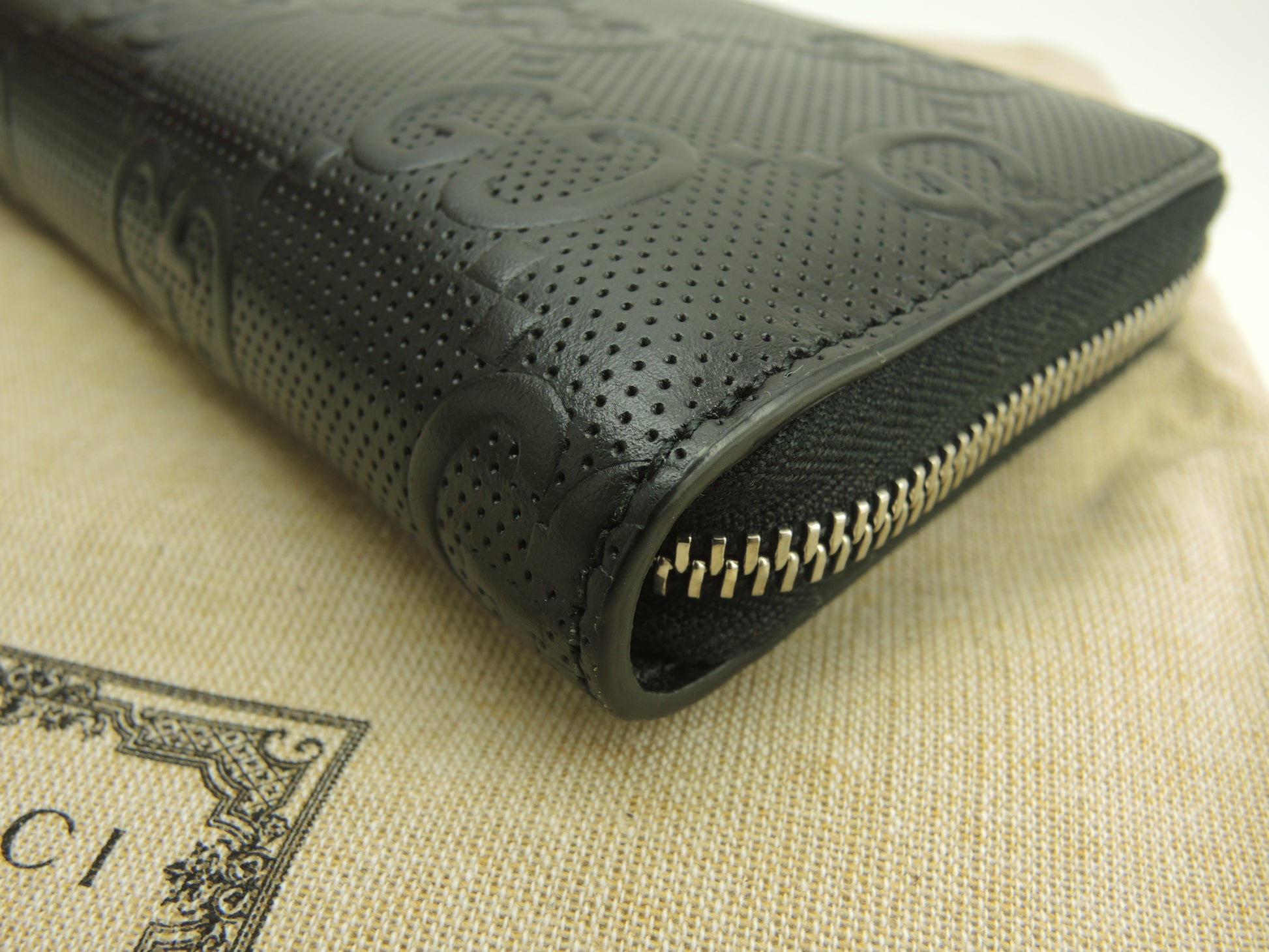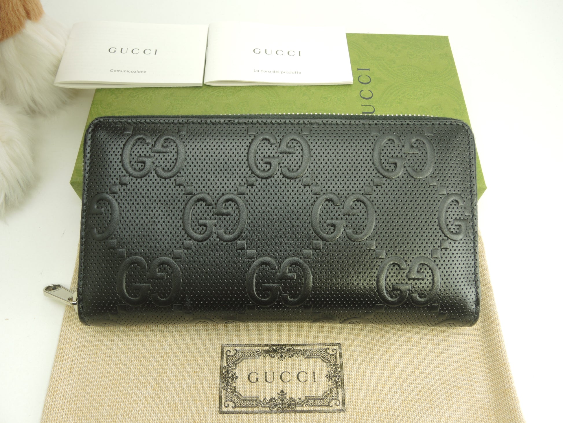 グッチ ロングウォレット ビッグGGエンボス レザー黒 ラウンドジップ長財布 未使用@ 1