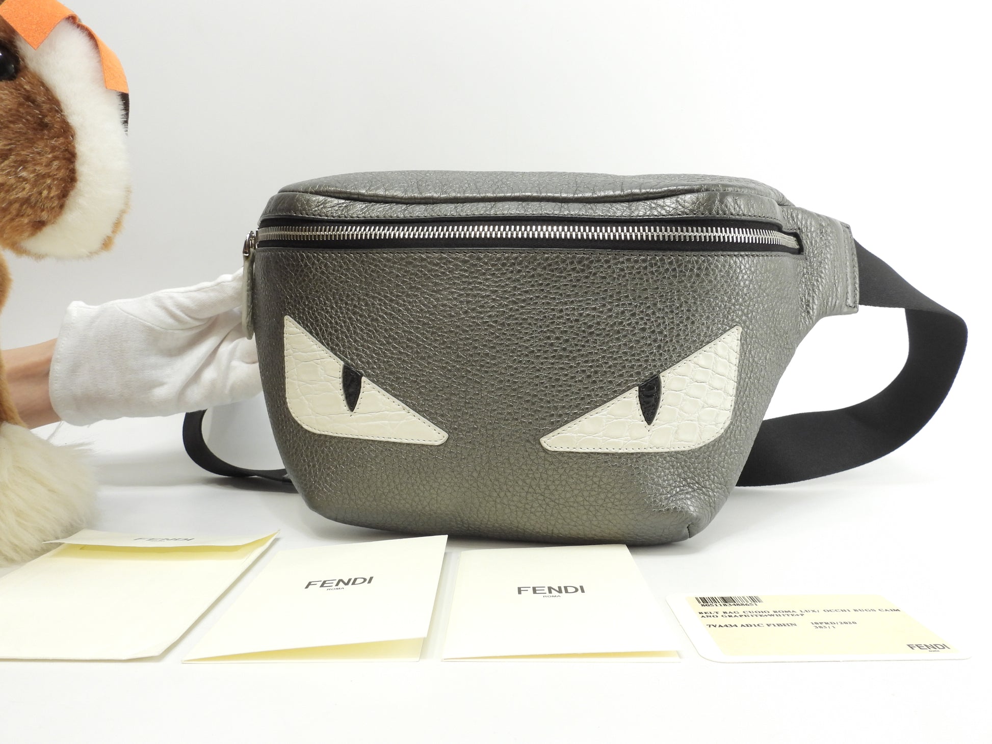 #Fendi #CrossbodyBag #Crossbody #BeltBag #BodyBag #OneShoulder #Selleria #Roman #Crocodile #Leather #TaurillionClemence #Taurillion #Clemence #Graphite #Gray #White #Monster #Bag #Bugs #eyes #80%new #authentic #7VA434 #Silver #secondhand #wholeSale #haibanya #aisai-jp #転売可