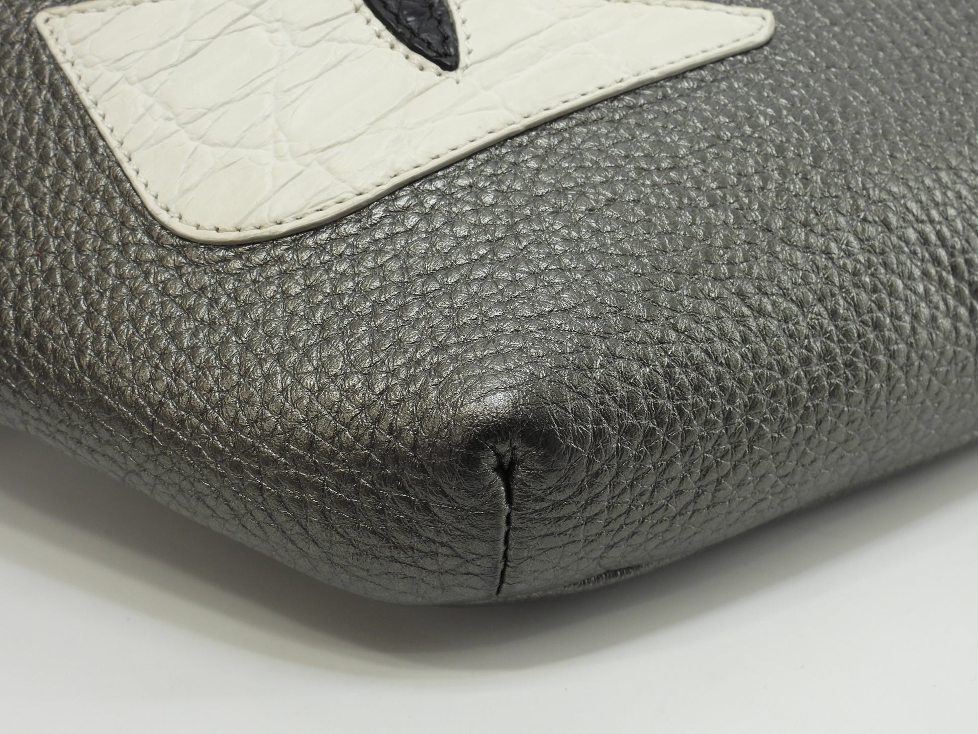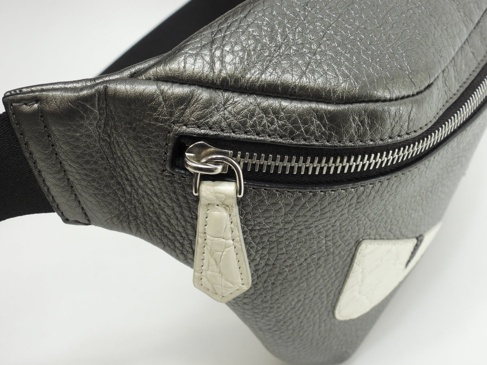 フェンディ ボディバッグ モンスター セレリアレザー灰/クロコ白 ベルトバッグ バムバッグ@ 67