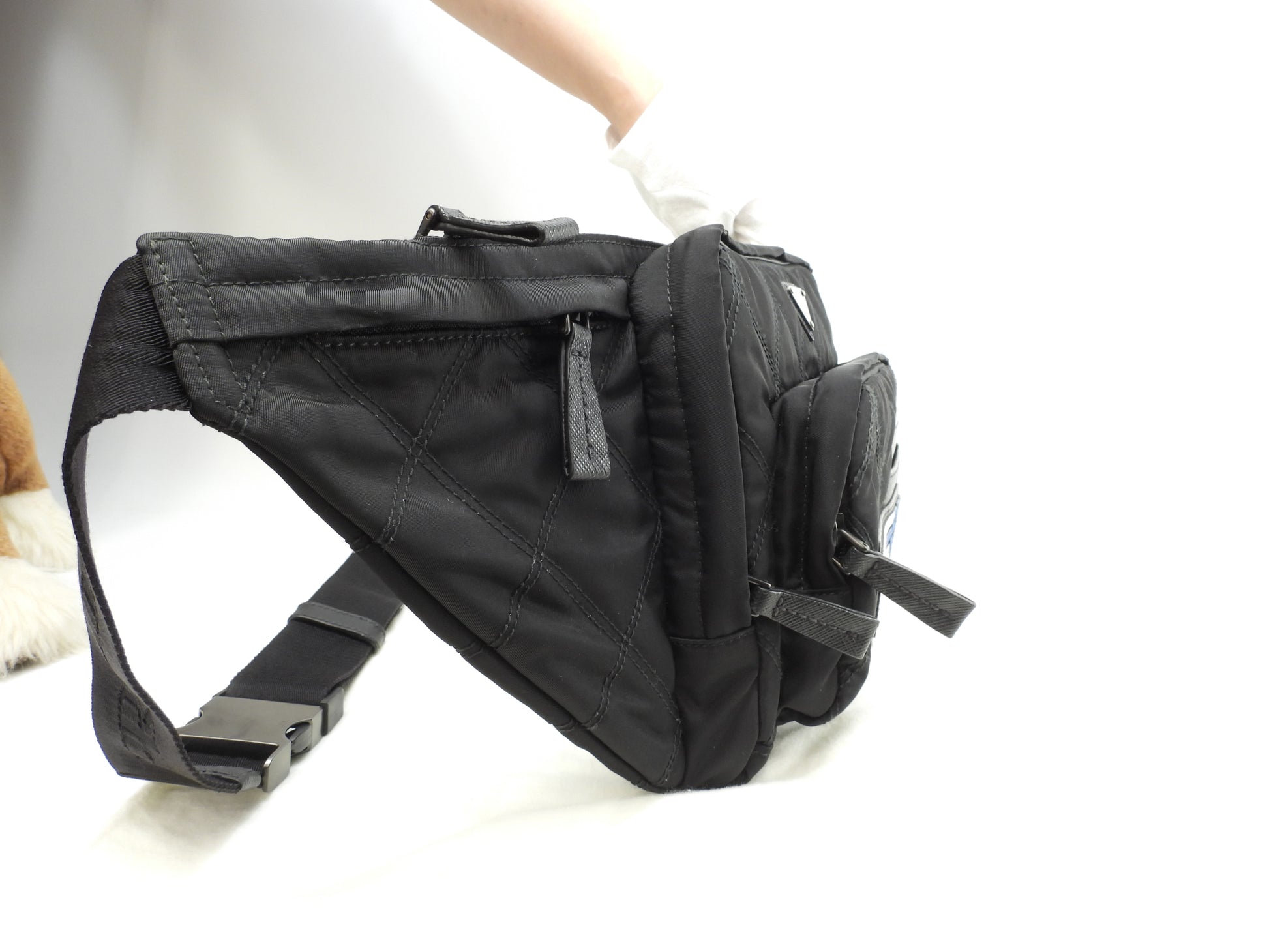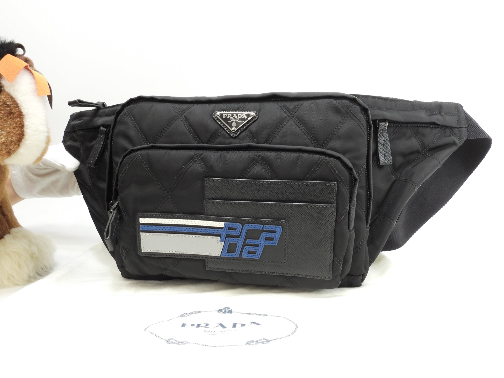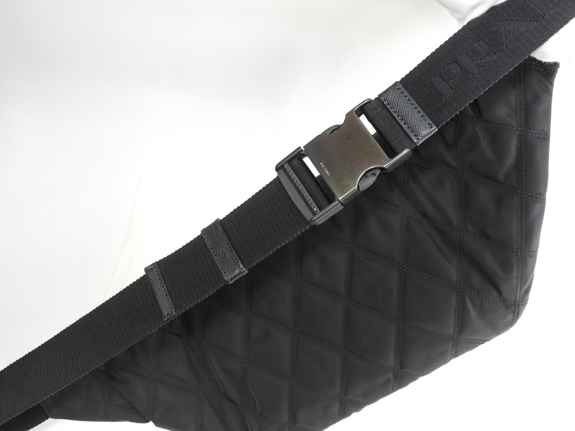 プラダ ボディバッグ大 ナイロンキルテッド 黒 バムバッグ 極美品@173