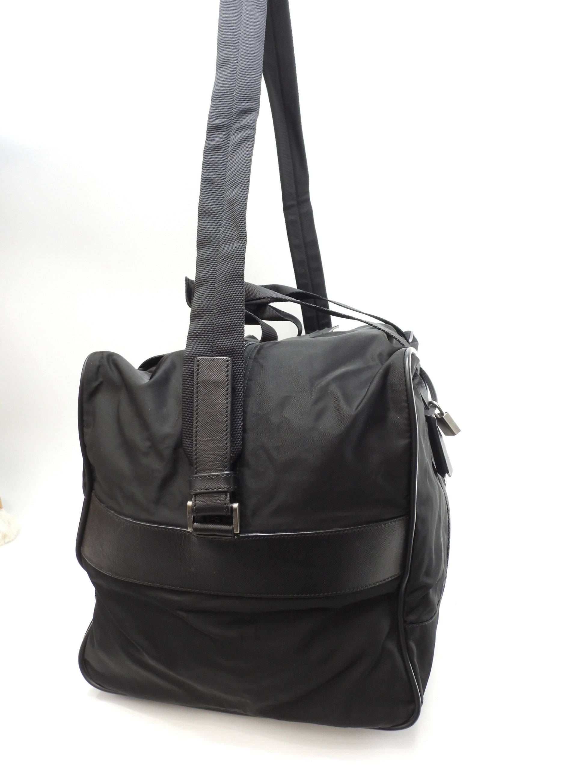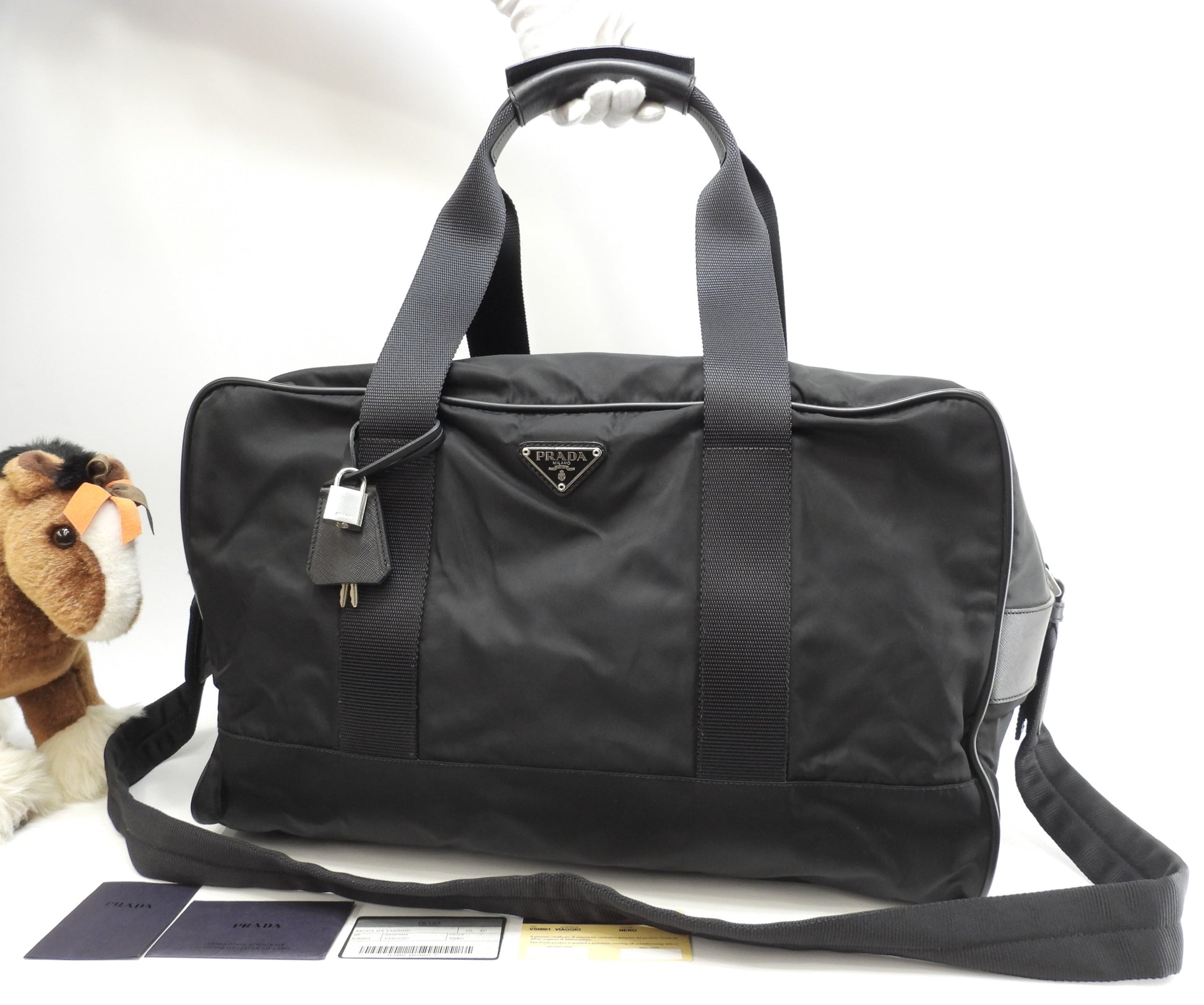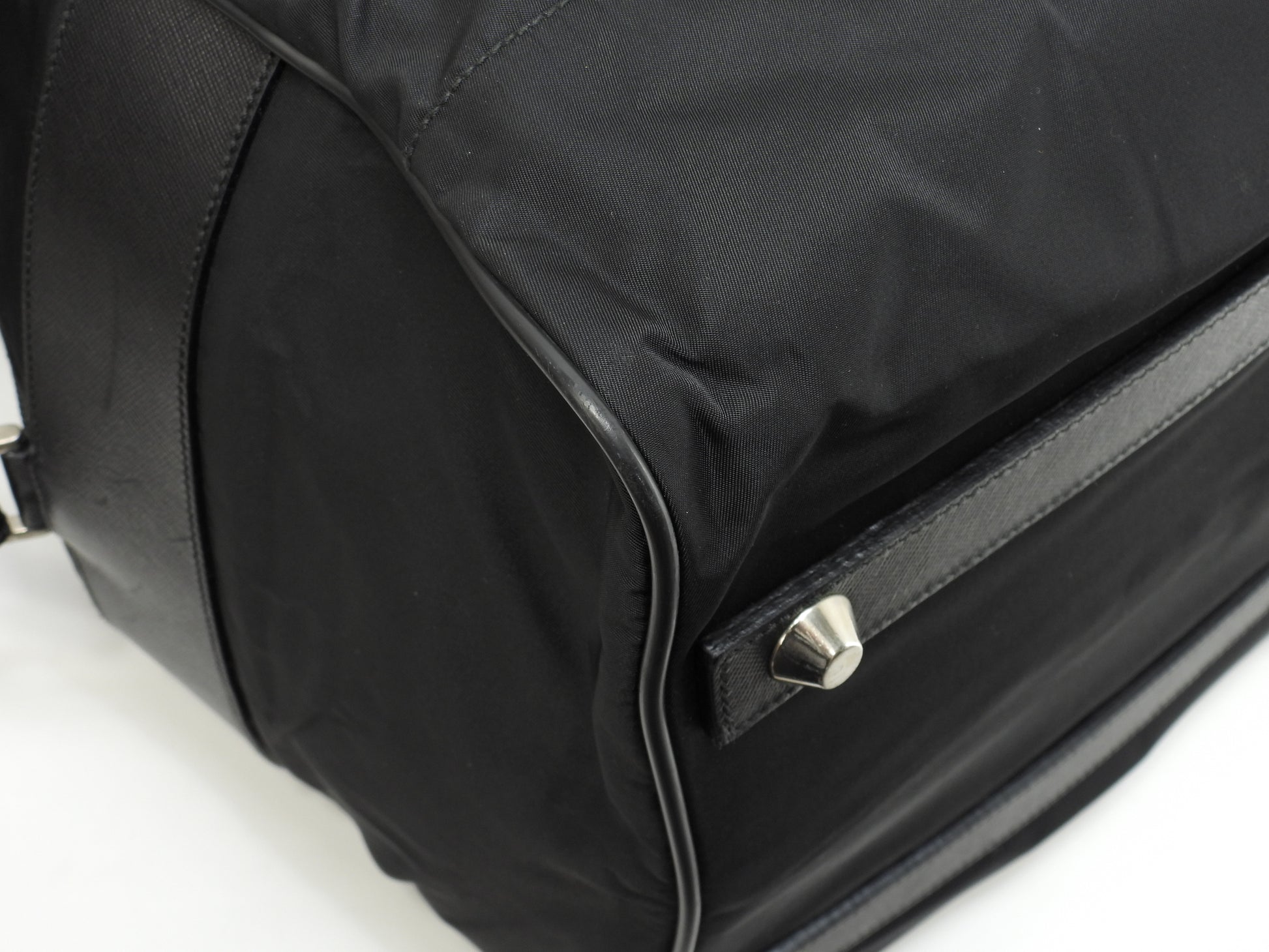 プラダ s付ボストンバッグ大 三角プレート ナイロン革黒 トラベル 旅行用ハンドバッグ@7