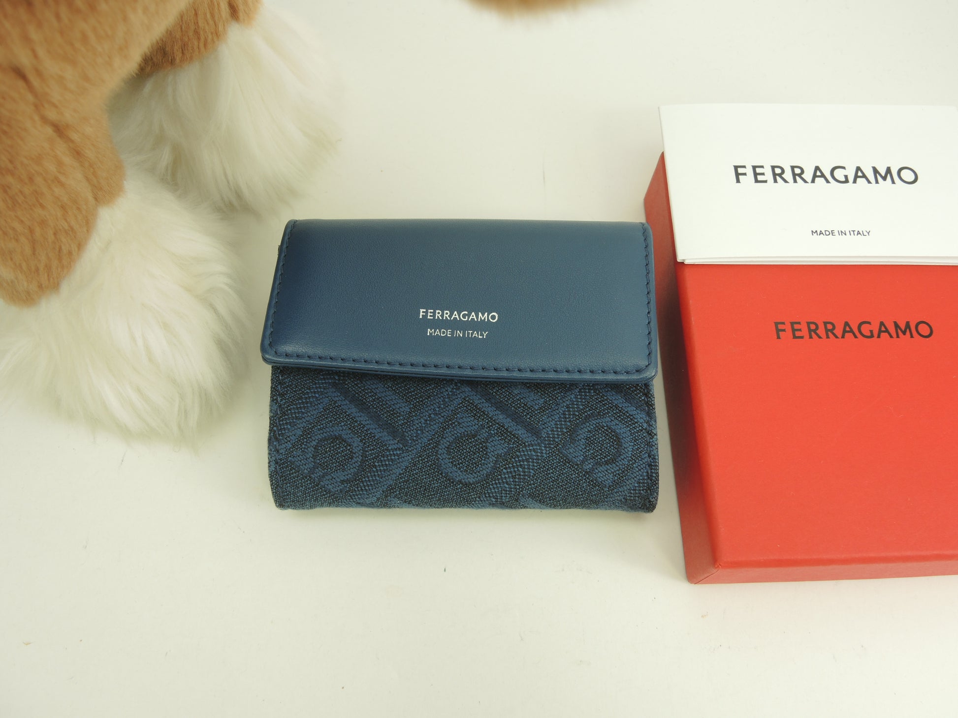 サルヴァトーレフェラガモ ミニウォレット ガンチーニ コットン/レザー青 財布 未使用@JL-220877