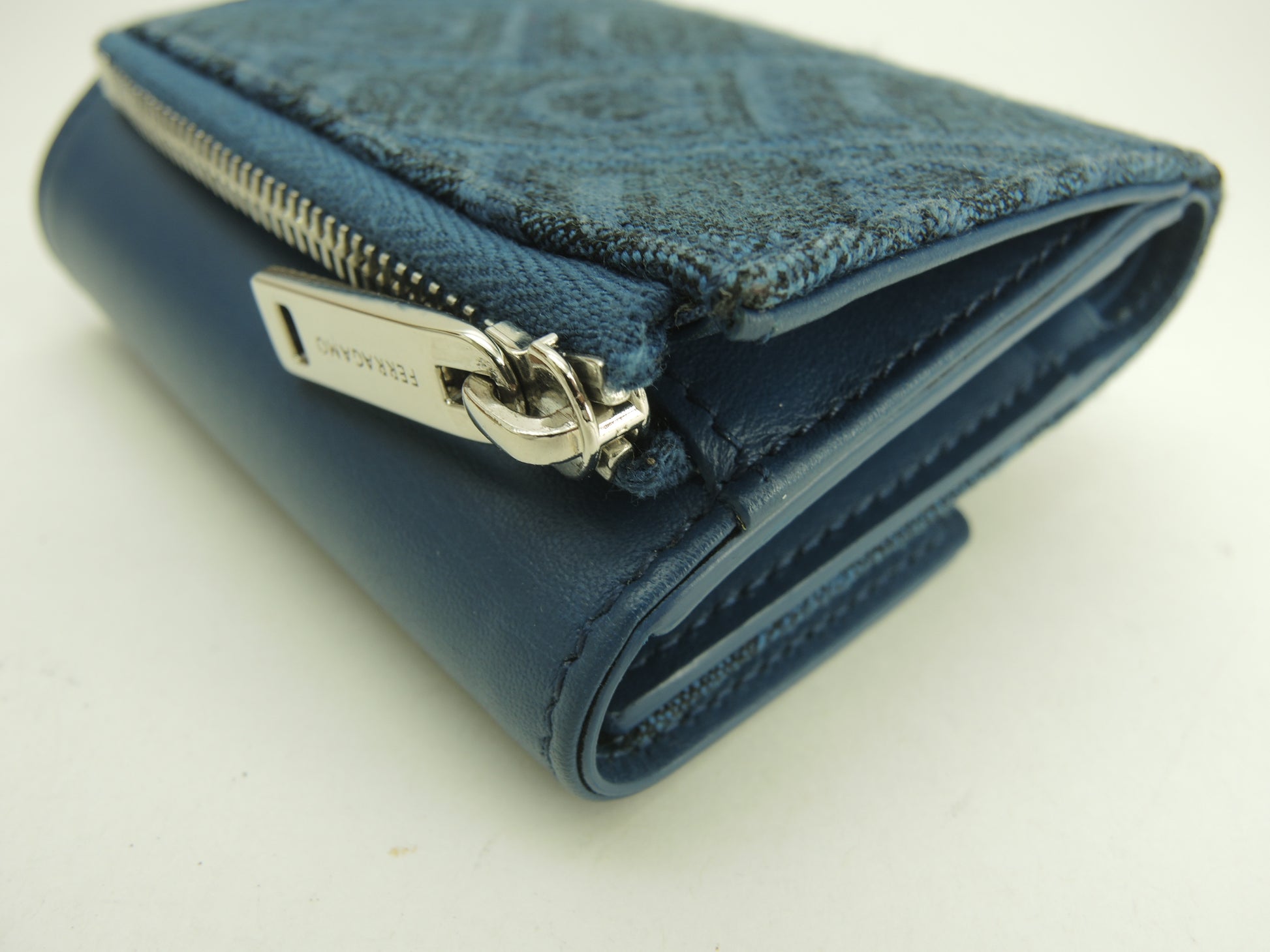 #Salvatore #Ferragamo #MiniWallet #CompactWallet #SmallWallet #Calf #Cotton #Leather #Blue #95%new #authentic #Zip #ZipAround #Gancini #220877 #Silver #secondhand #wholeSale #haibanya #aisai-jp #転売可