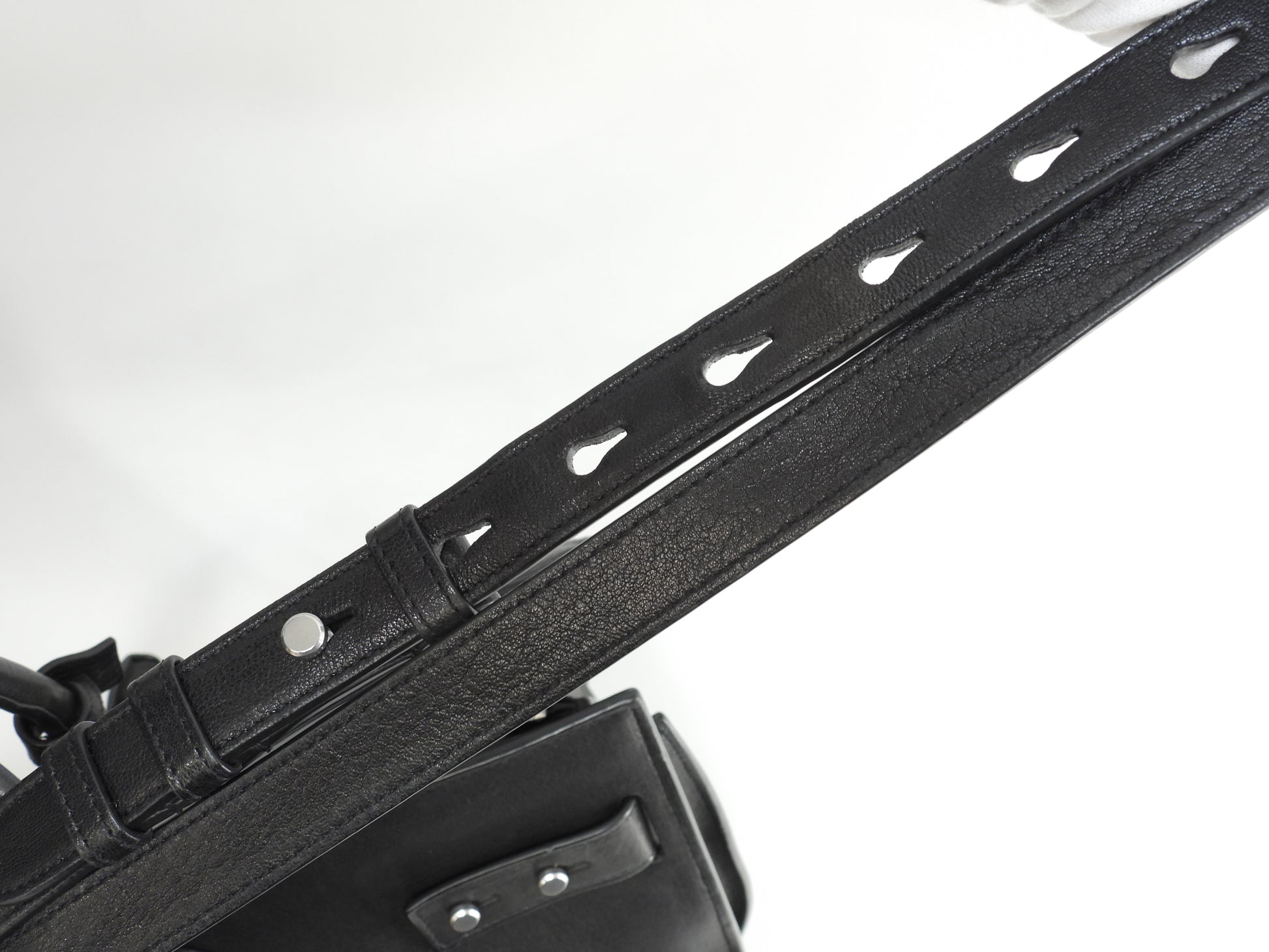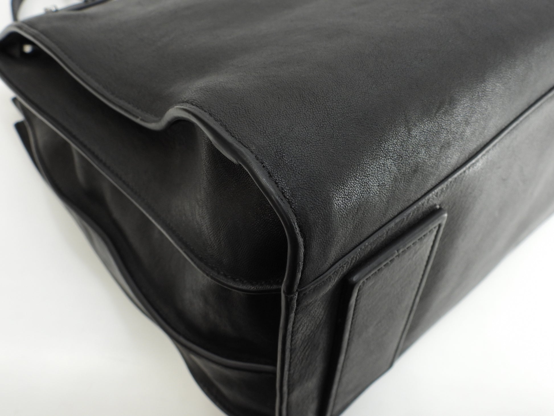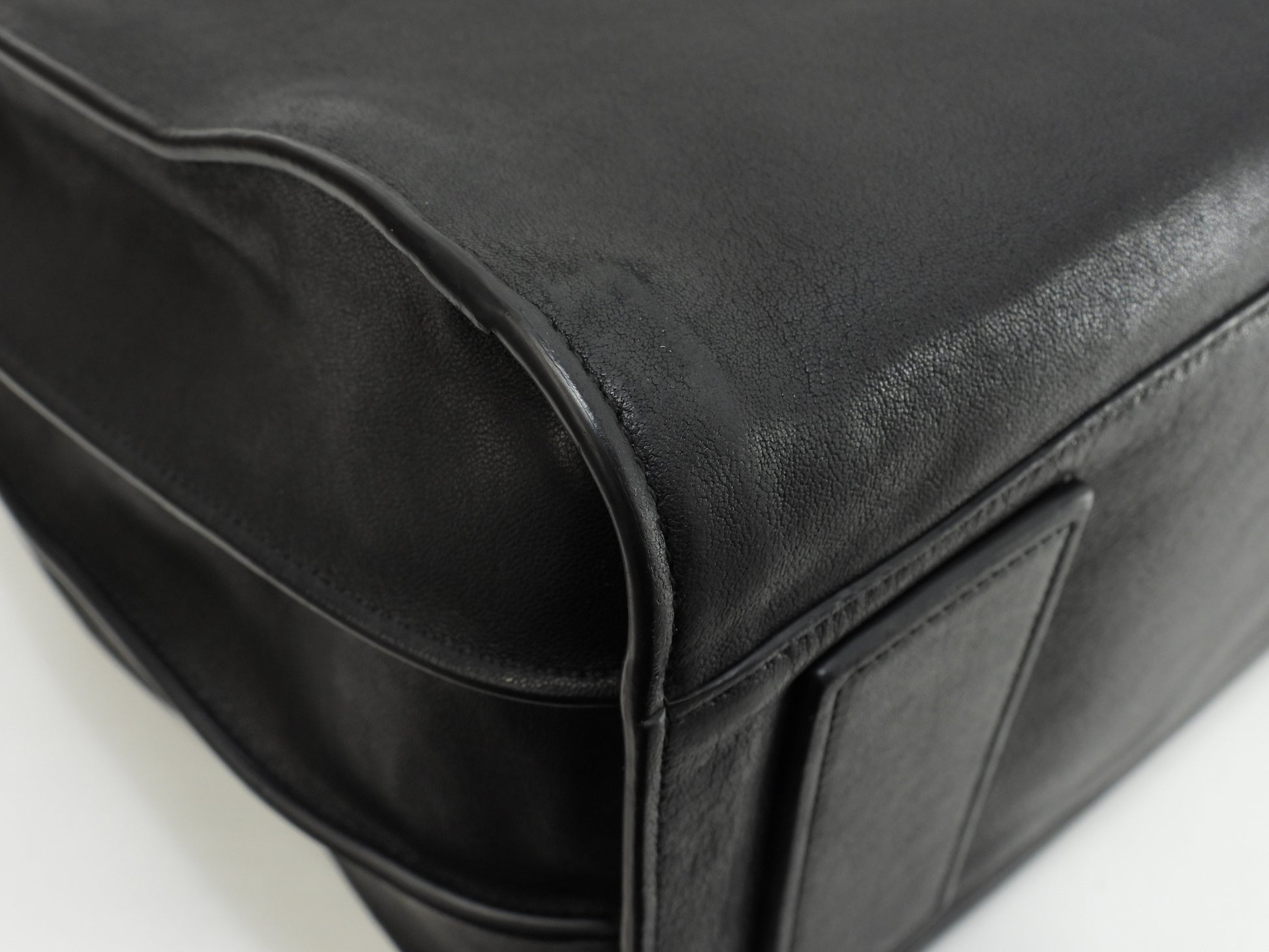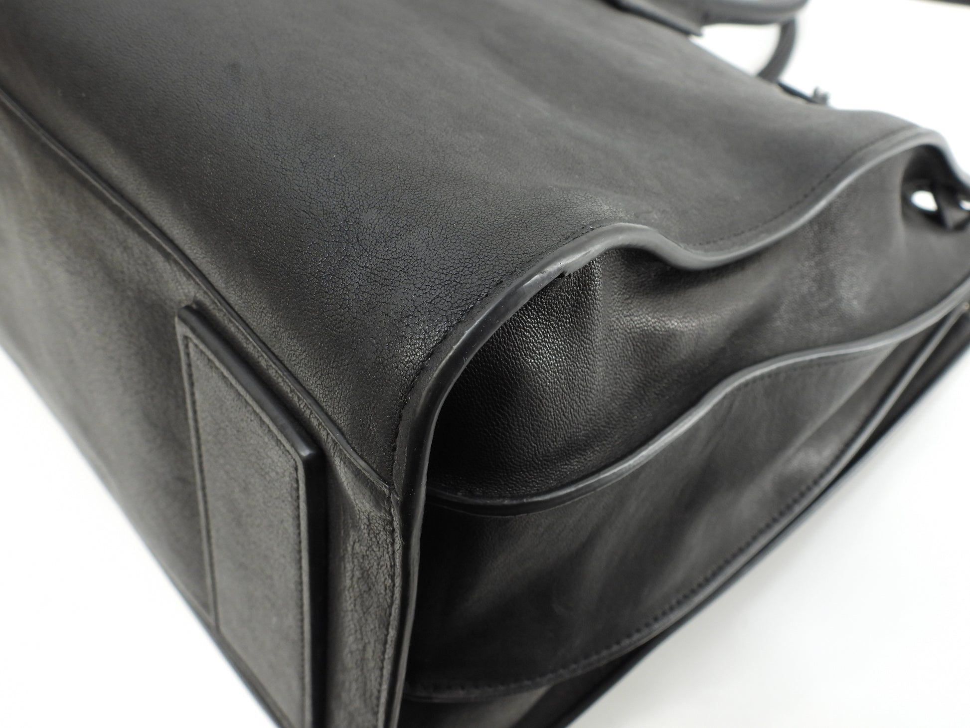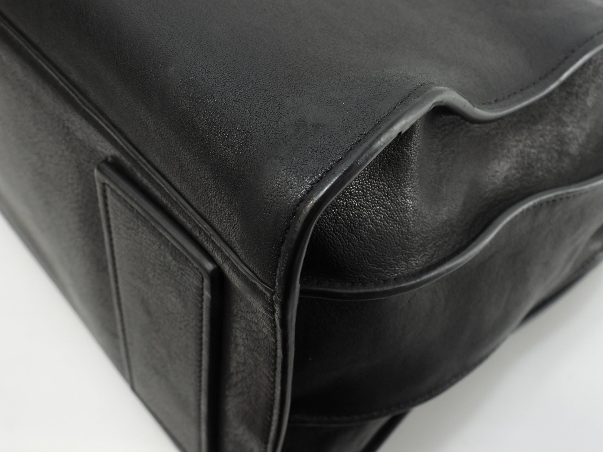 情報 : ボディは柔らかいレザーですので型崩れが全体的にあり、薄スレも全体的にございますが酷いダメージはございません。底部角付近に薄スレが少しございます。ハンドルは薄スレが少しございますが、弱りはございません。バッグ内は薄汚れ・薄スレが少しございますが酷いダメージはございません。金具部分はメッキ剝げもなくピカピカです。