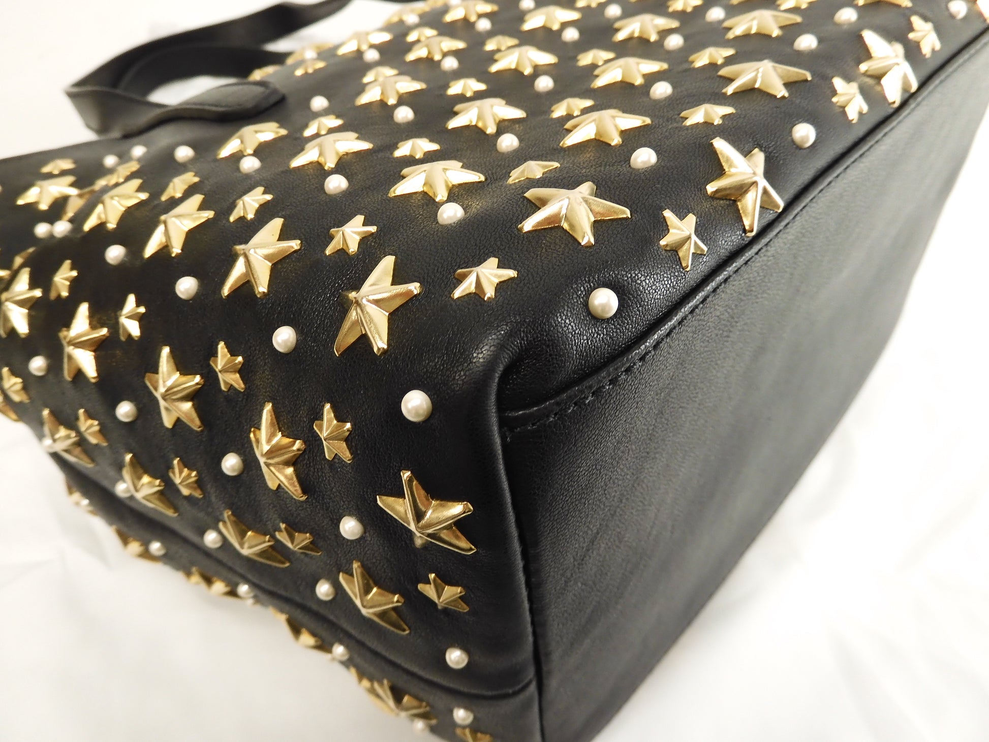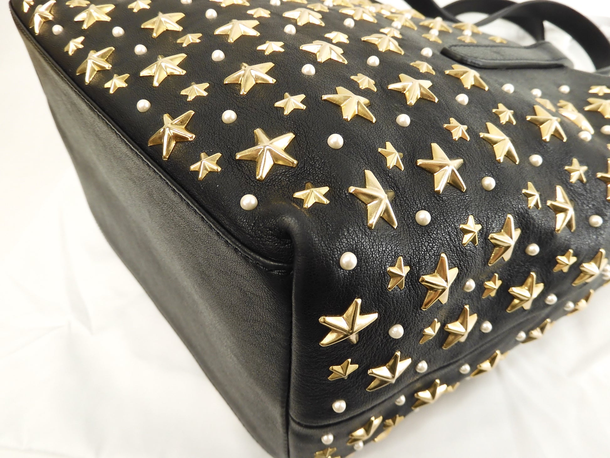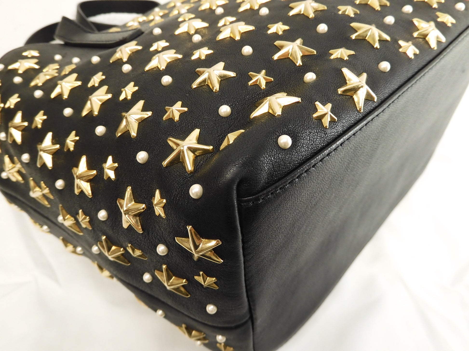 ジミーチュウ ソフィアS スタースタッズ/パール レザー黒 ハンドバッグ トート 新品同様@27Q0YC