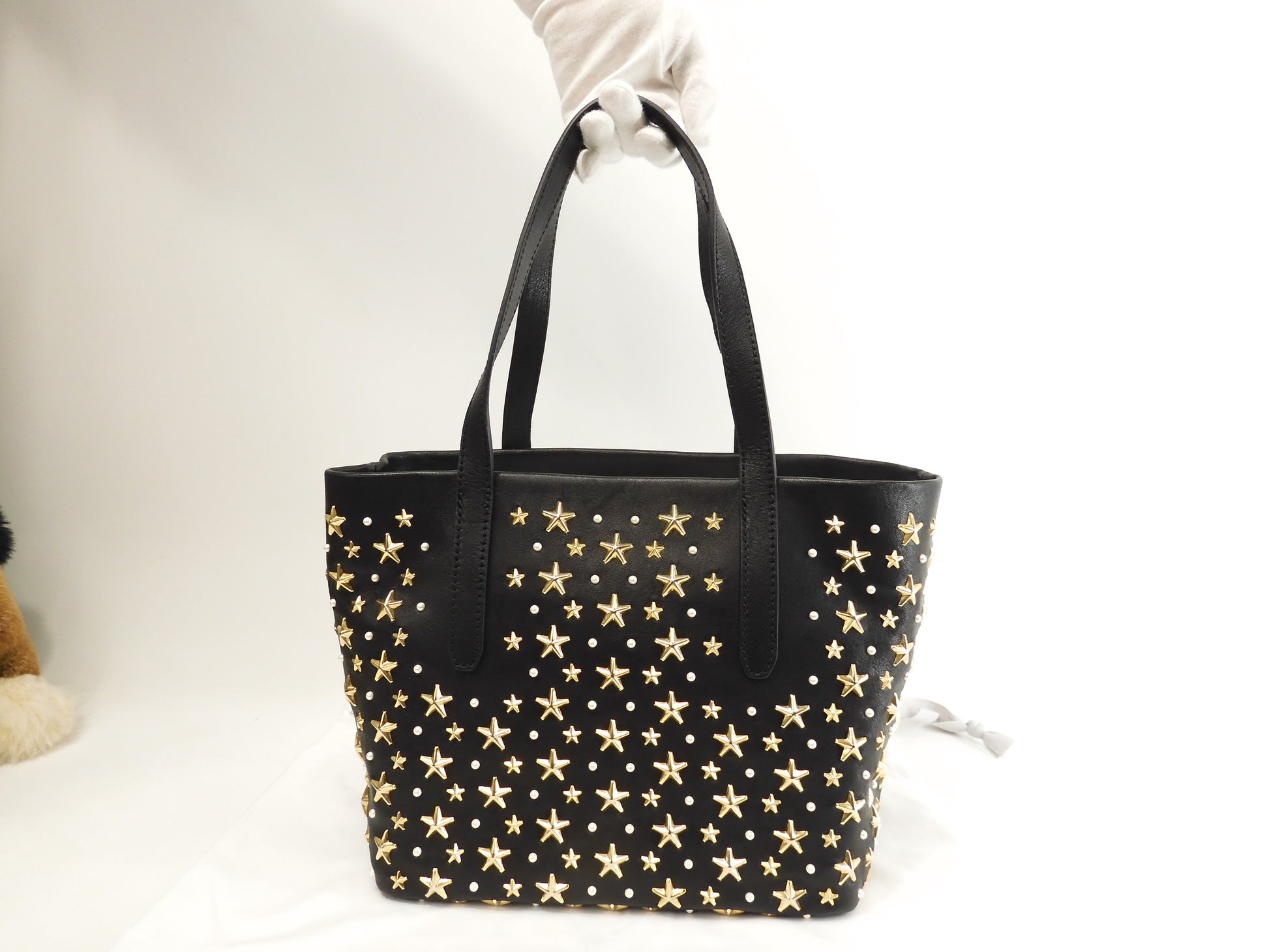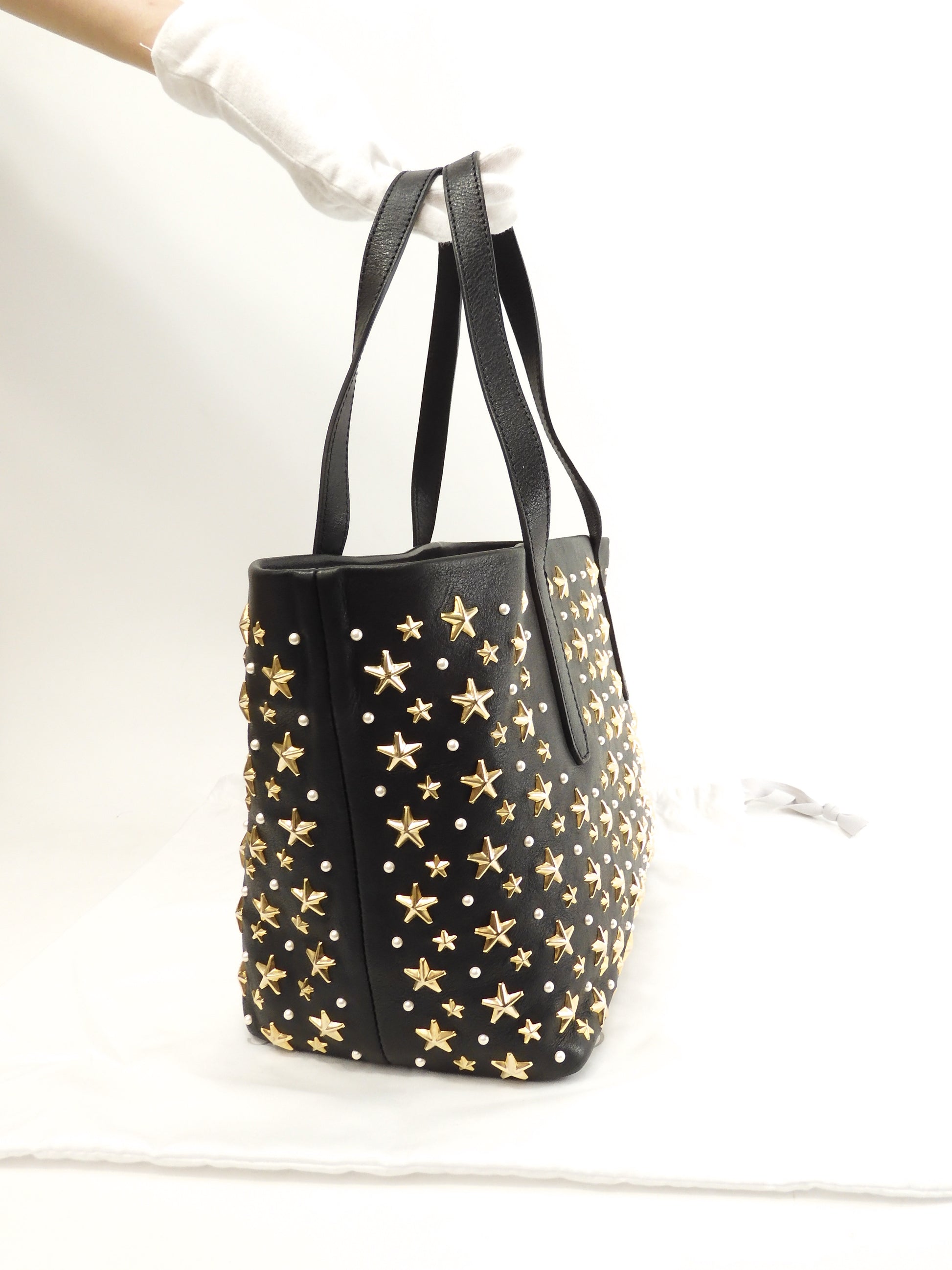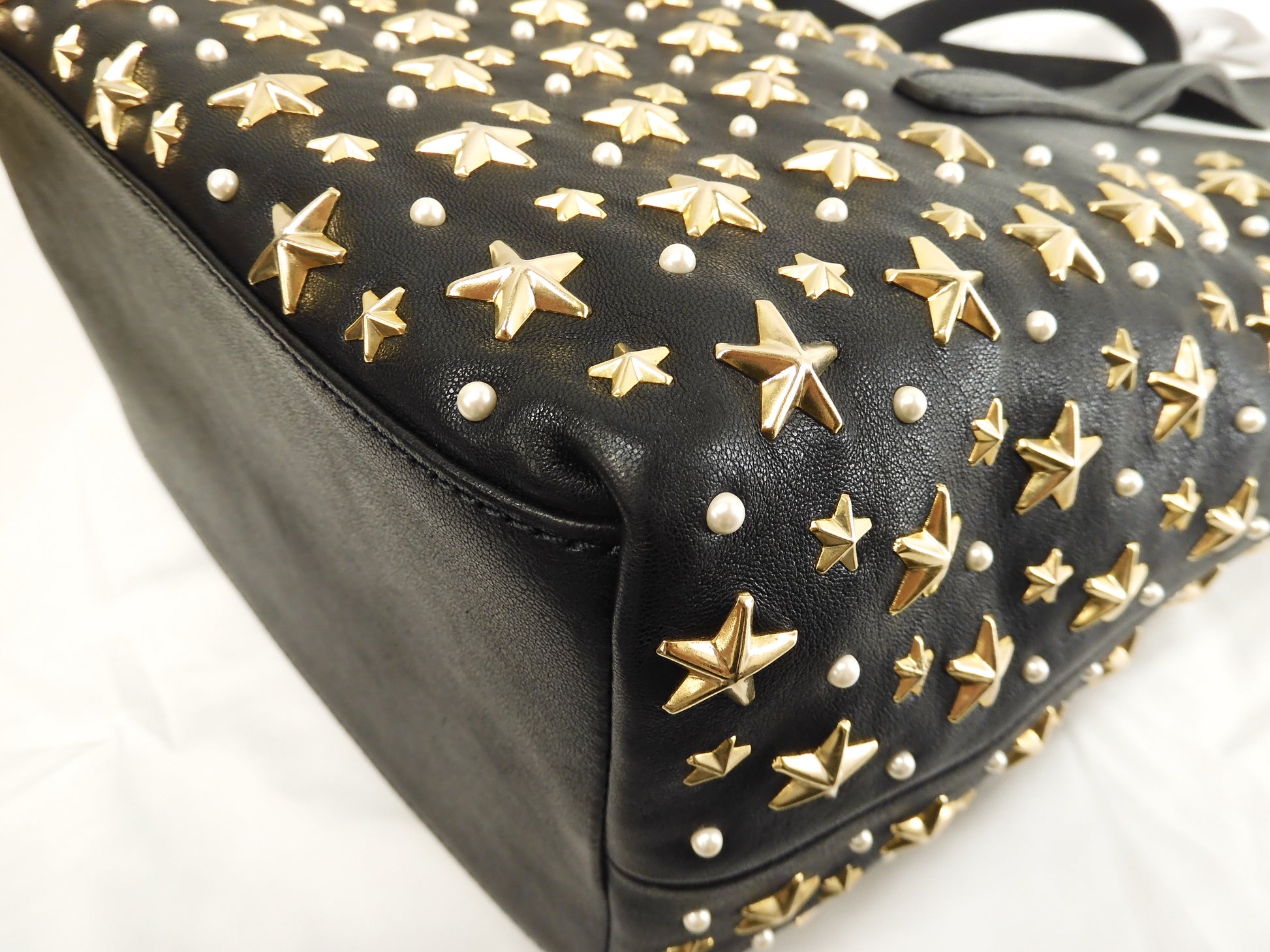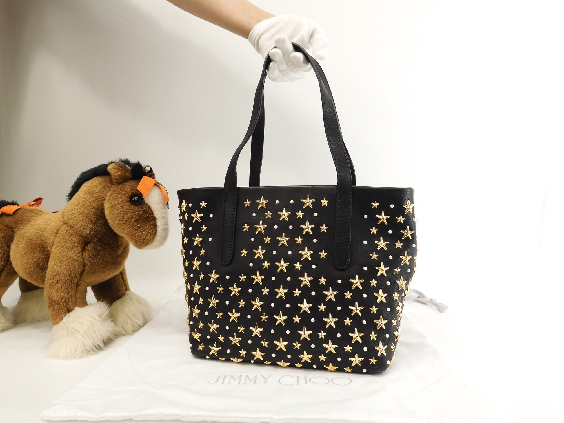 ジミーチュウ ソフィアS スタースタッズ/パール レザー黒 ハンドバッグ トート 新品同様@27Q0YC