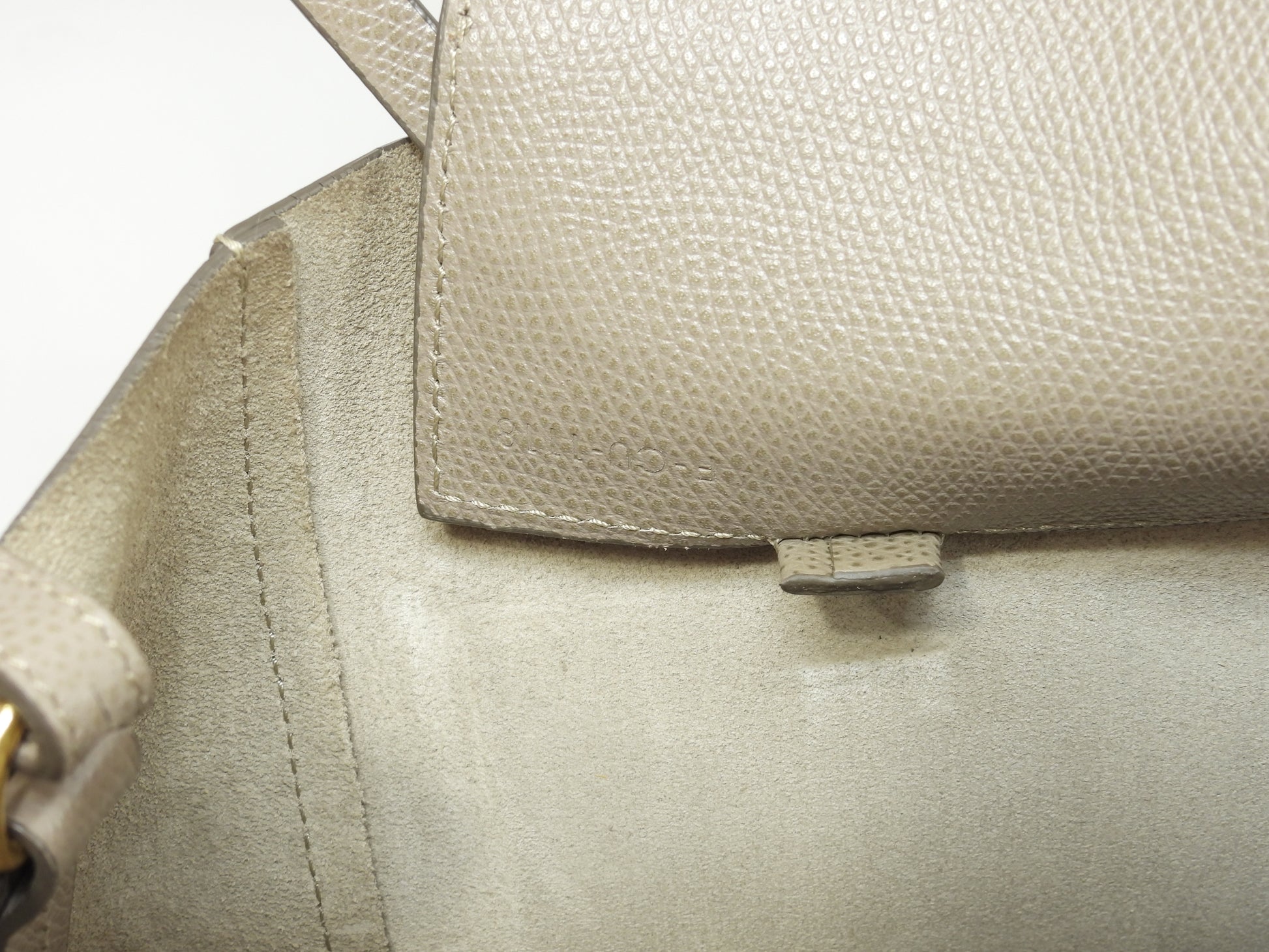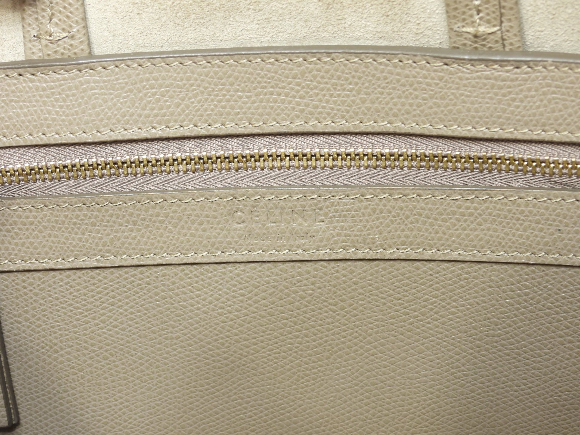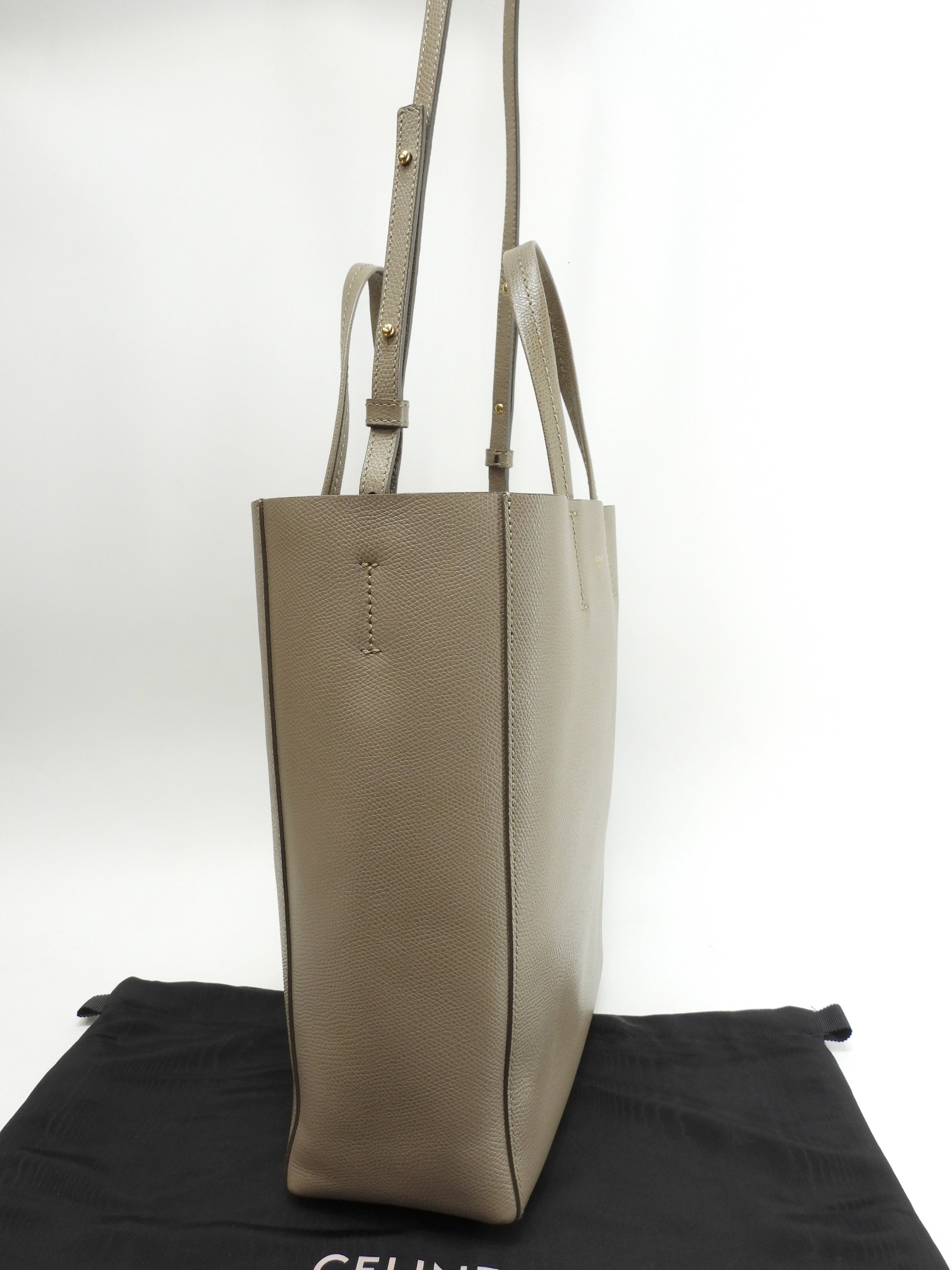 セリーヌ カバスモール ヴェルティカル レザー灰 ショルダーストラップ付ハンドバッグ ポシェット@F-CU-1118