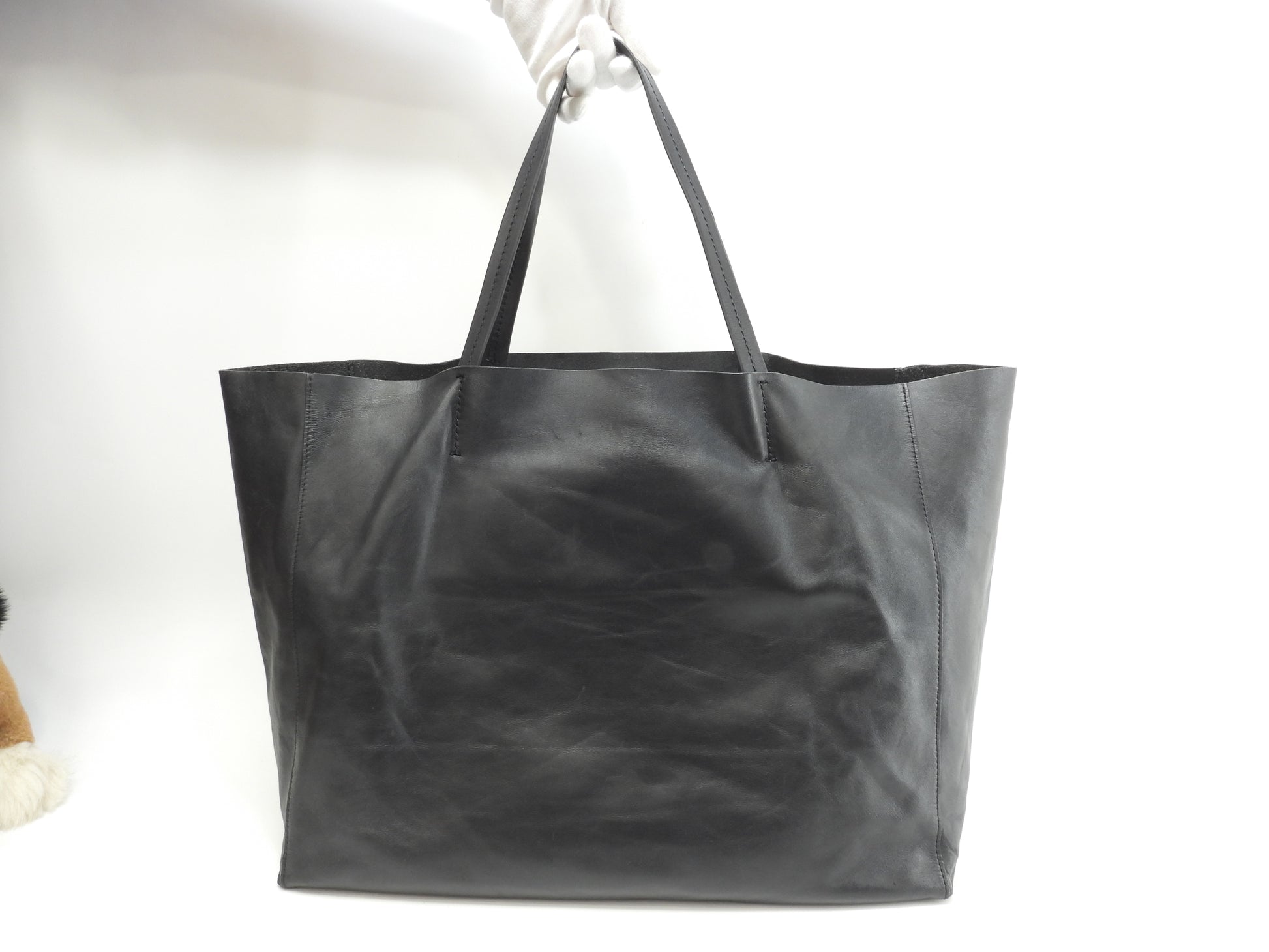 セリーヌ カバホリゾンタル スムースレザー 黒 トートバッグ ショルダーバッグ大@U-CU-0123