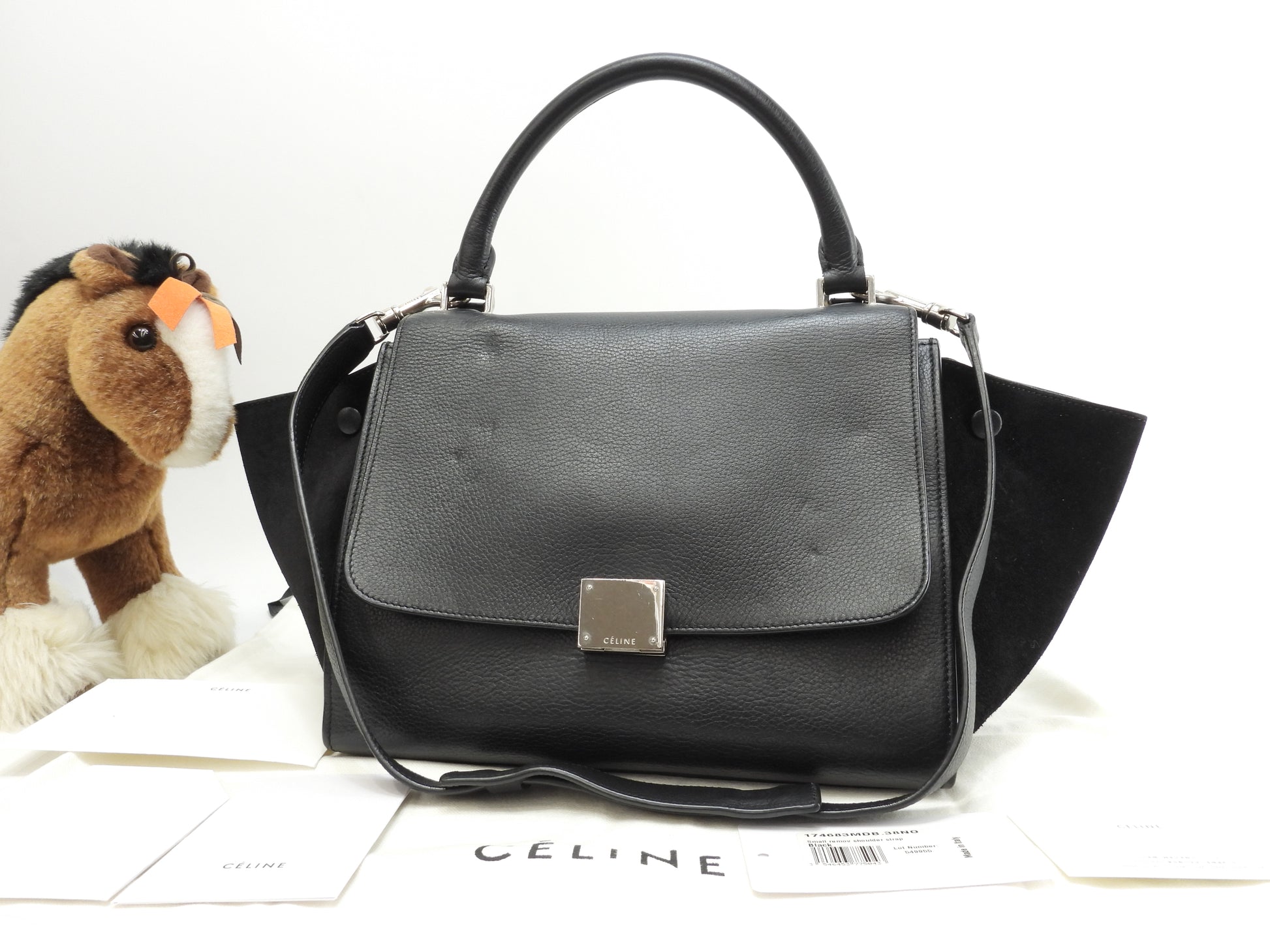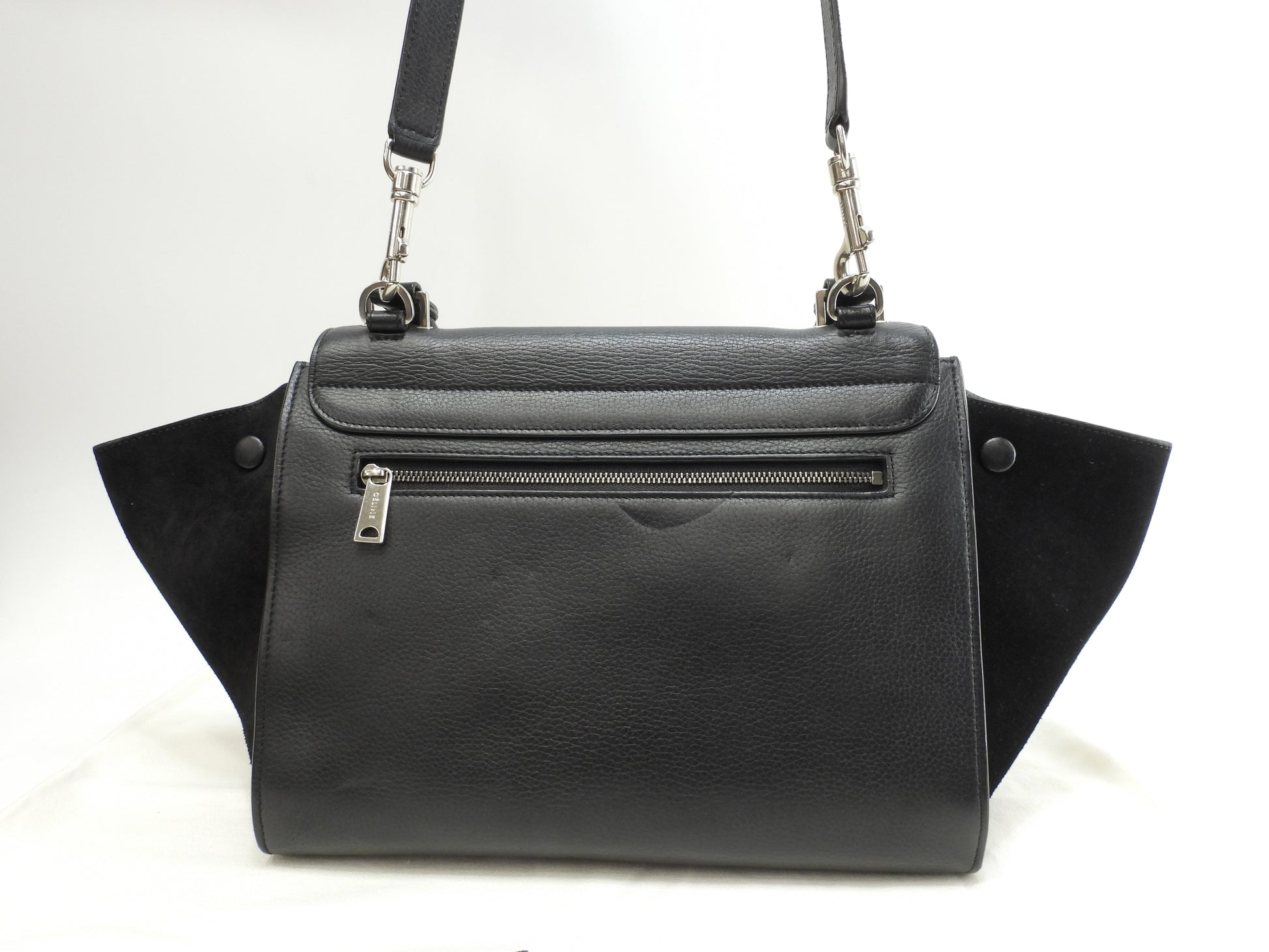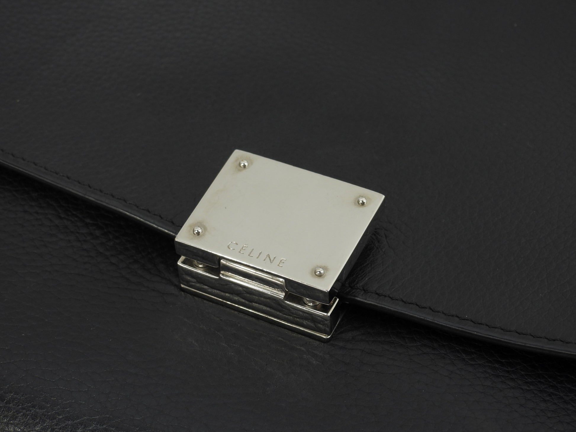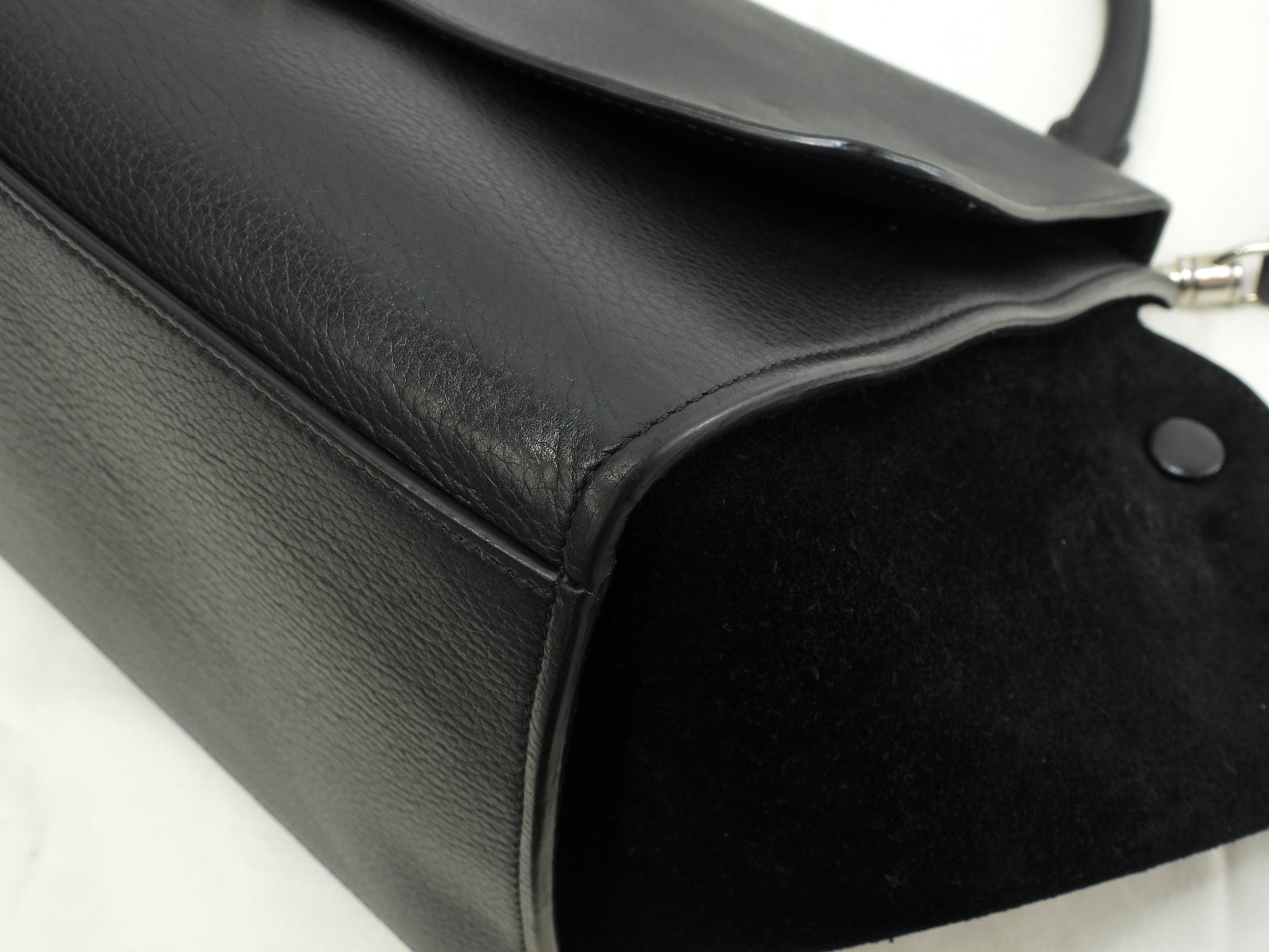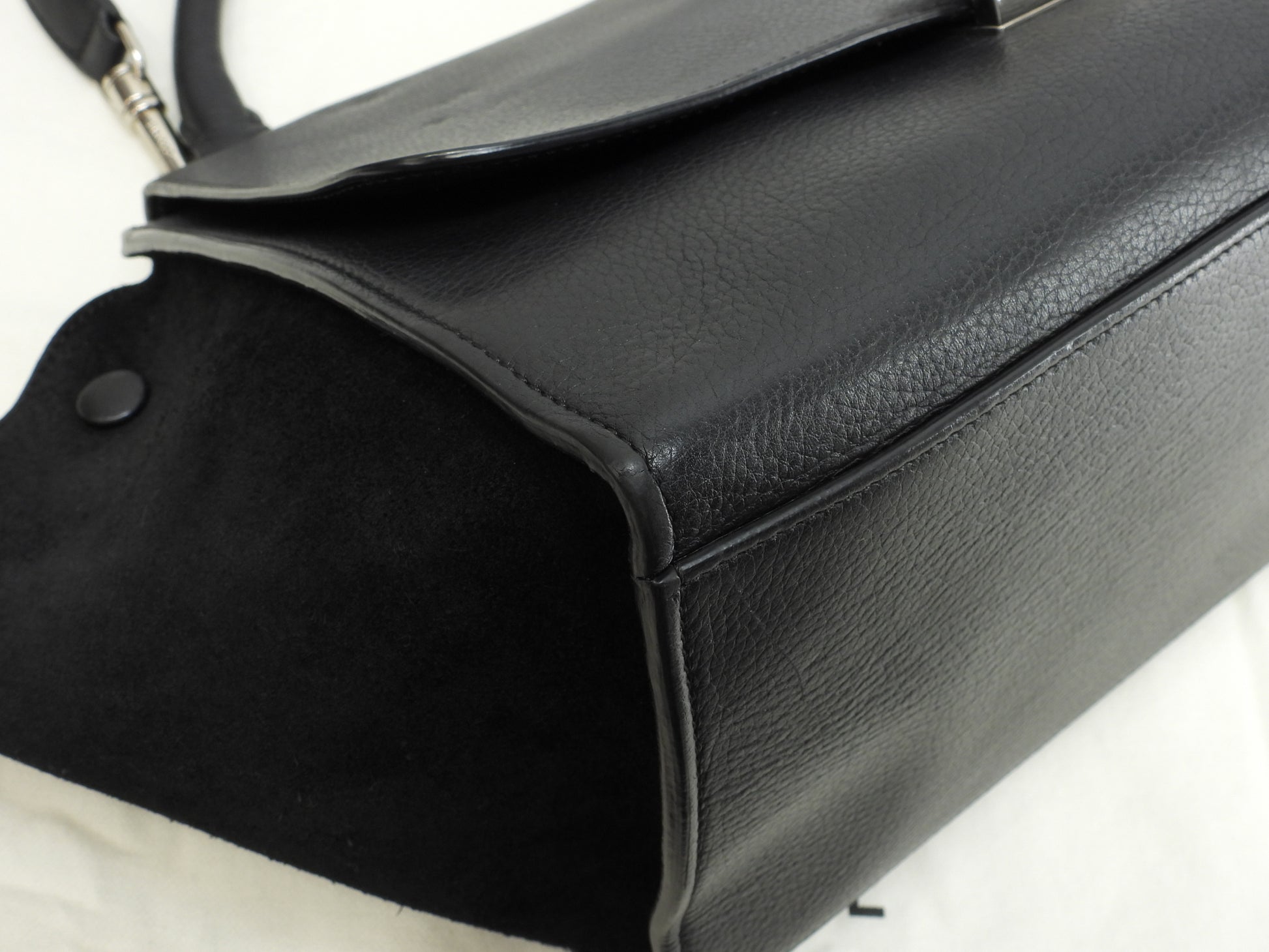 セリーヌ トラペーズ スモール レザー黒 ショルダーストラップ付ハンドバッグ@ 31