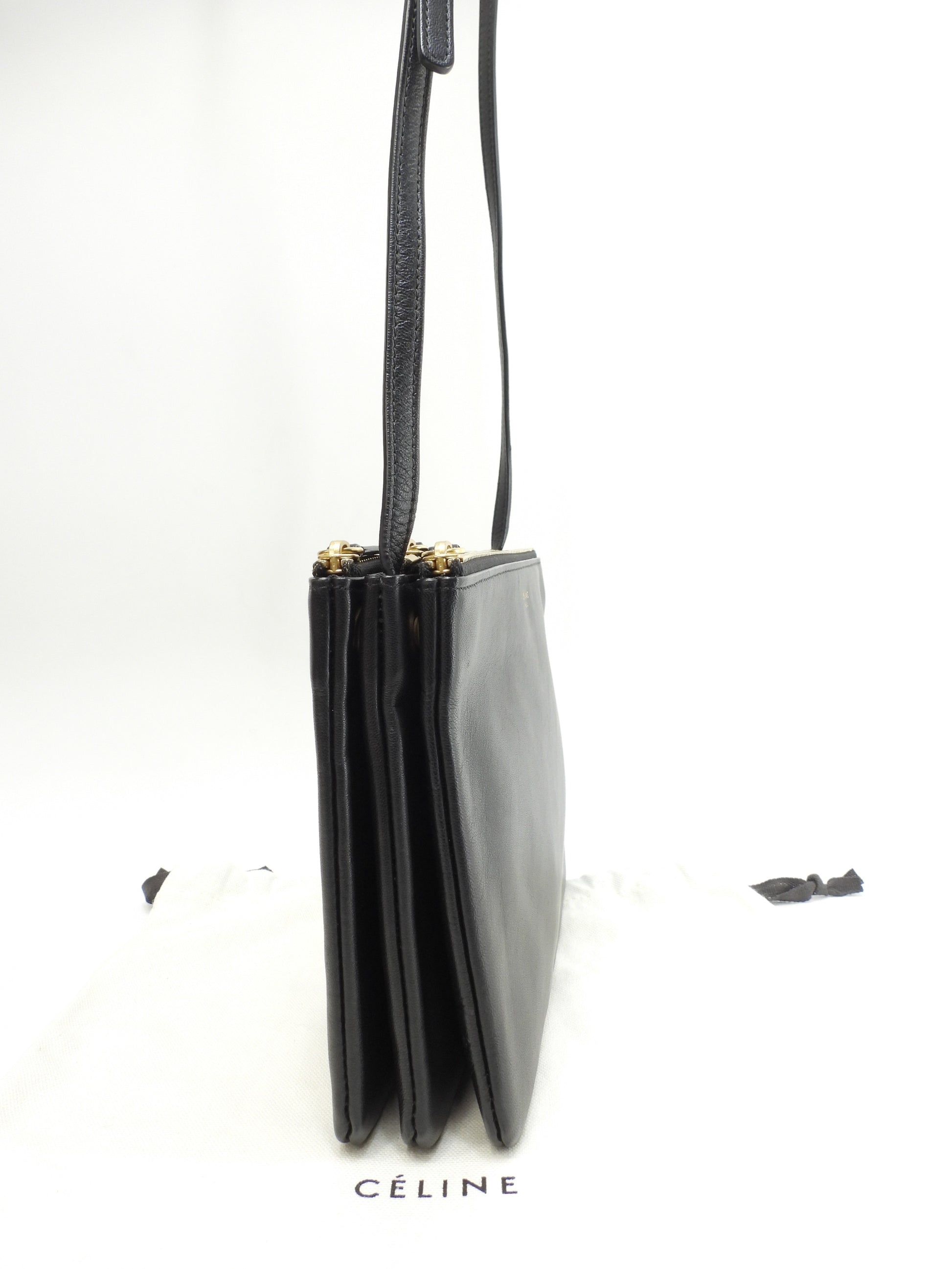 セリーヌ トリオラージ スムースレザー黒 クロスボディバッグ 斜掛ショルダー ポシェット 美品@ 3