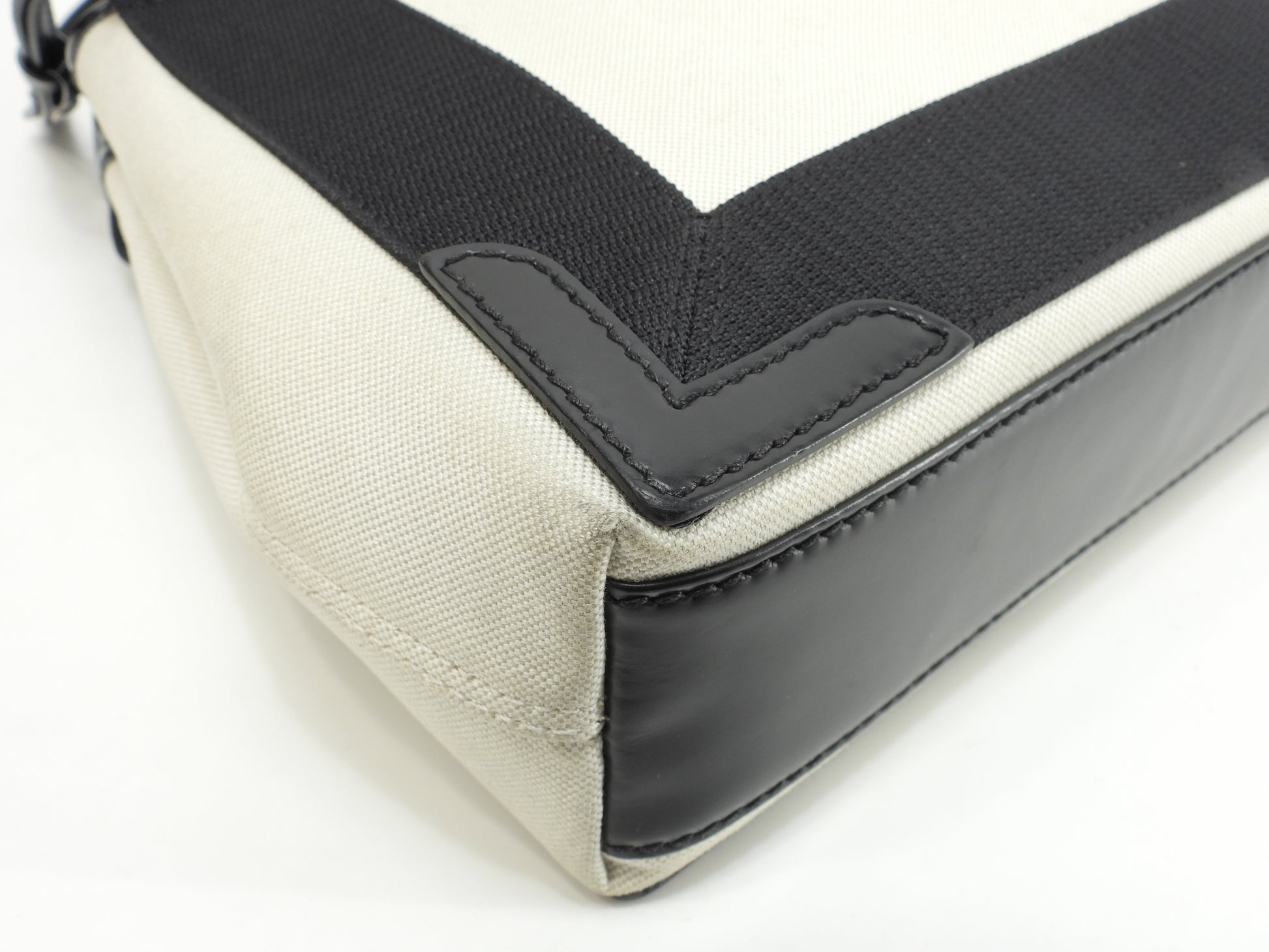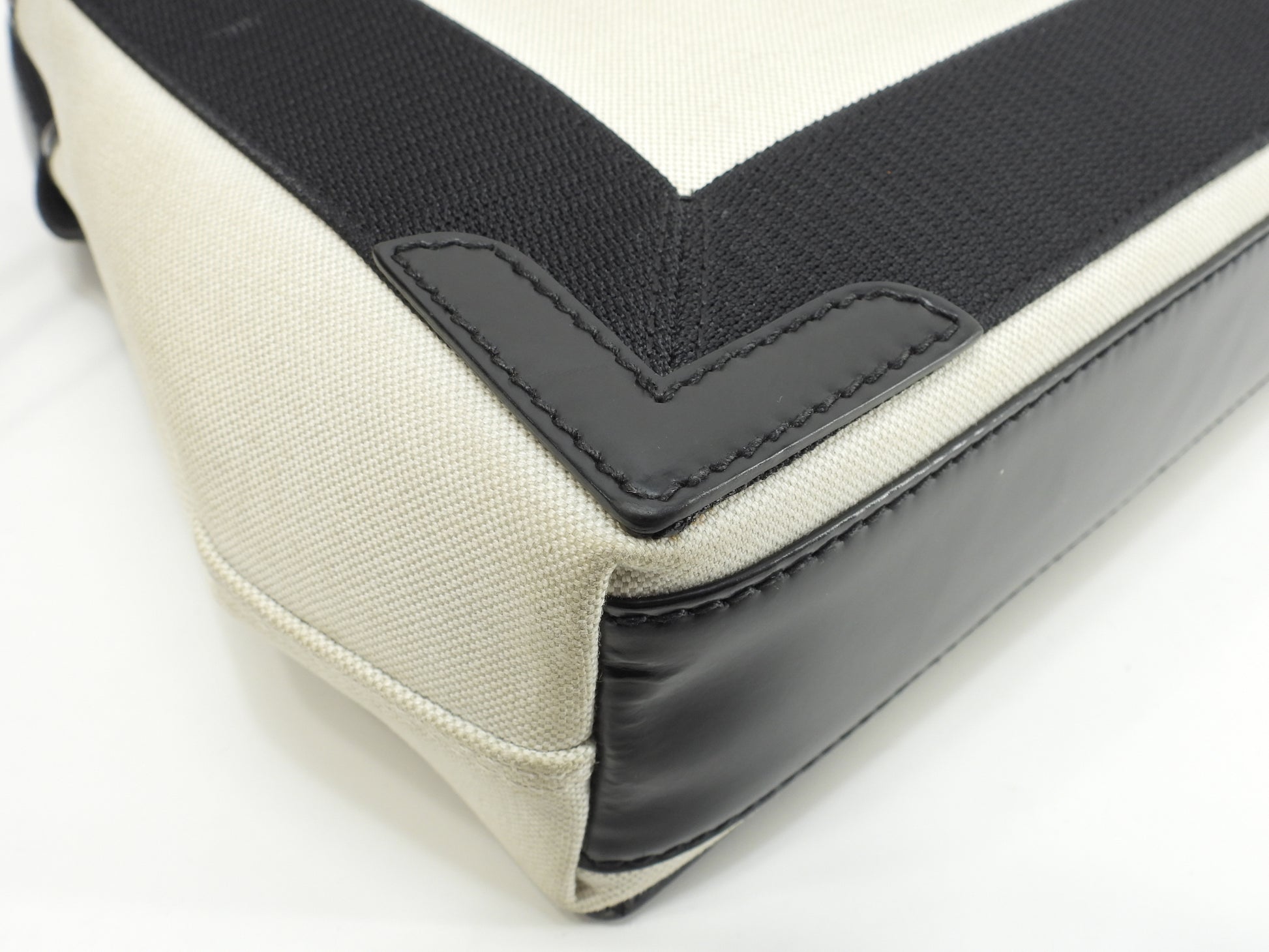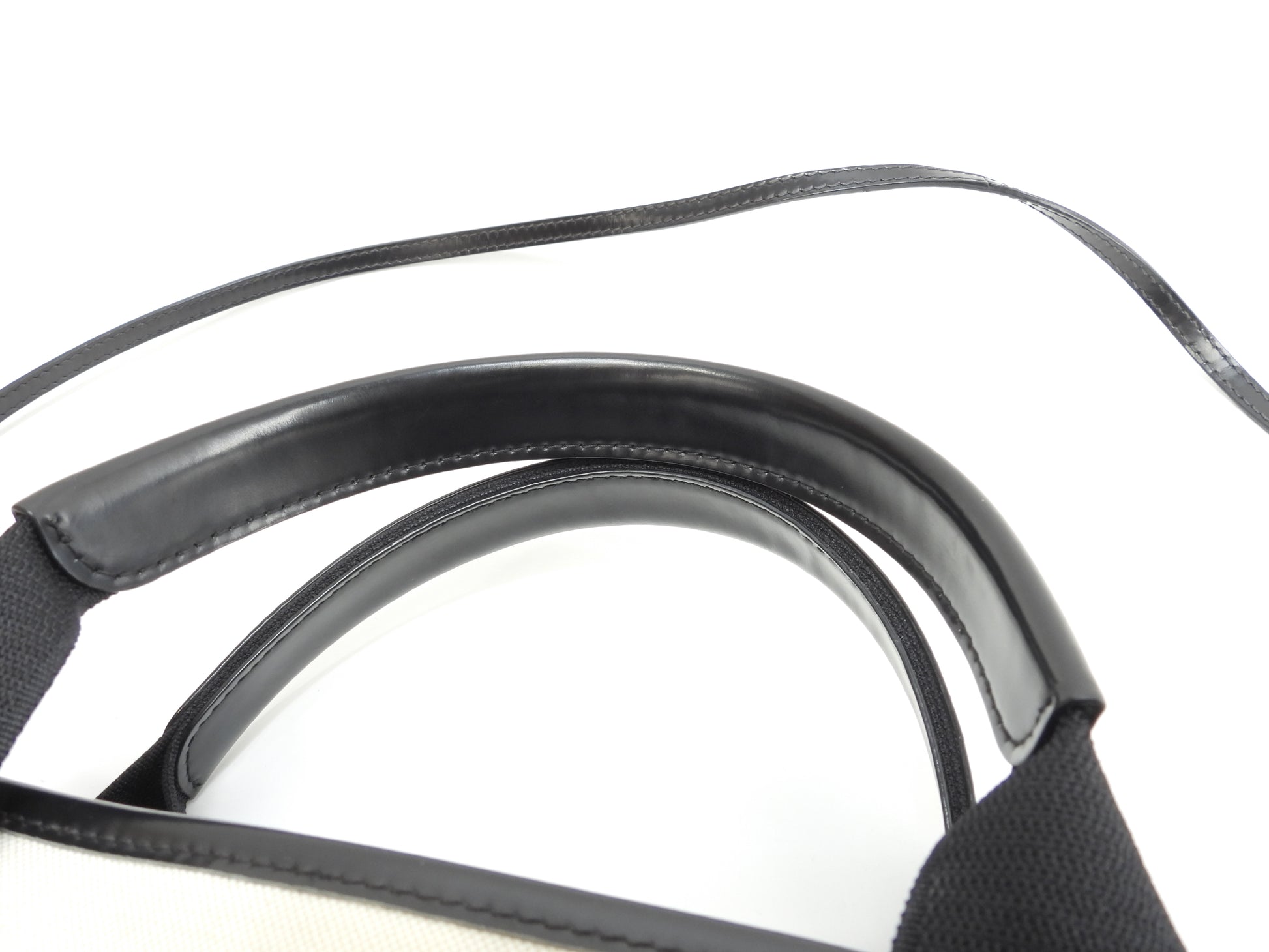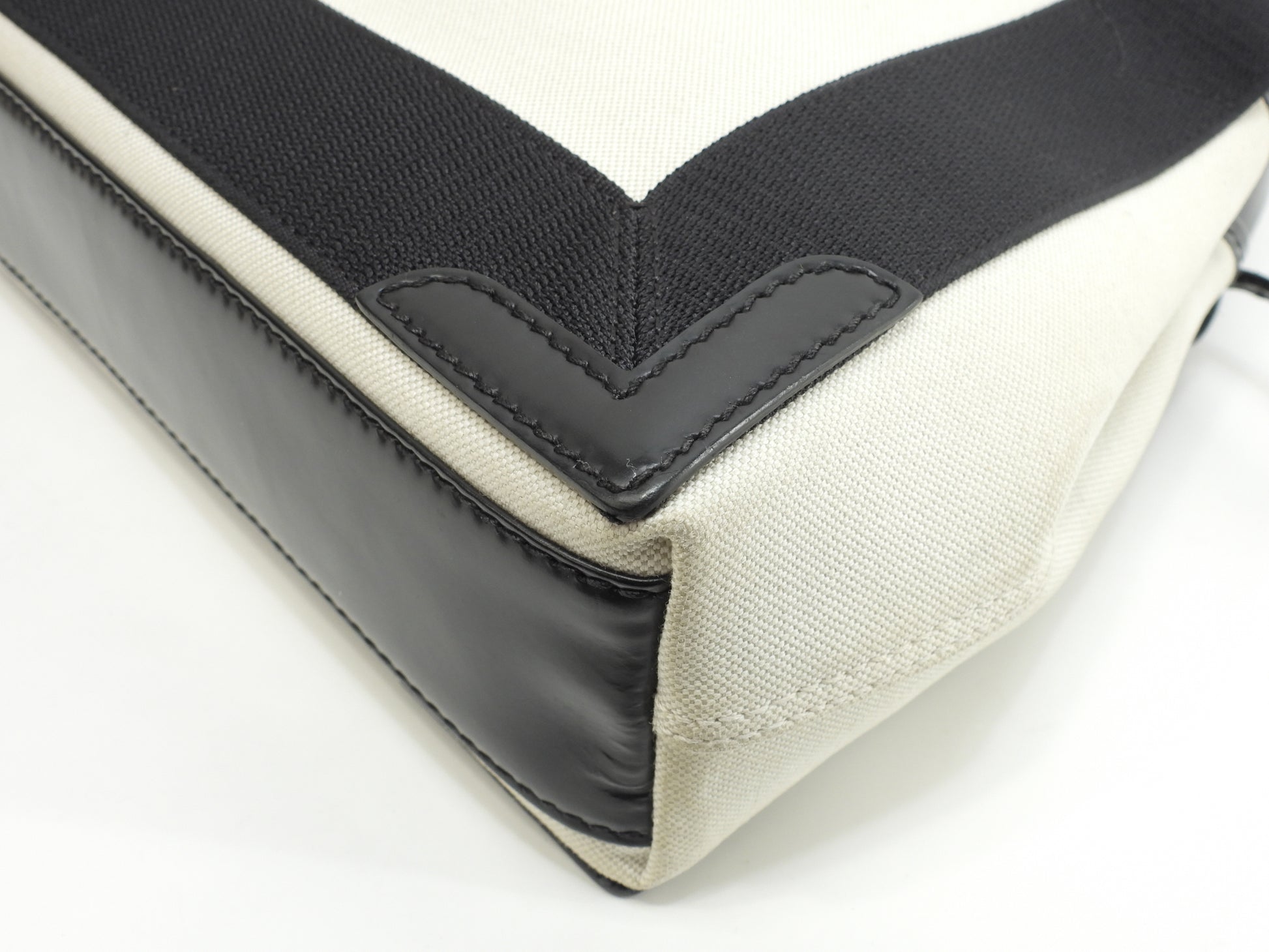 バレンシアガ ネイビーカバXS コットン/レザー 白黒 ポシェット ミニハンドバッグ@ 62