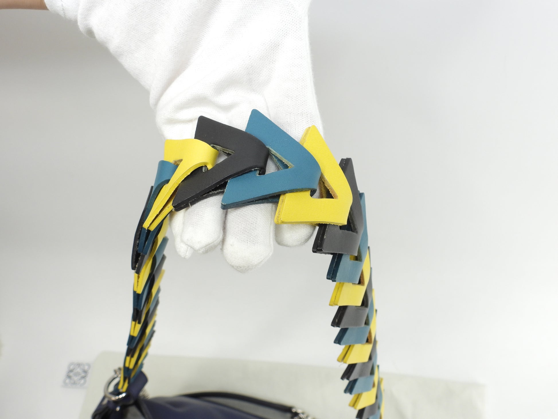 ロエベ 2wayショルダーバッグ Vバケット レザー濃青 ポシェット クロスボディバッグ 極美品@061510