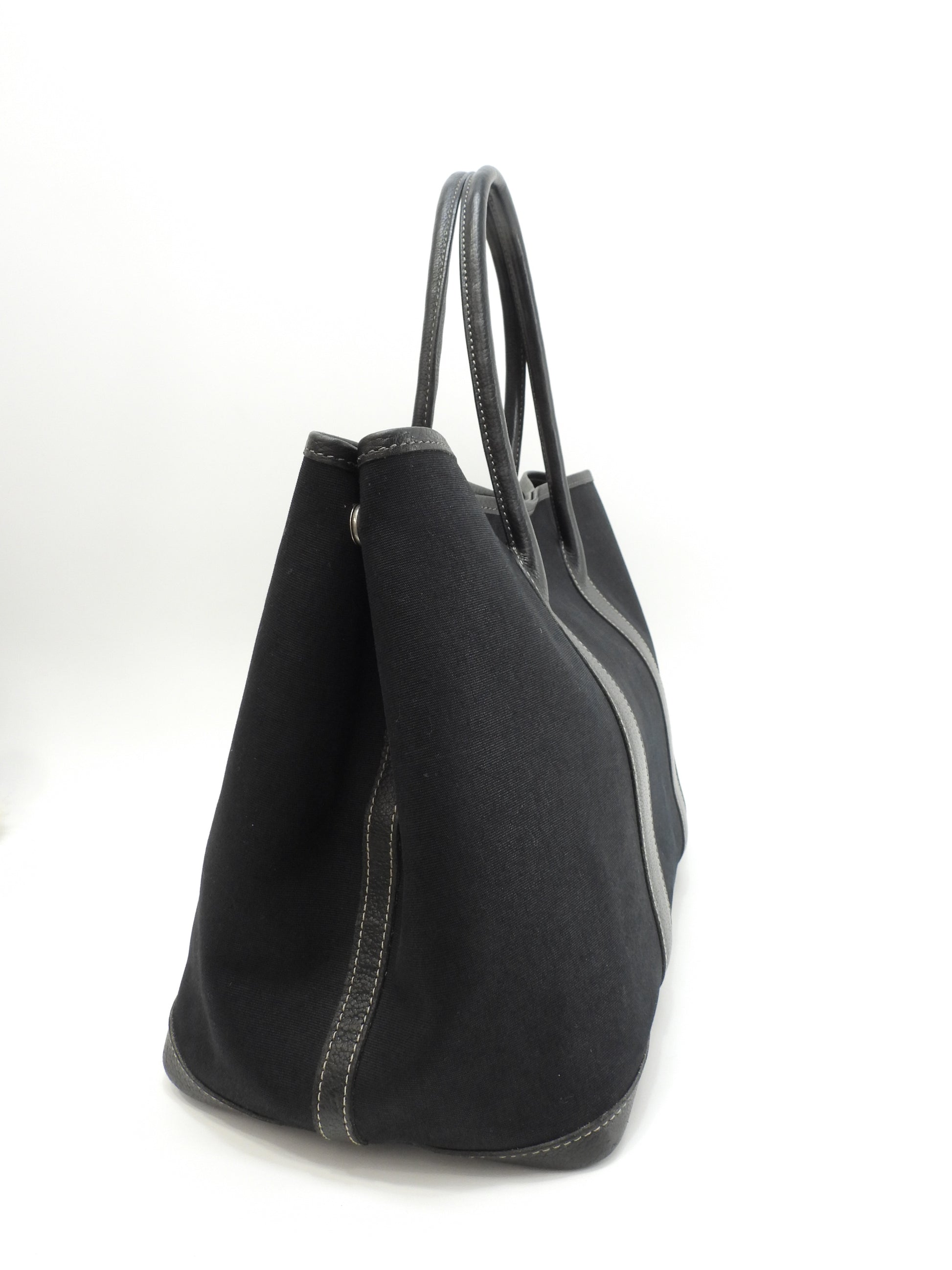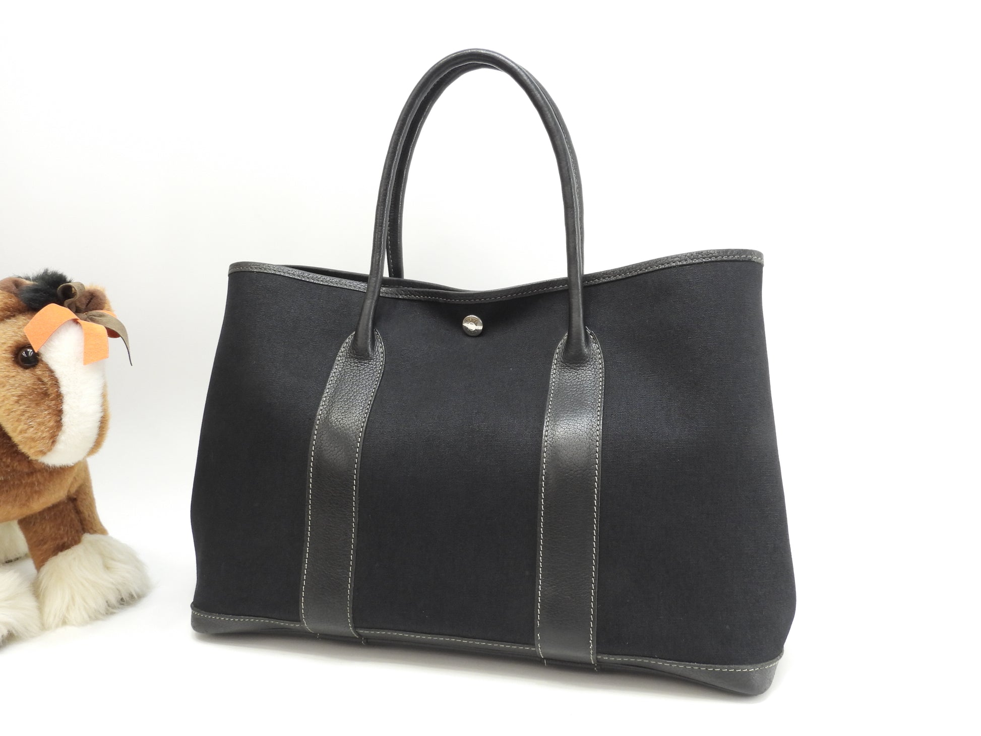 エルメス ガーデンパーティPM コットン/レザー 黒 トートバッグ ハンドバッグ@□G 8
