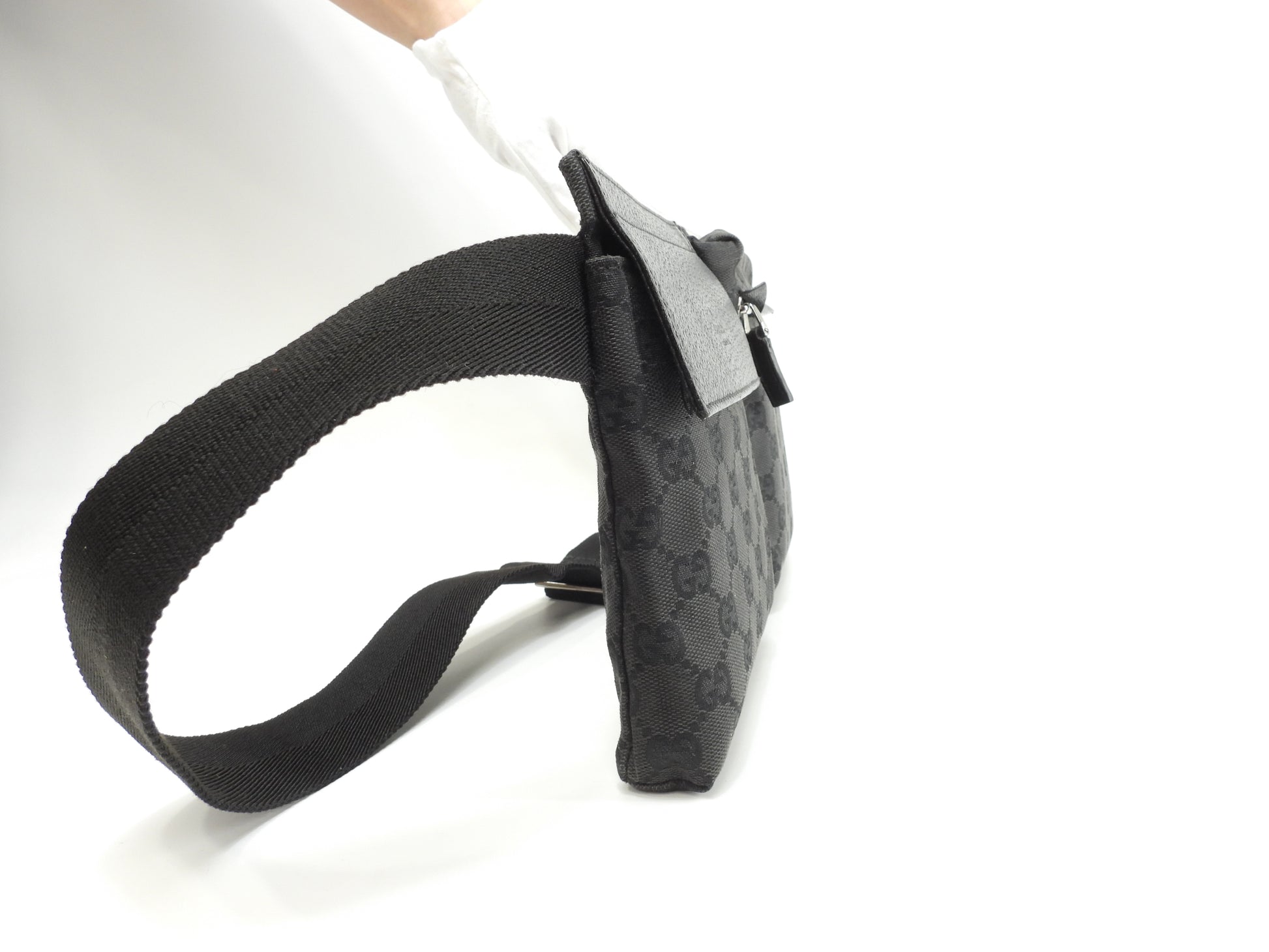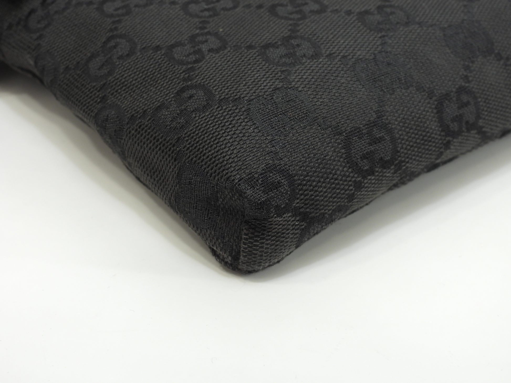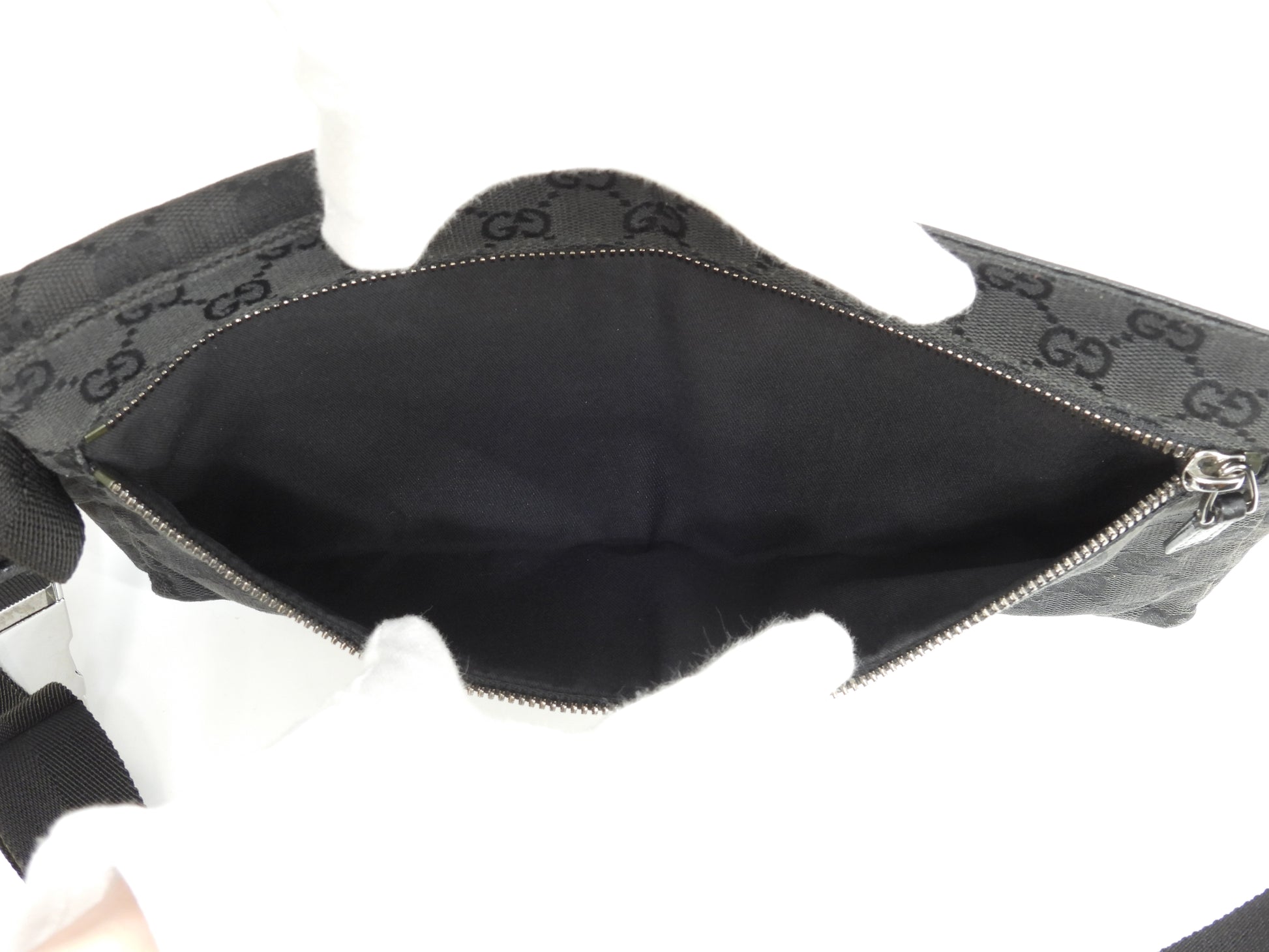 グッチ ベルトバッグ GGシュプリーム コットン黒革 ボディバッグ ウエストバッグ 美品@ 16