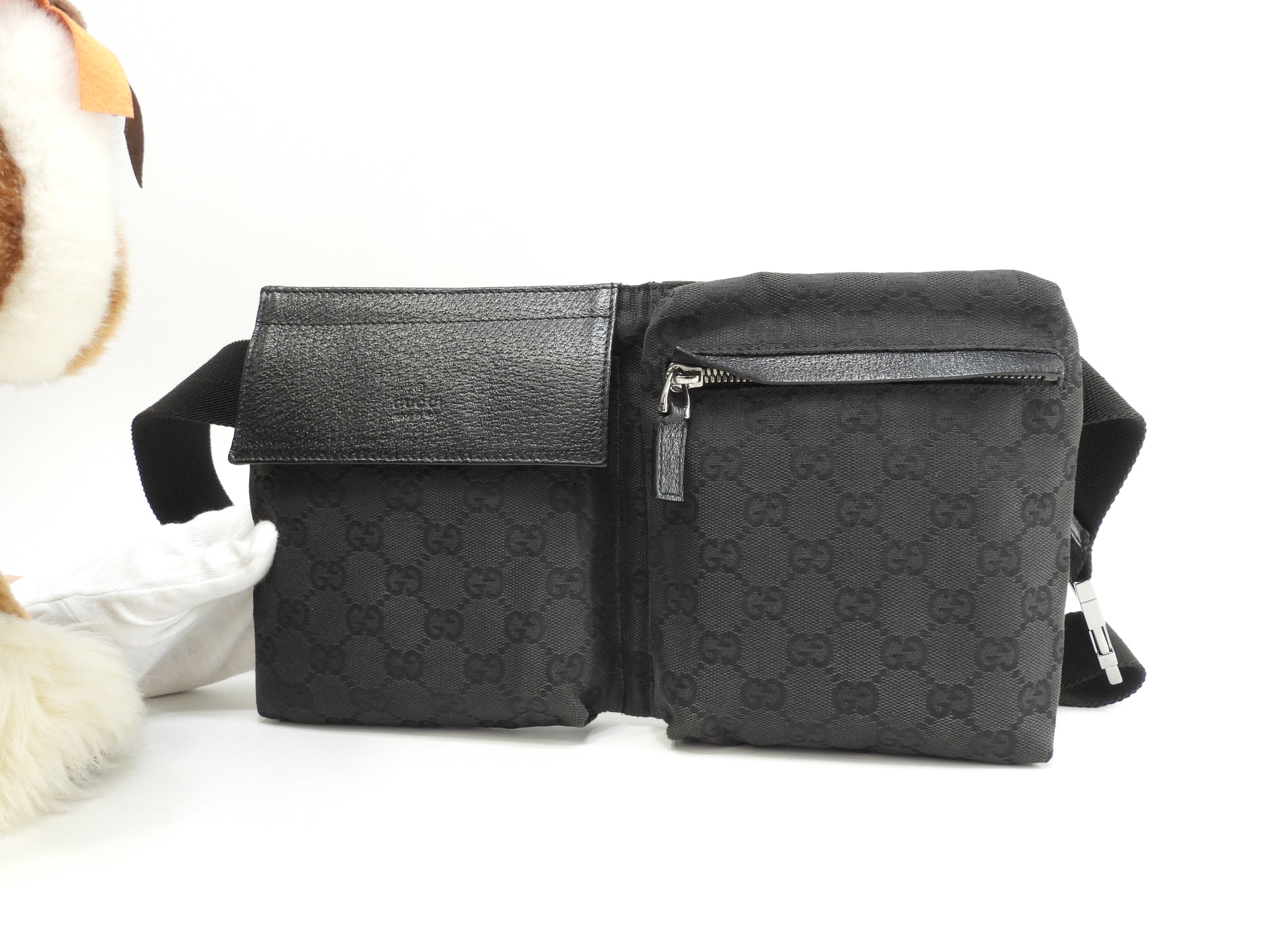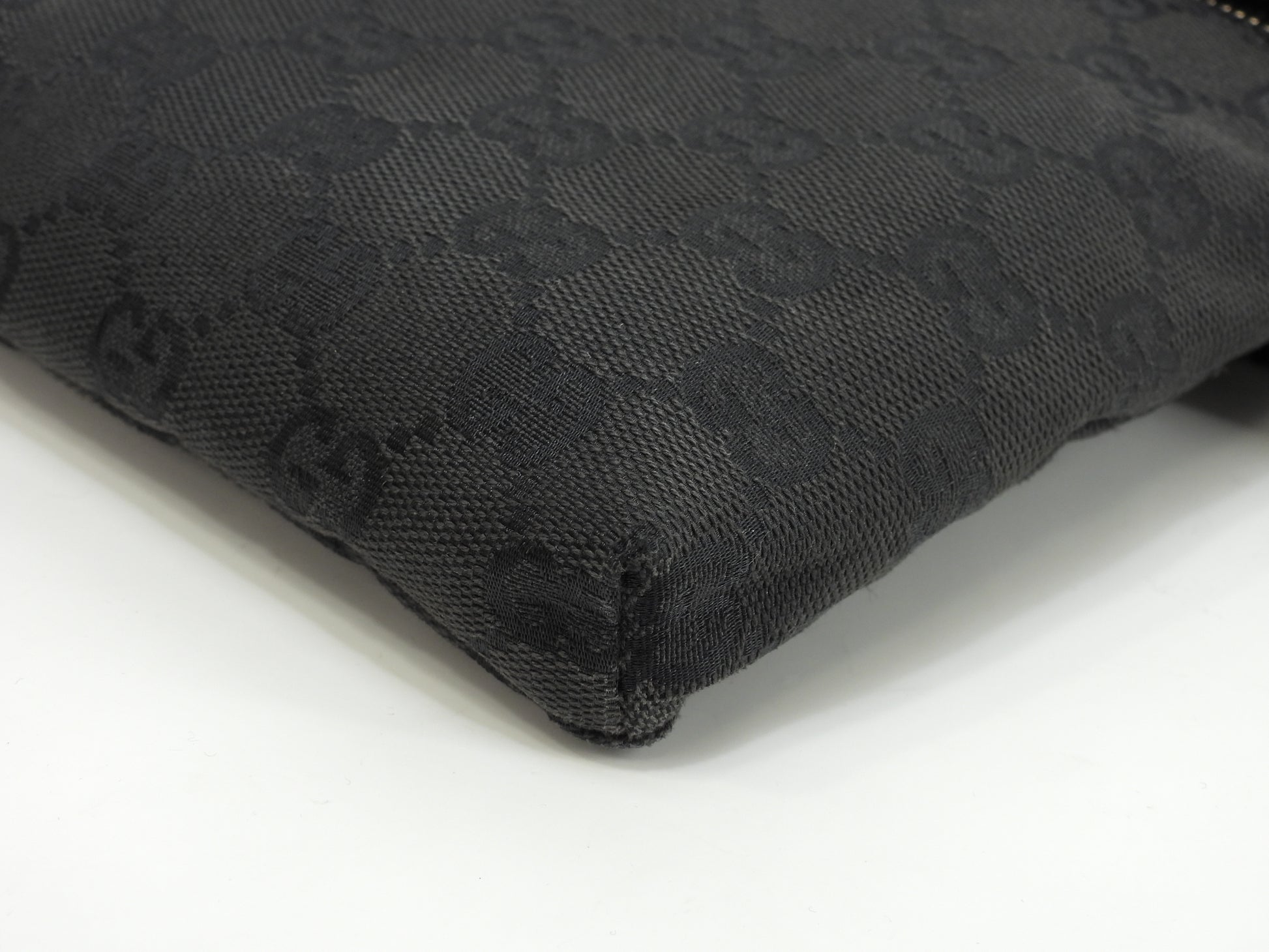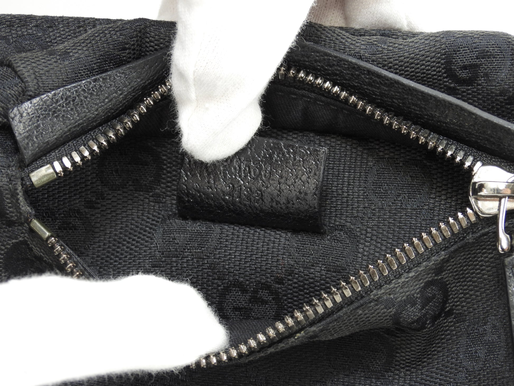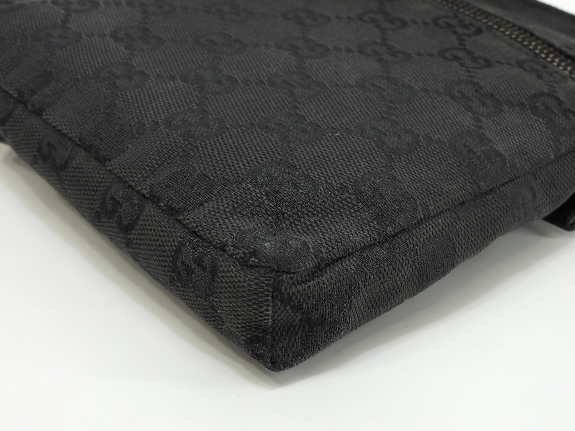 グッチ ベルトバッグ GGシュプリーム コットン黒革 ボディバッグ ウエストバッグ 美品@ 16