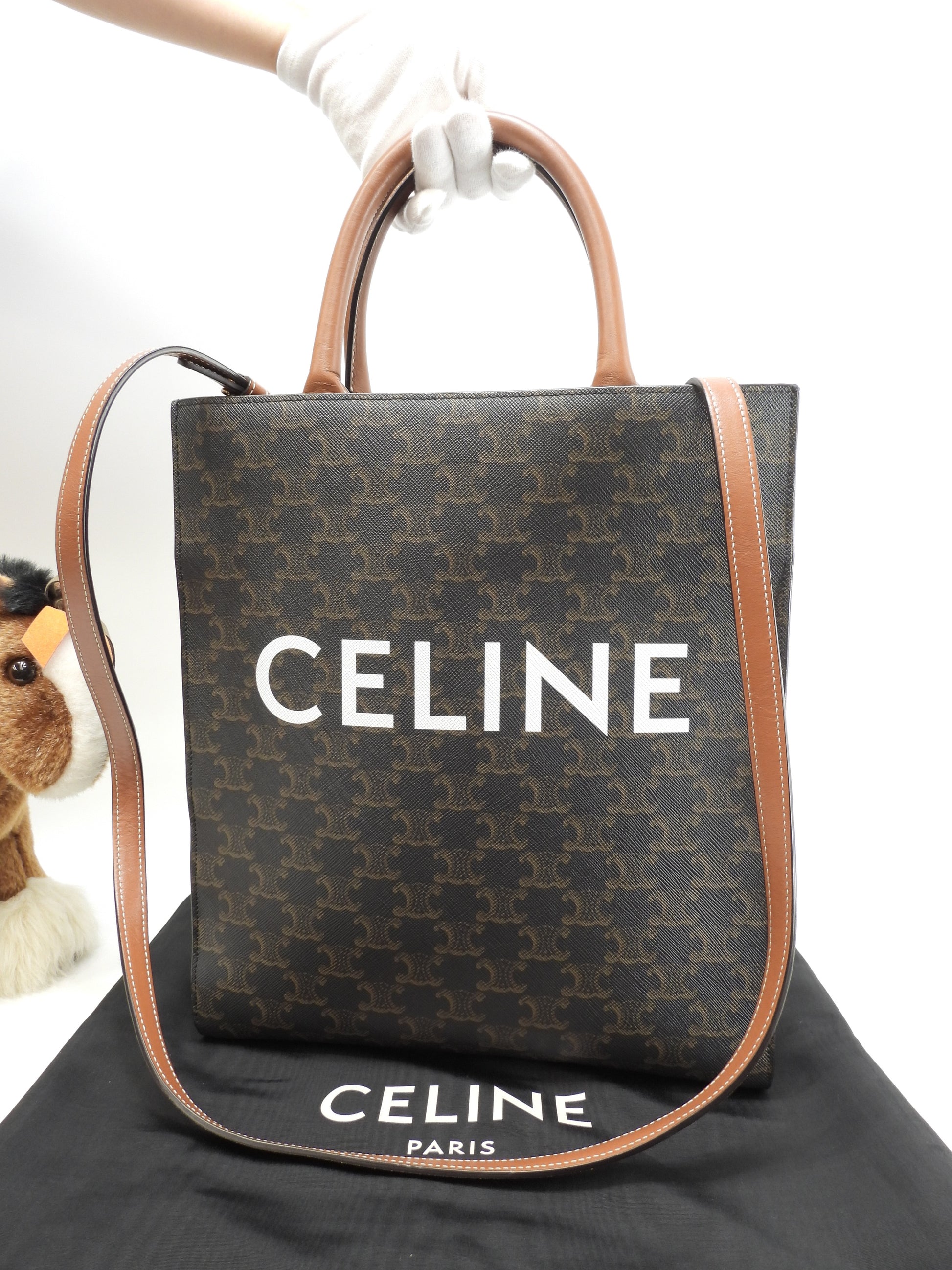 #Celine #HandBag #Strap #Medium #Vertical #Caba #VerticalCaba #TRIOMPHE #PVC #Leather #BK #Brown #80%new #authentic #Crossbody #Bag #Pochette #ShoulderBag #Gold #secondhand #wholeSale #haibanya #aisai-jp #転売可