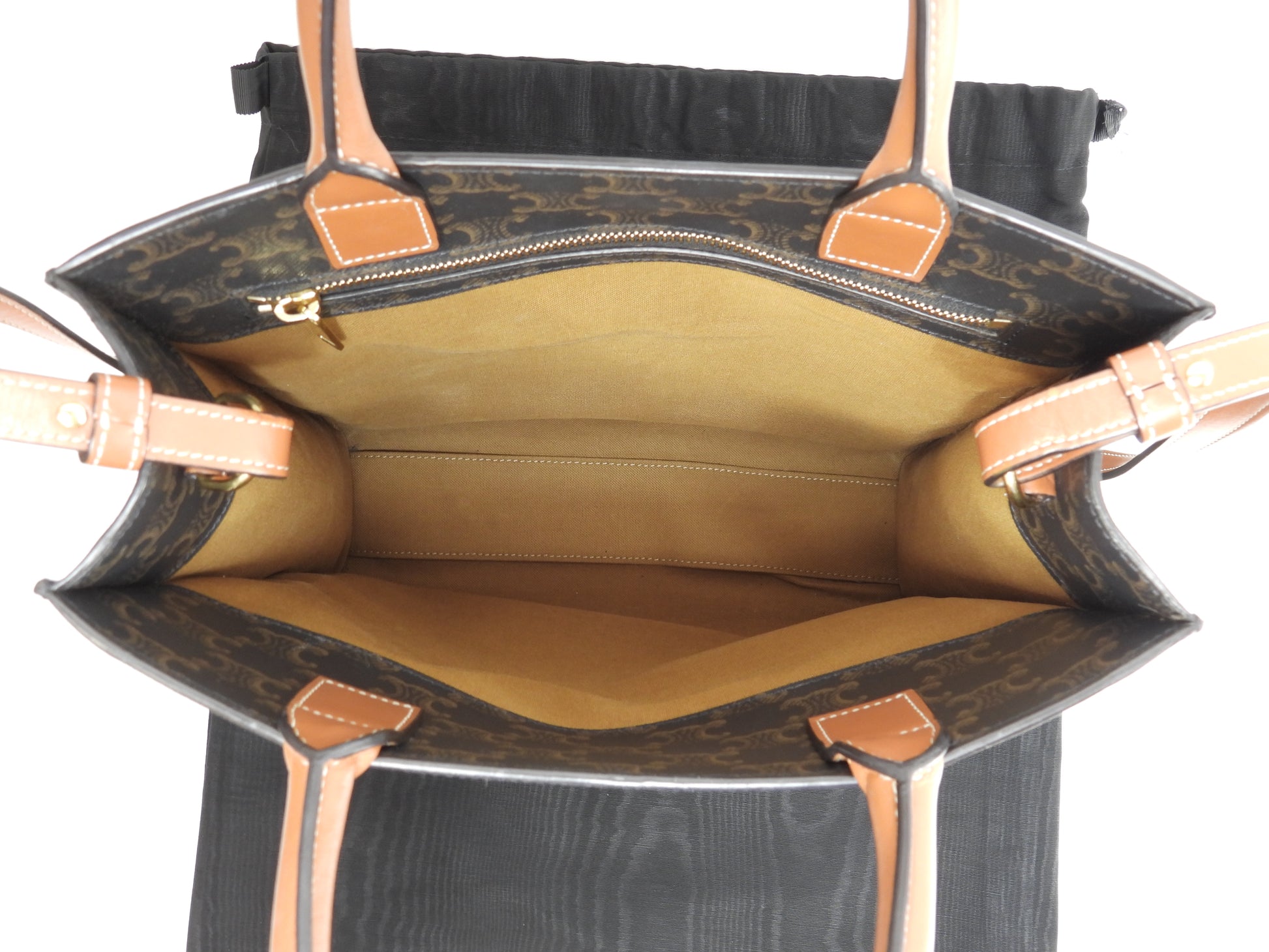 セリーヌ ミディアムバーティカルカバ トリオンフ 黒茶 s付ハンドバッグ トートバッグ 美品@U-LM-0290
