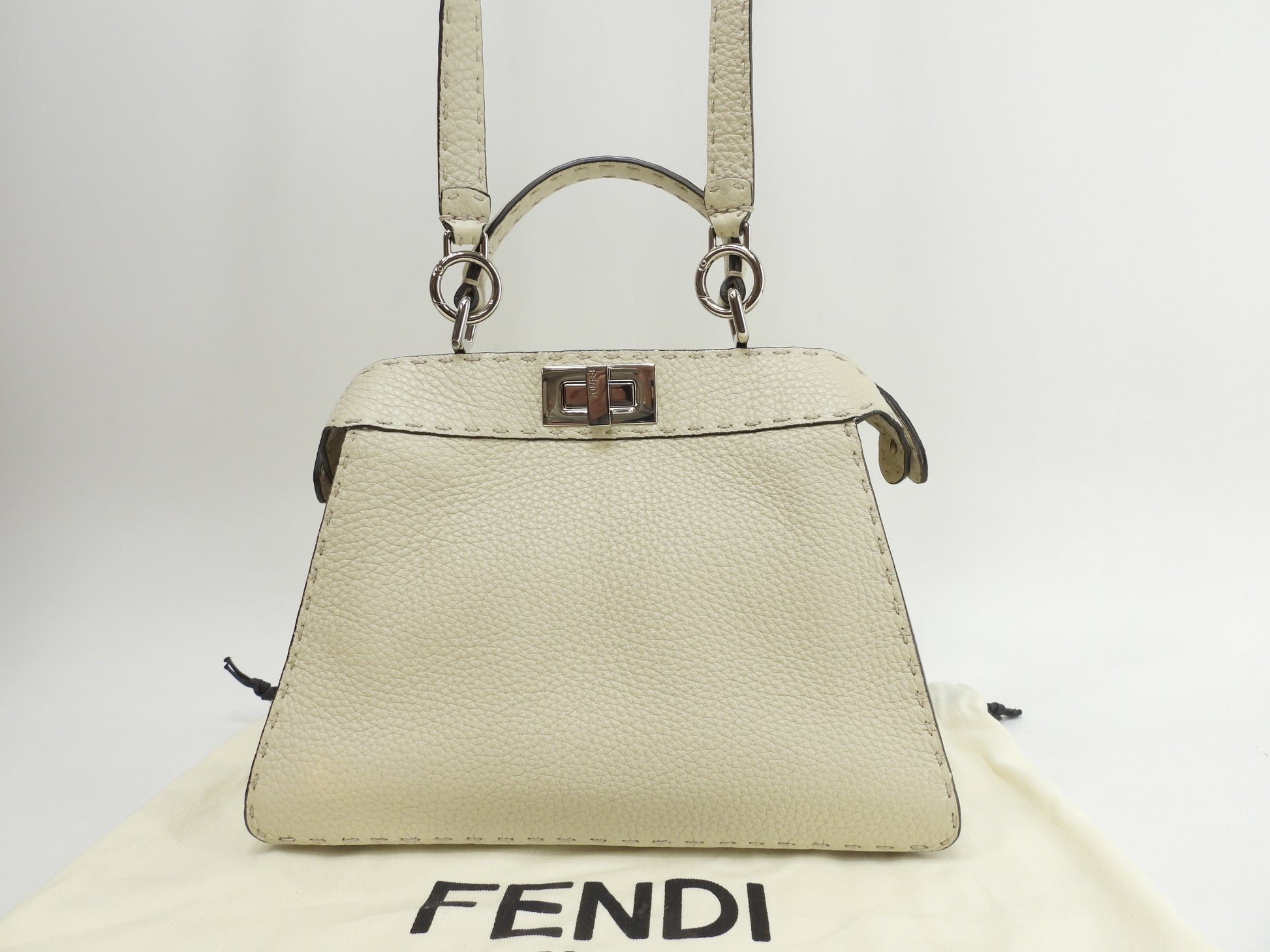 #Fendi #Peekaboo #MiniPeekaboo #ICONIC #Mini #Off-White #Selleria #Roman #Leather #85%new #authentic #HandBag #CrossbodyBag #Pochette #ShoulderBag #Strap #Bag #8BN327 #Silver #secondhand #wholeSale #haibanya #aisai-jp #転売可