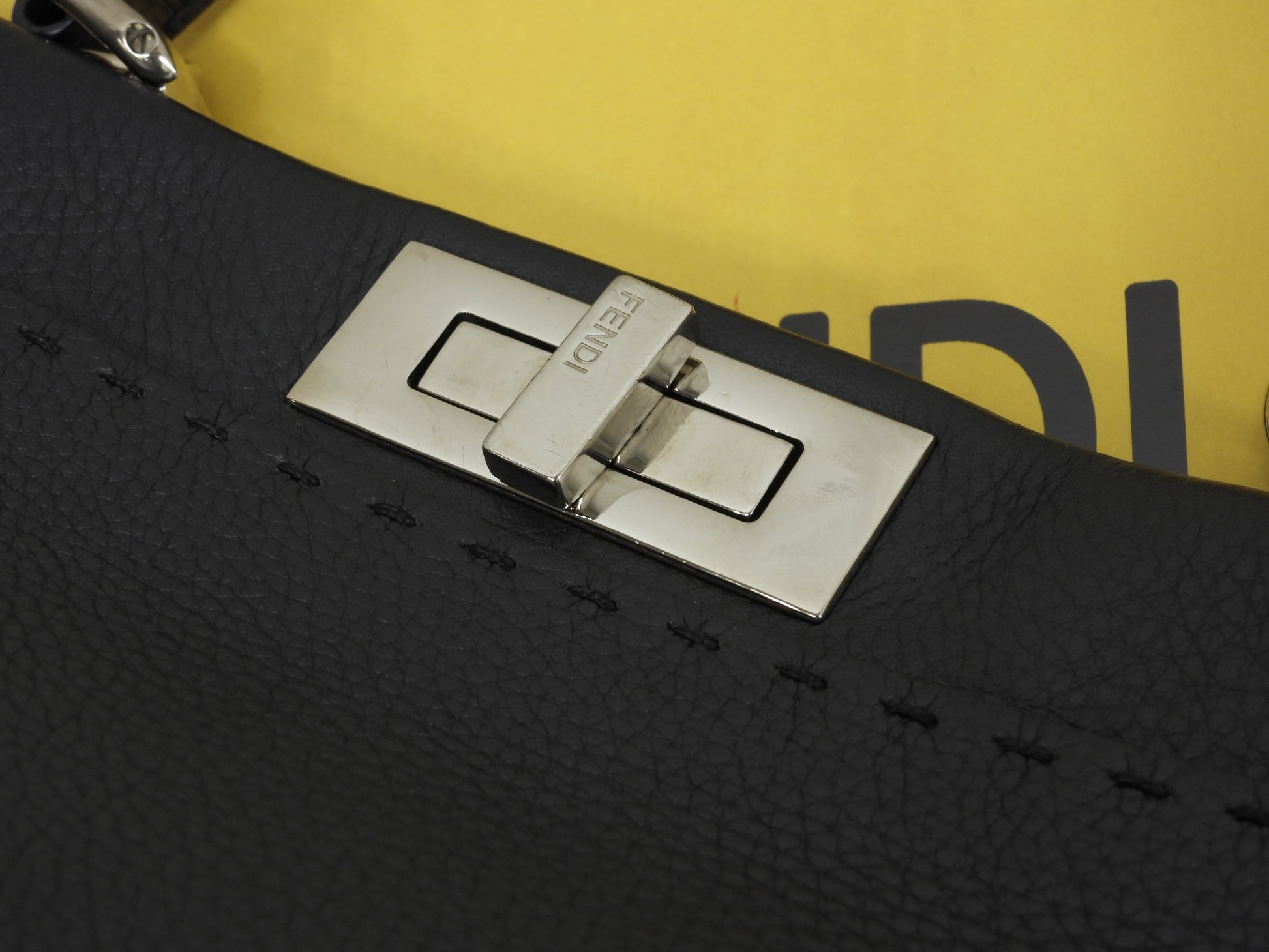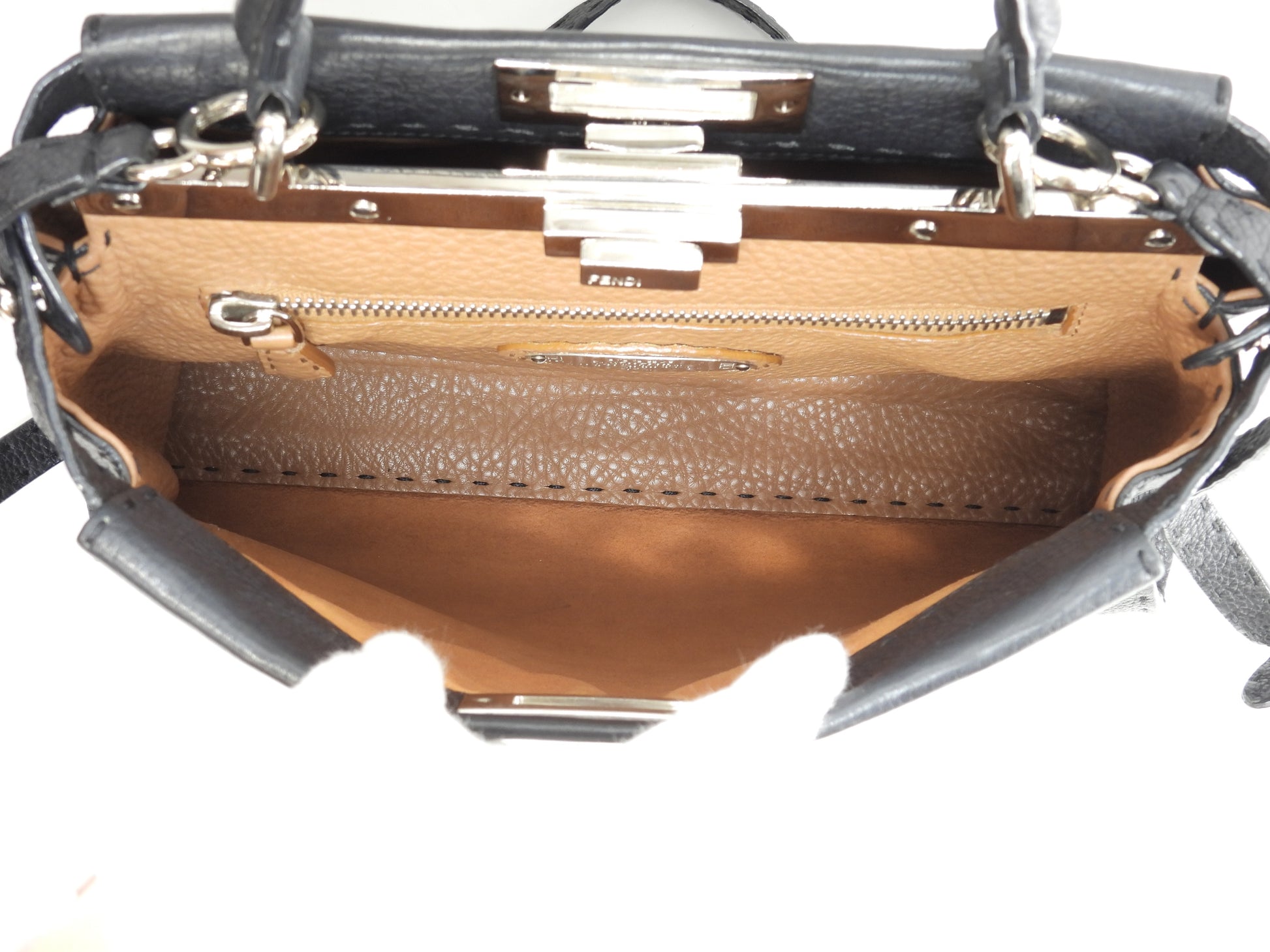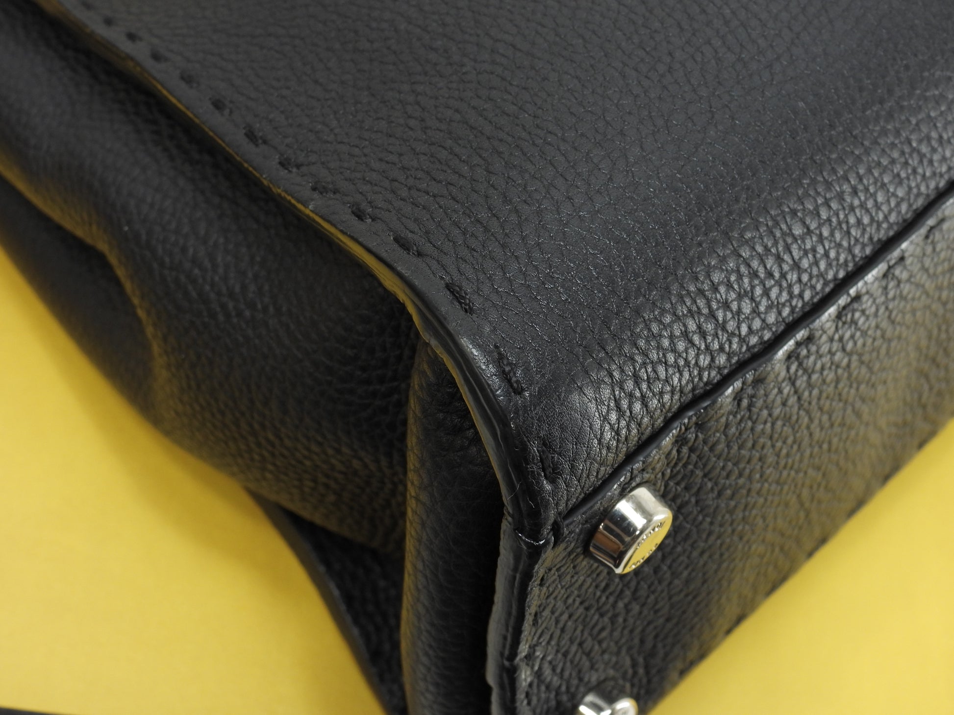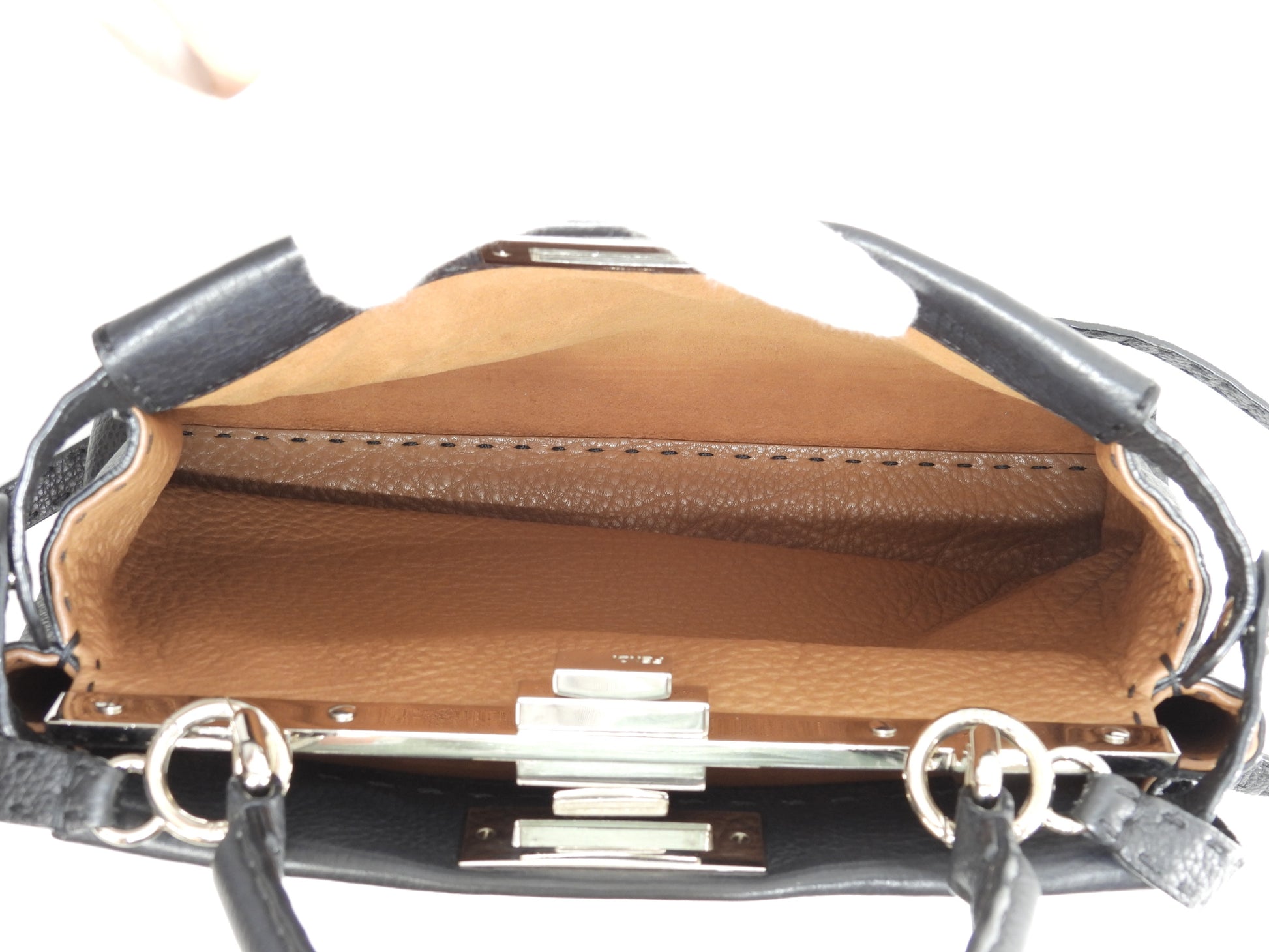 フェンディ ピーカブー レギュラー セレリアレザー黒 ストラップ付ハンドバッグ 美品@ 13
