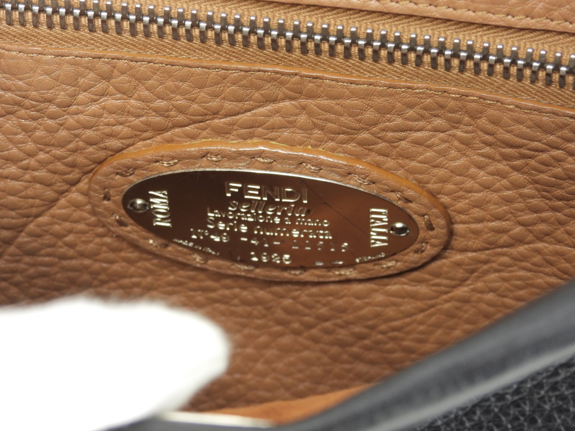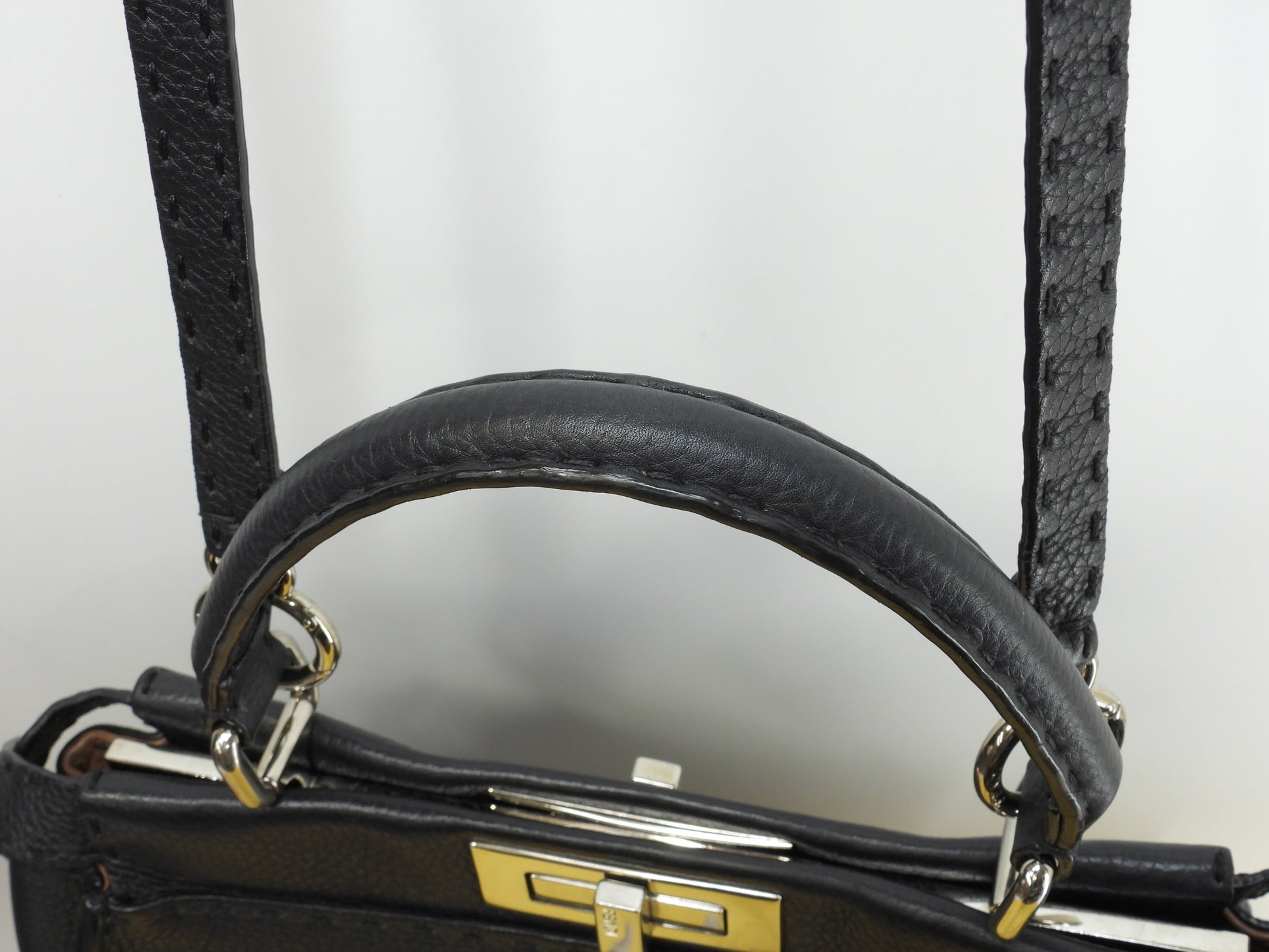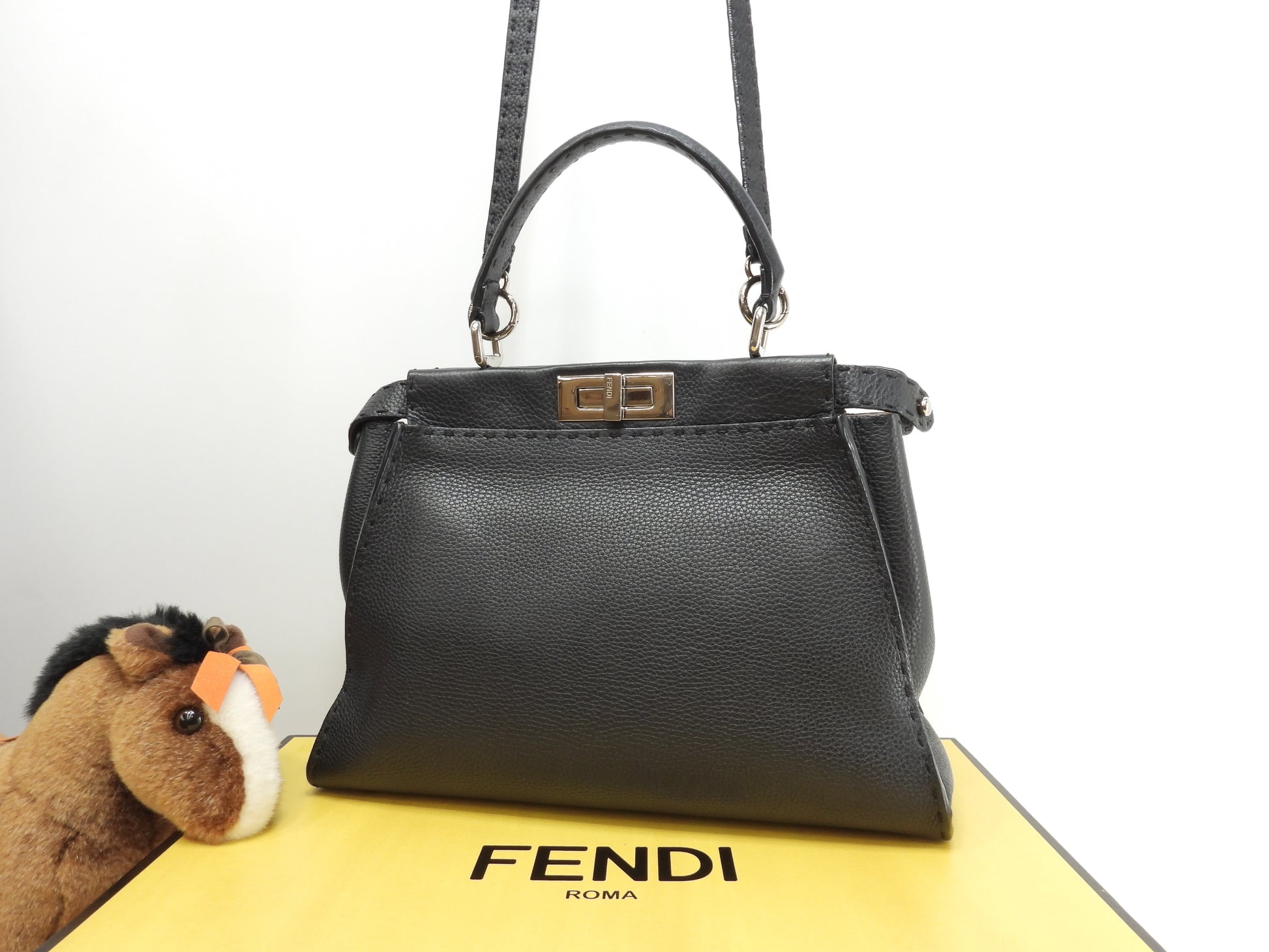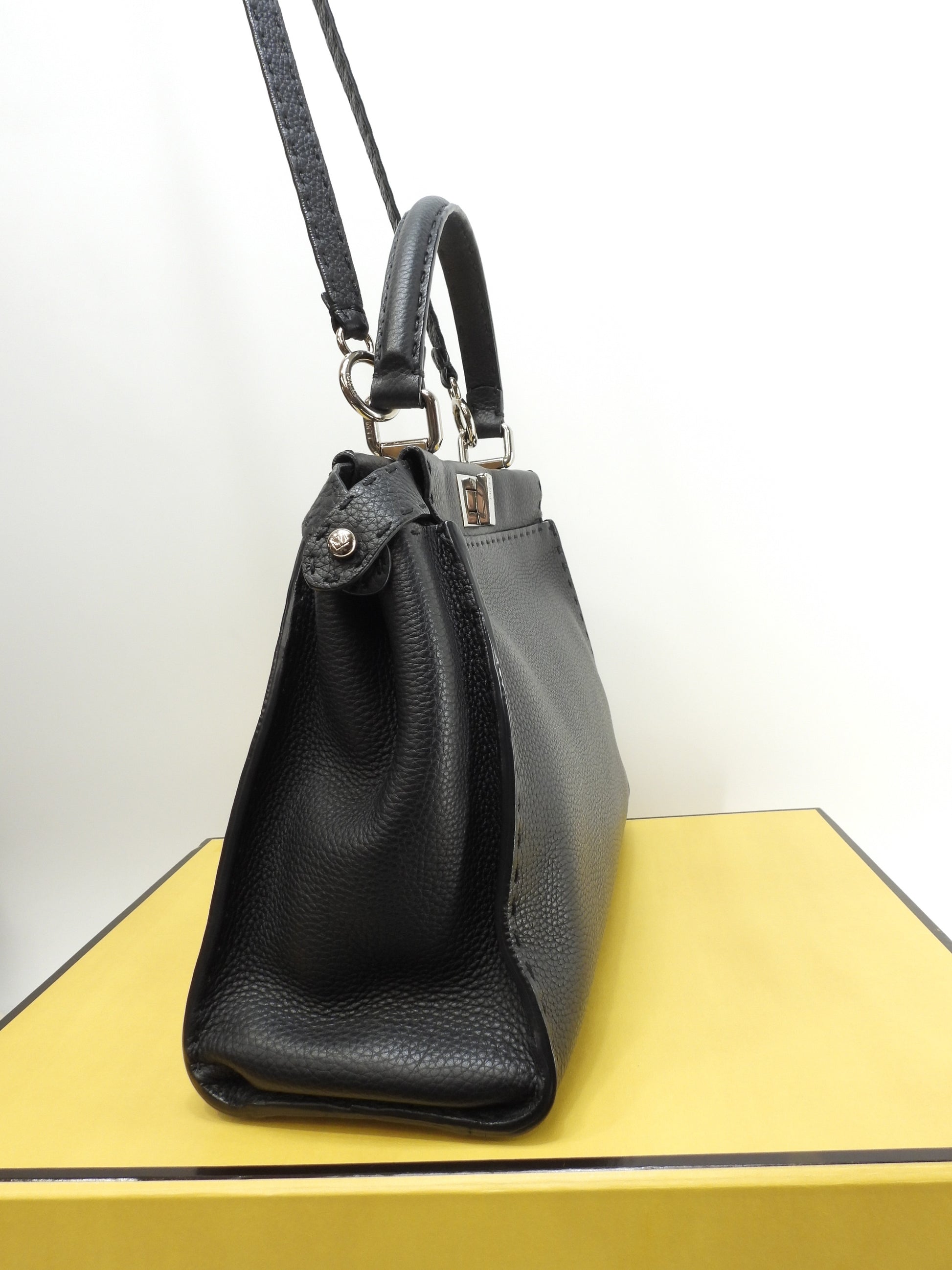 フェンディ ピーカブー レギュラー セレリアレザー黒 ストラップ付ハンドバッグ 美品@ 13