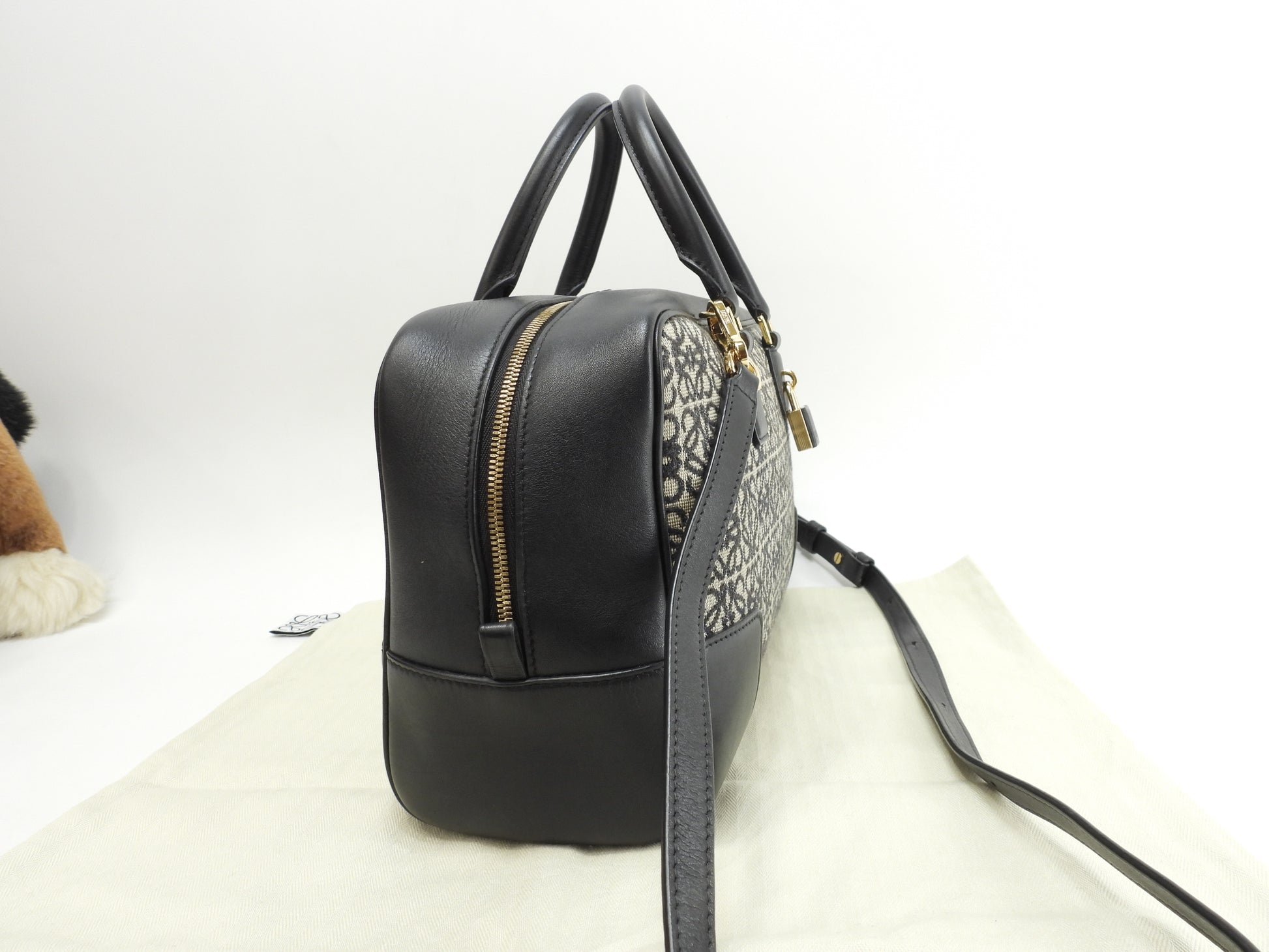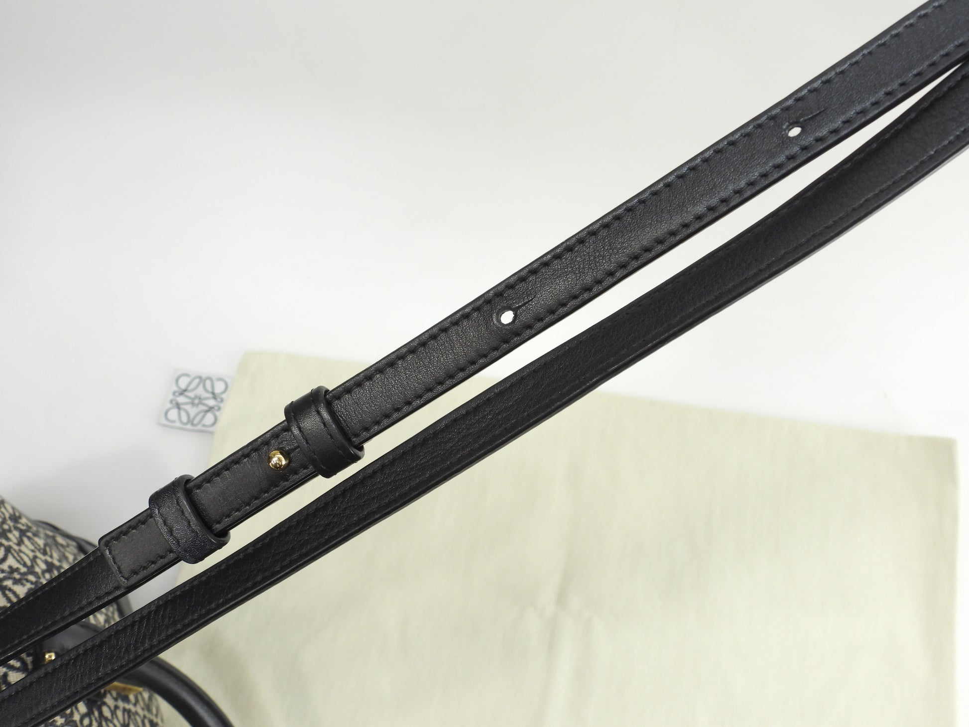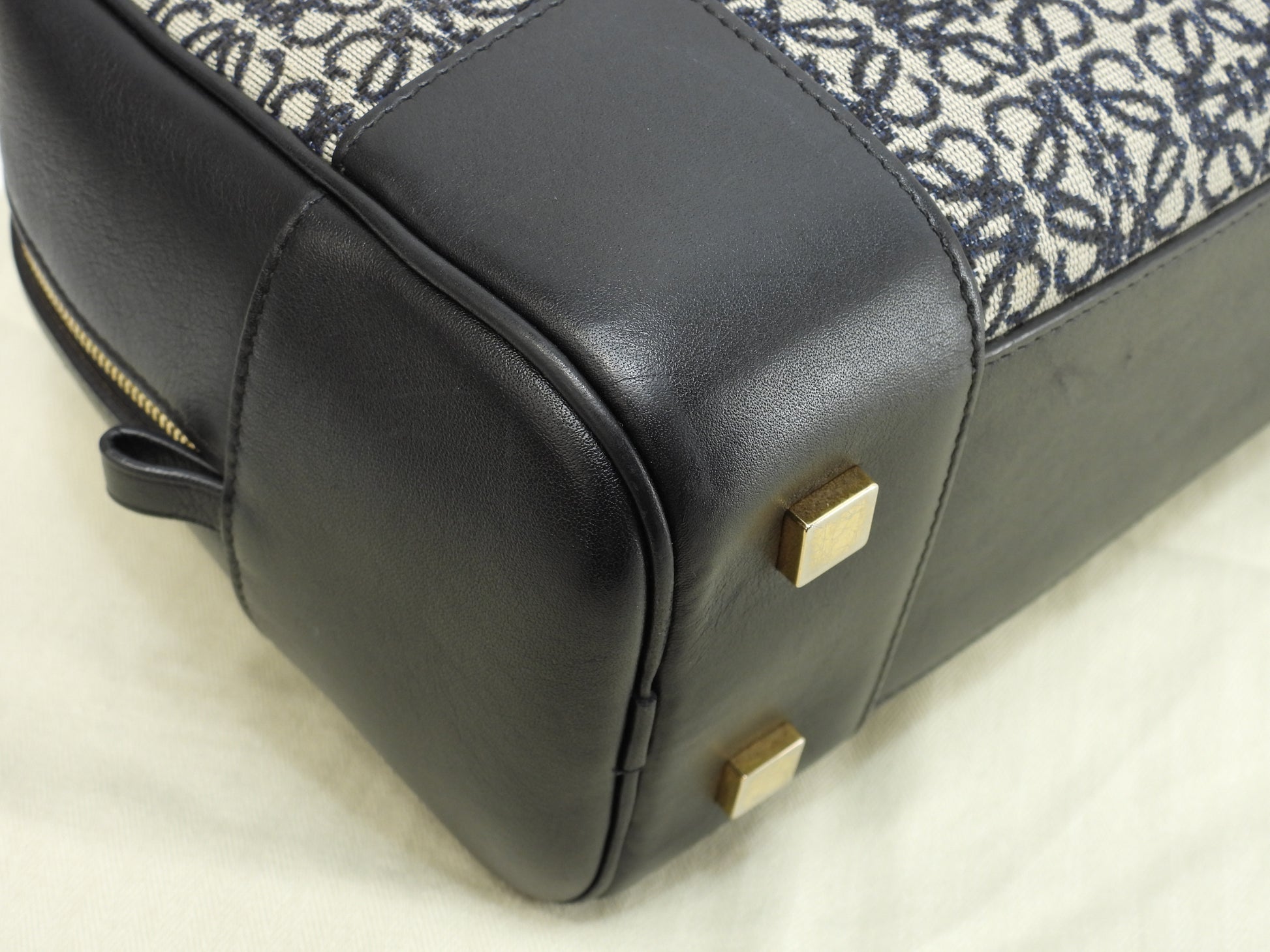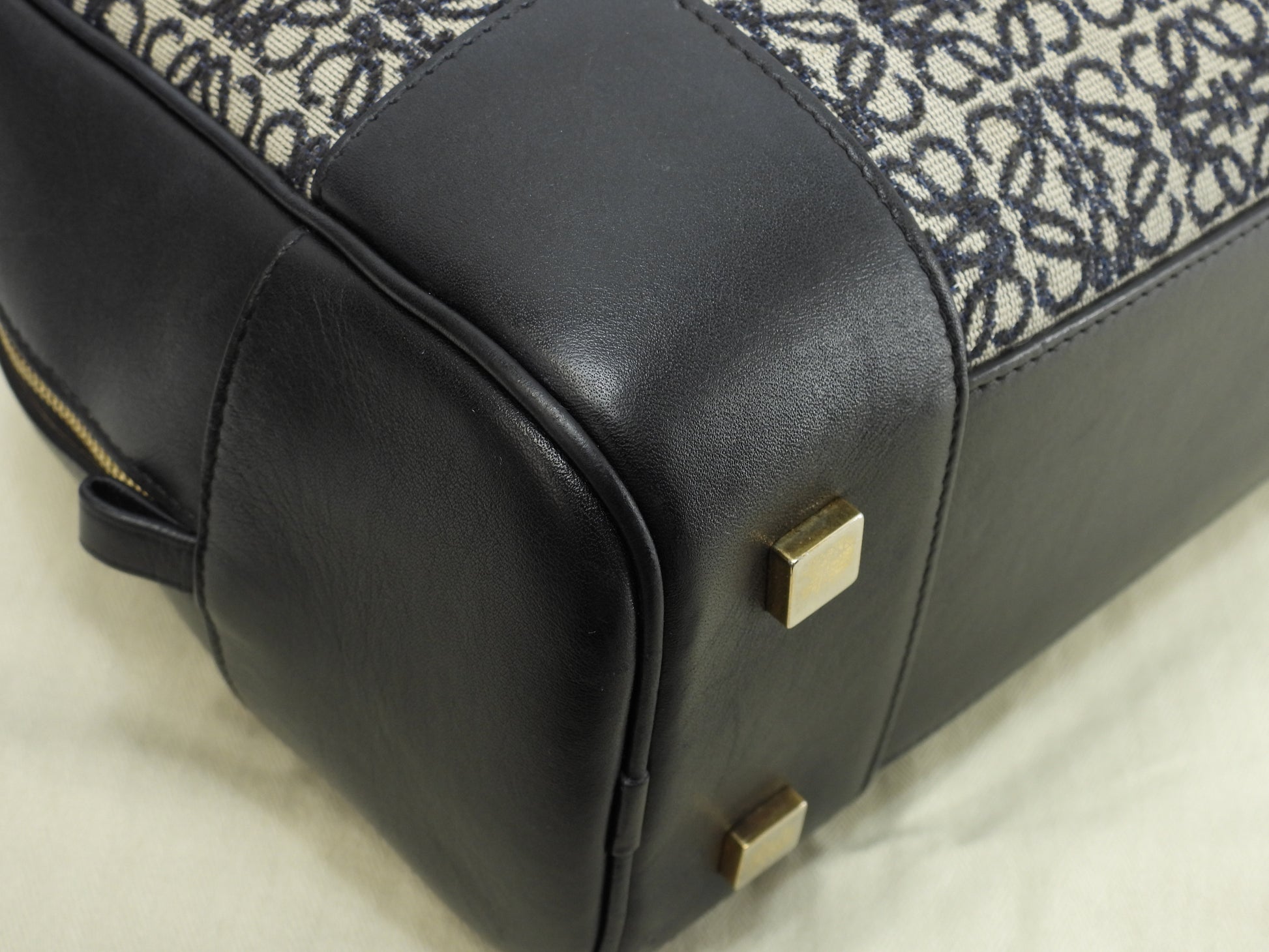 ロエベ アマソナ23 ジャガード/レザー 紺灰 ポシェット s付ハンドバッグ@262147 2