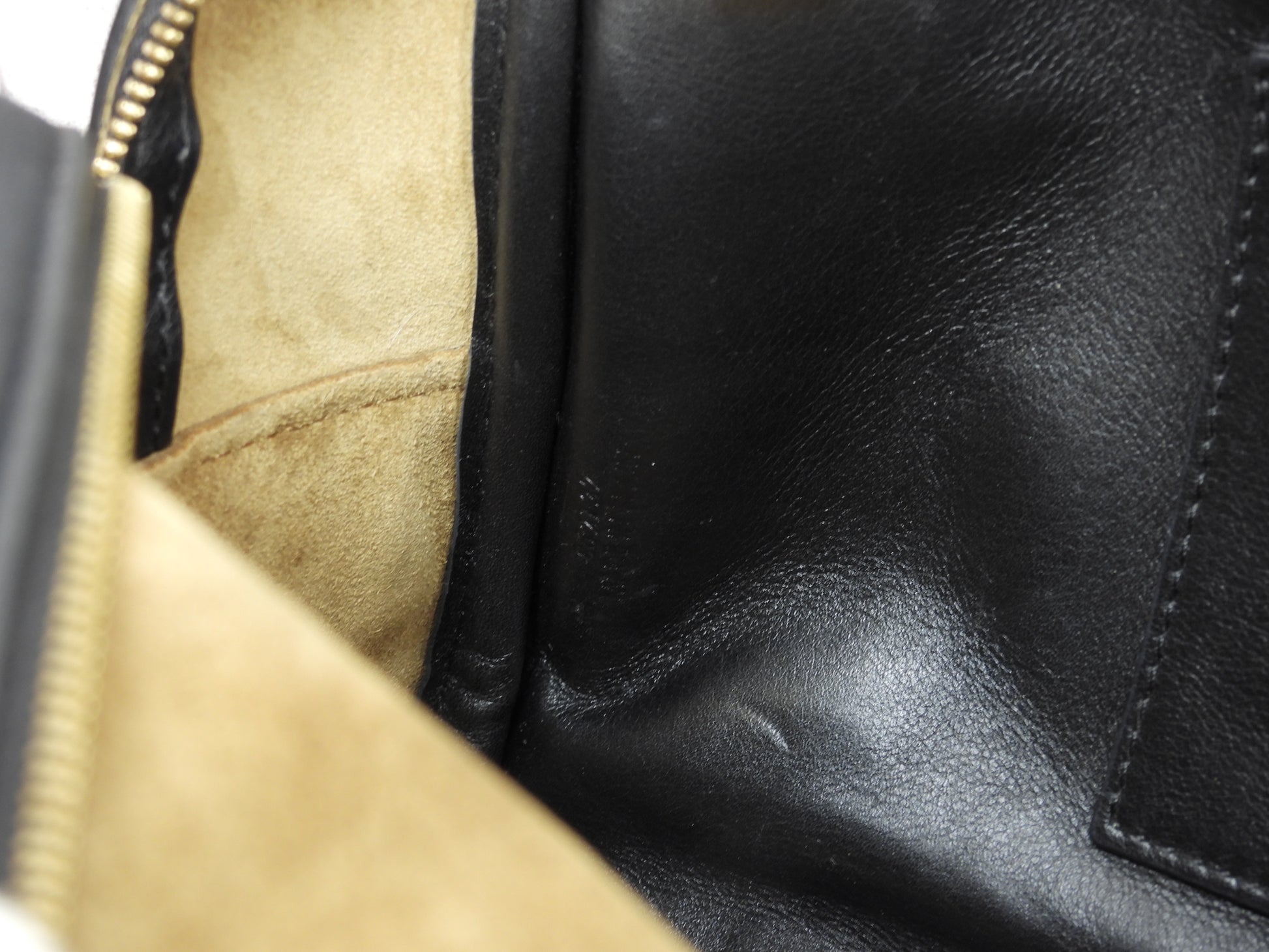 情報 : ボディは背面中央付近に擦れて色が薄くなっているところがございますが、その他シミ・汚れはございません。カデナの痕はほとんどございません。角・バッグ淵に薄スレが少しございます。ハンドルは気になるスレ・汚れ・弱りもなく状態は良いです。ショルダーストラップは気になるスレ・汚れ・弱りもなく状態は良いです。バッグ内は薄スレ・薄汚れ・薄シミが少しございます。ファスナーの開閉はスムースです。金具部分は薄スレが少しございますが、メッキ剥げもなくピカピカです。