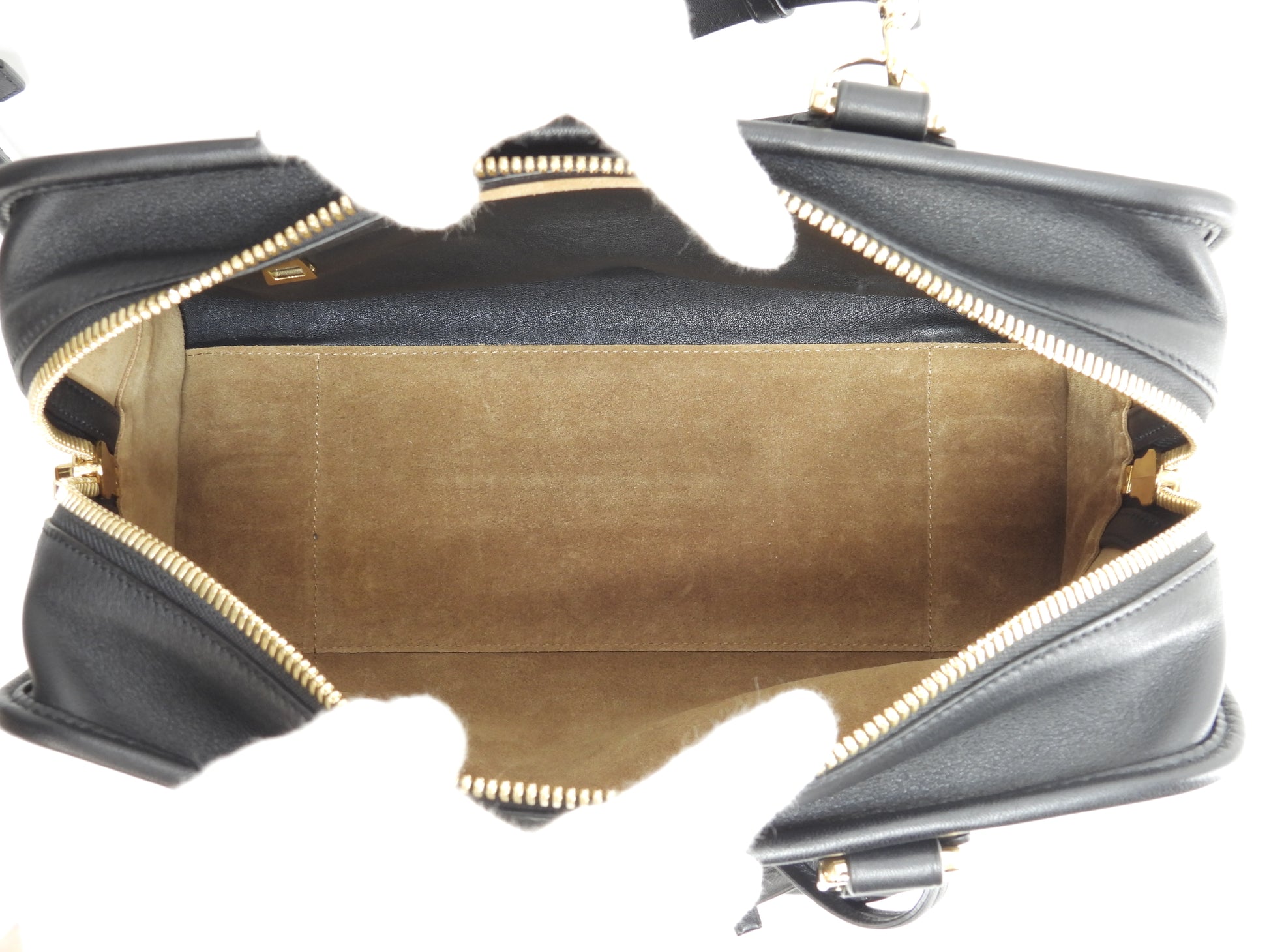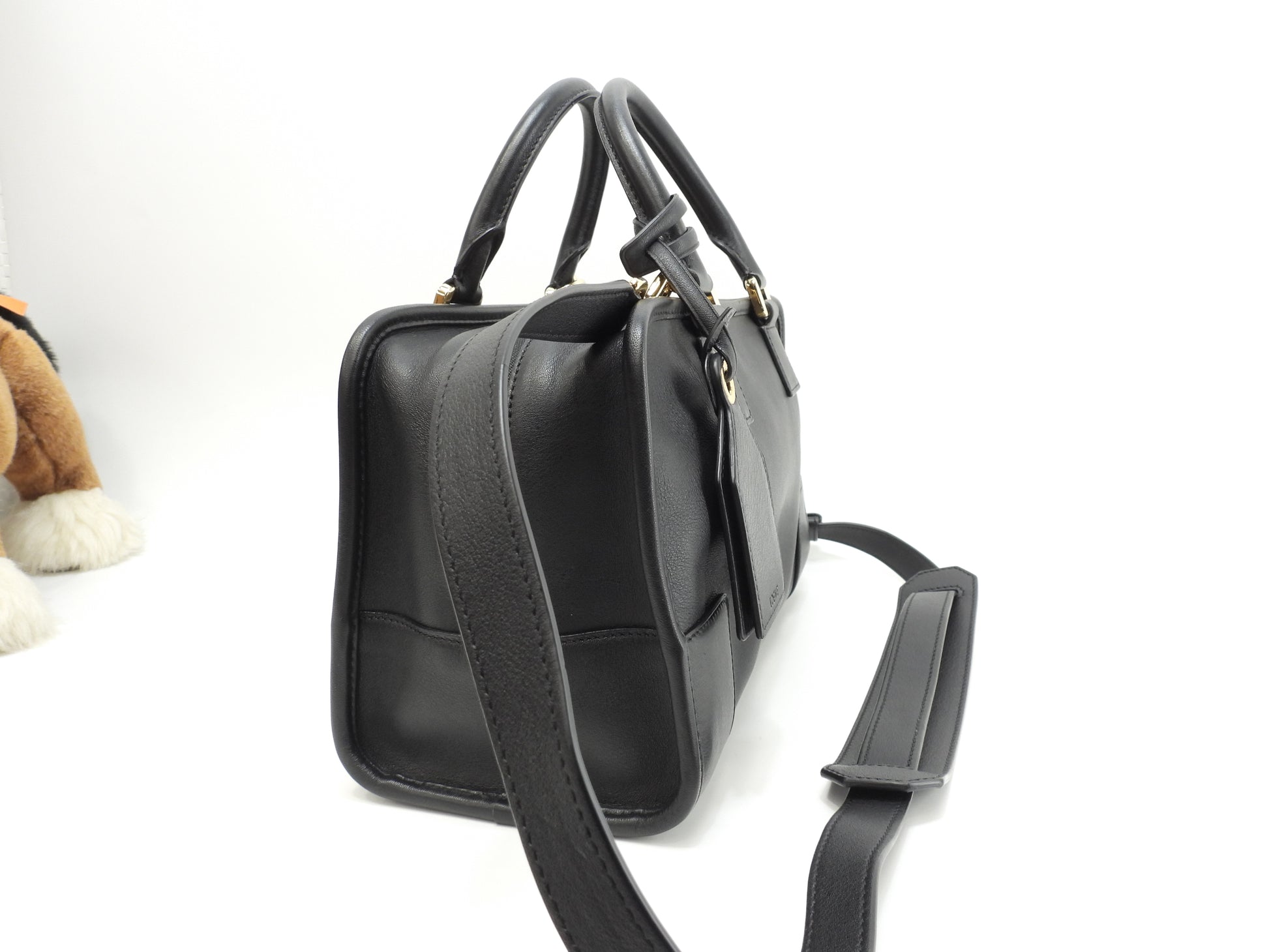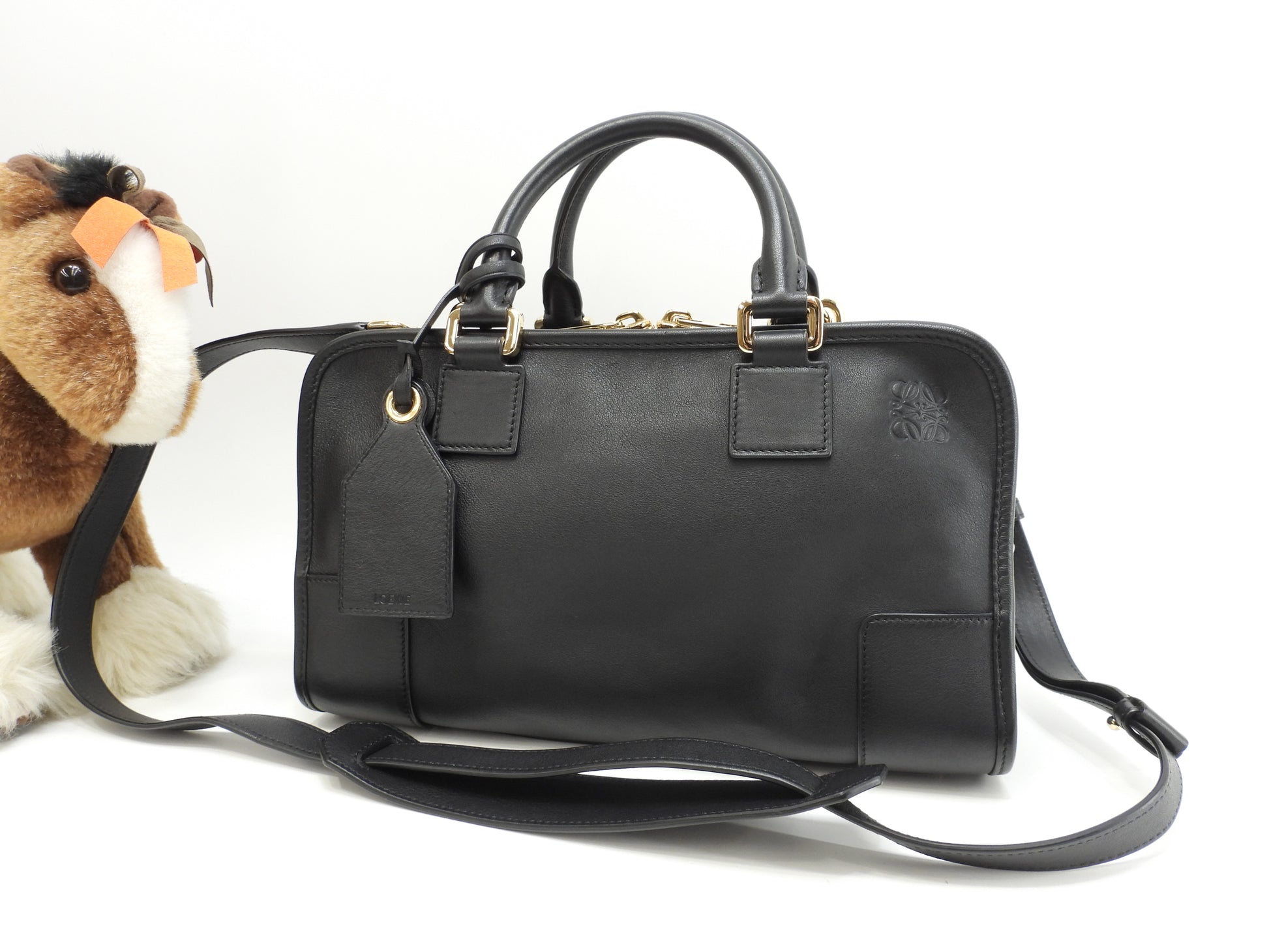 ロエベ アマソナ28 ストラップ付 スムースレザー黒 ハンドバッグ ゴールド金具 極美品@471702