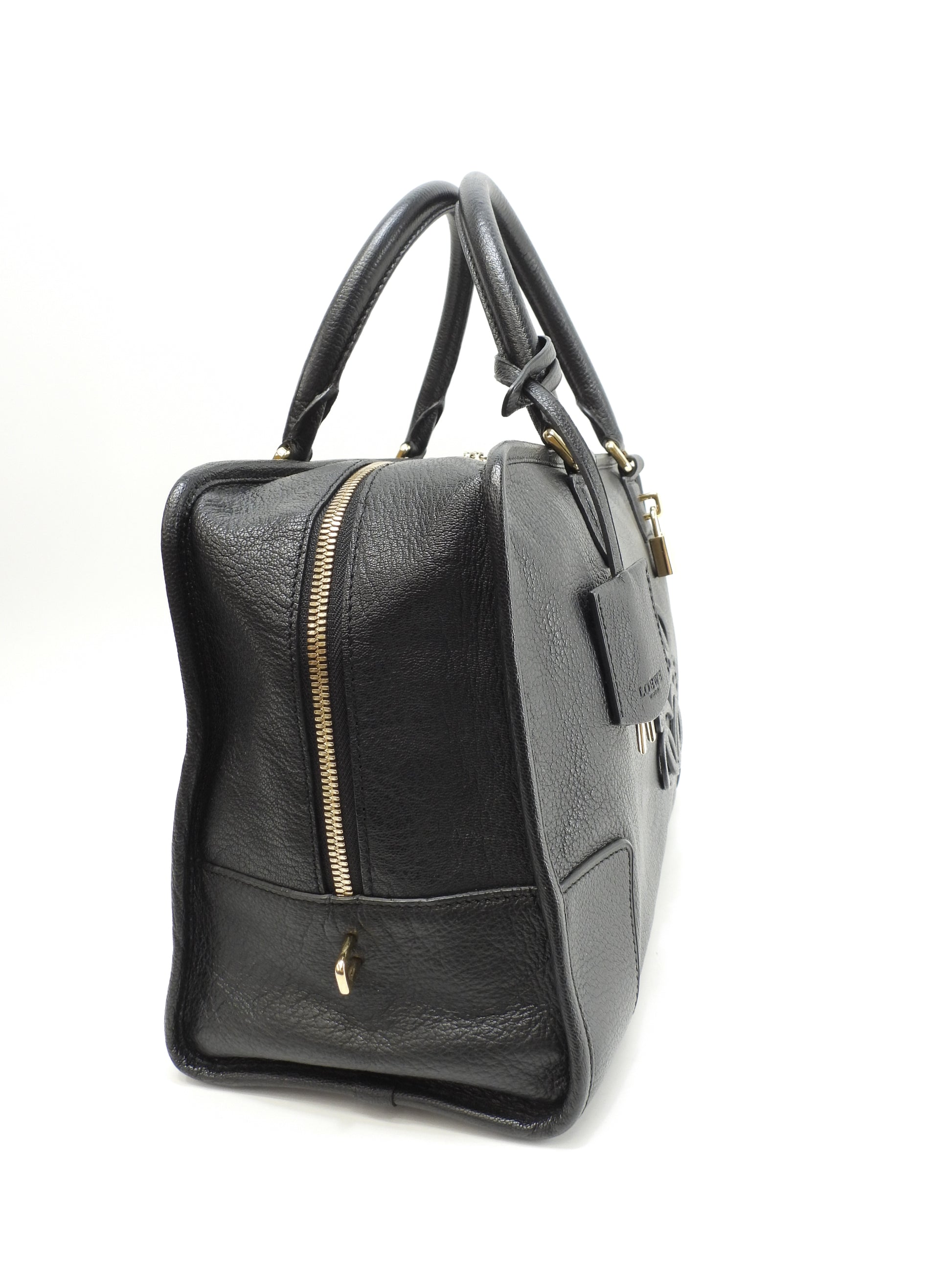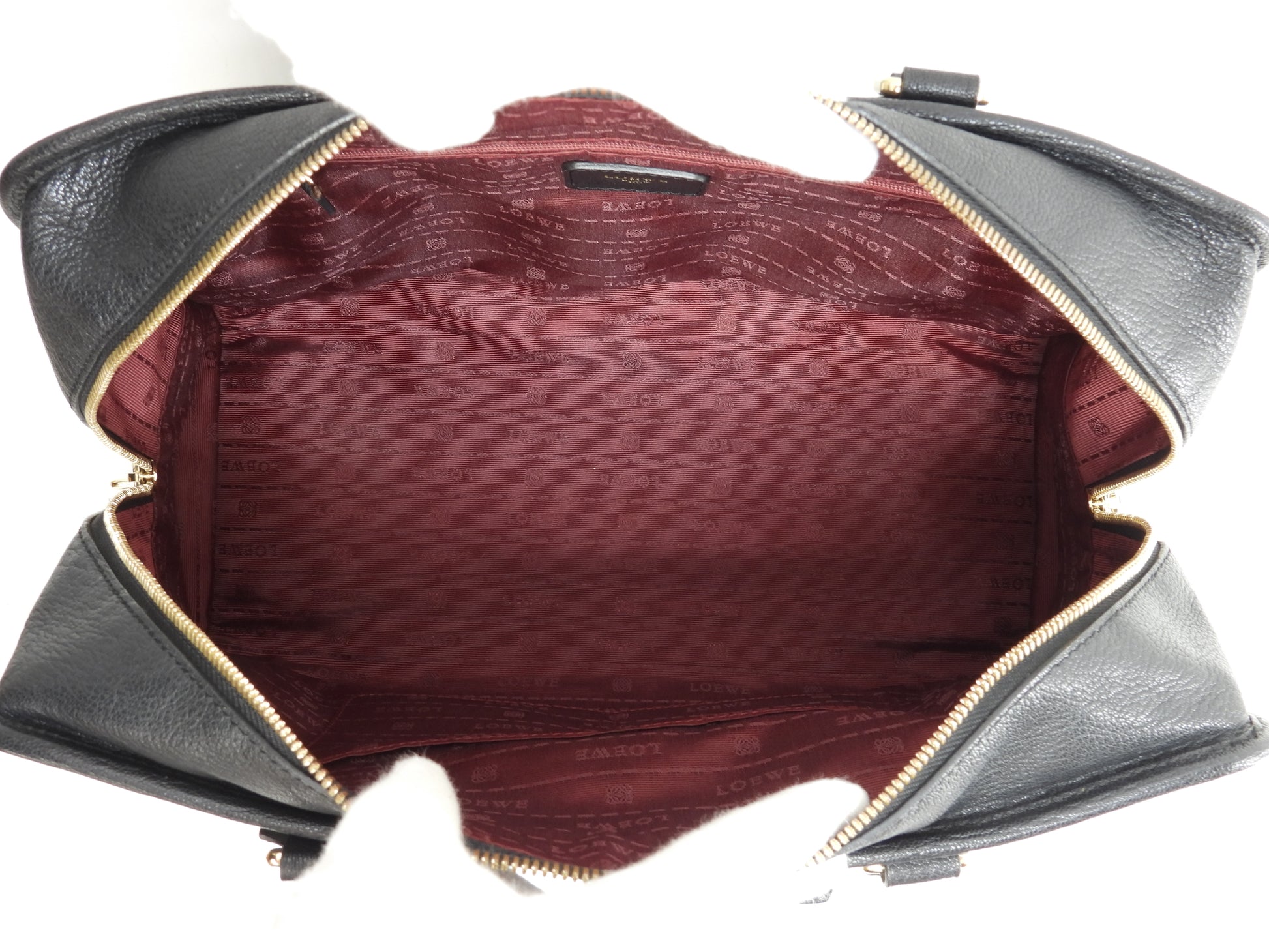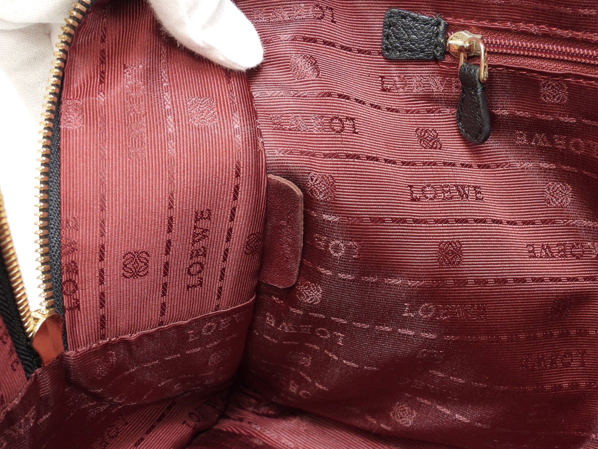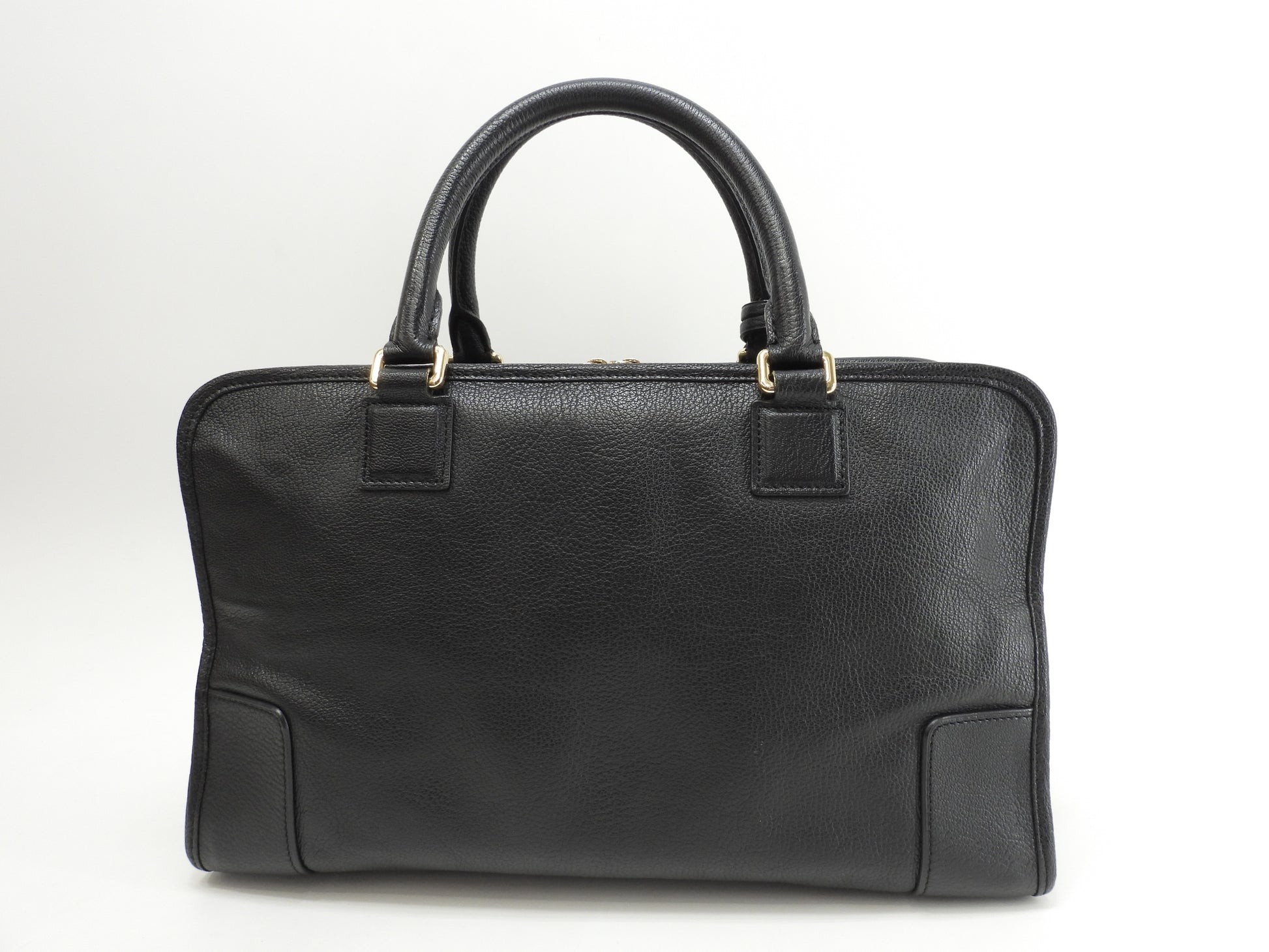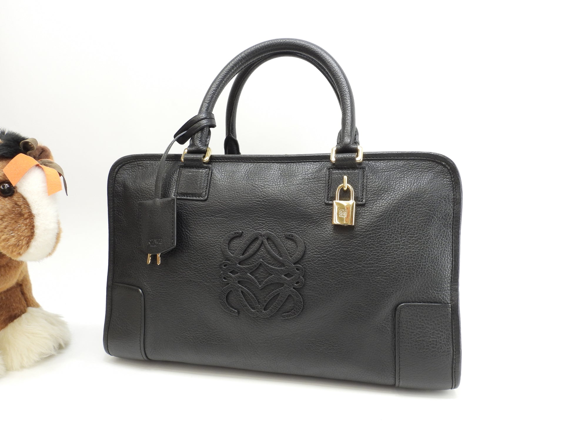 ロエベ アマソナ36 アナグラム 型押レザー黒 ゴールド金具 ハンドバッグ中 美品@011011 2