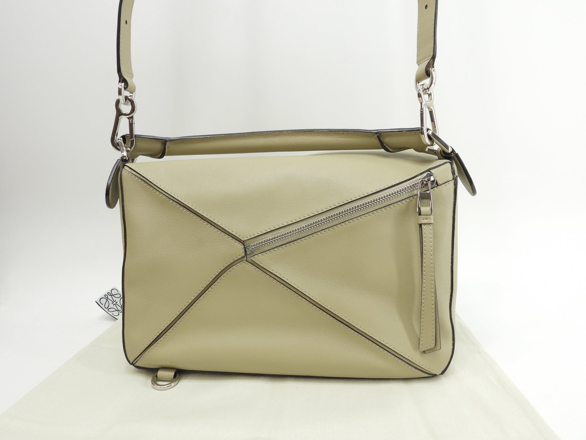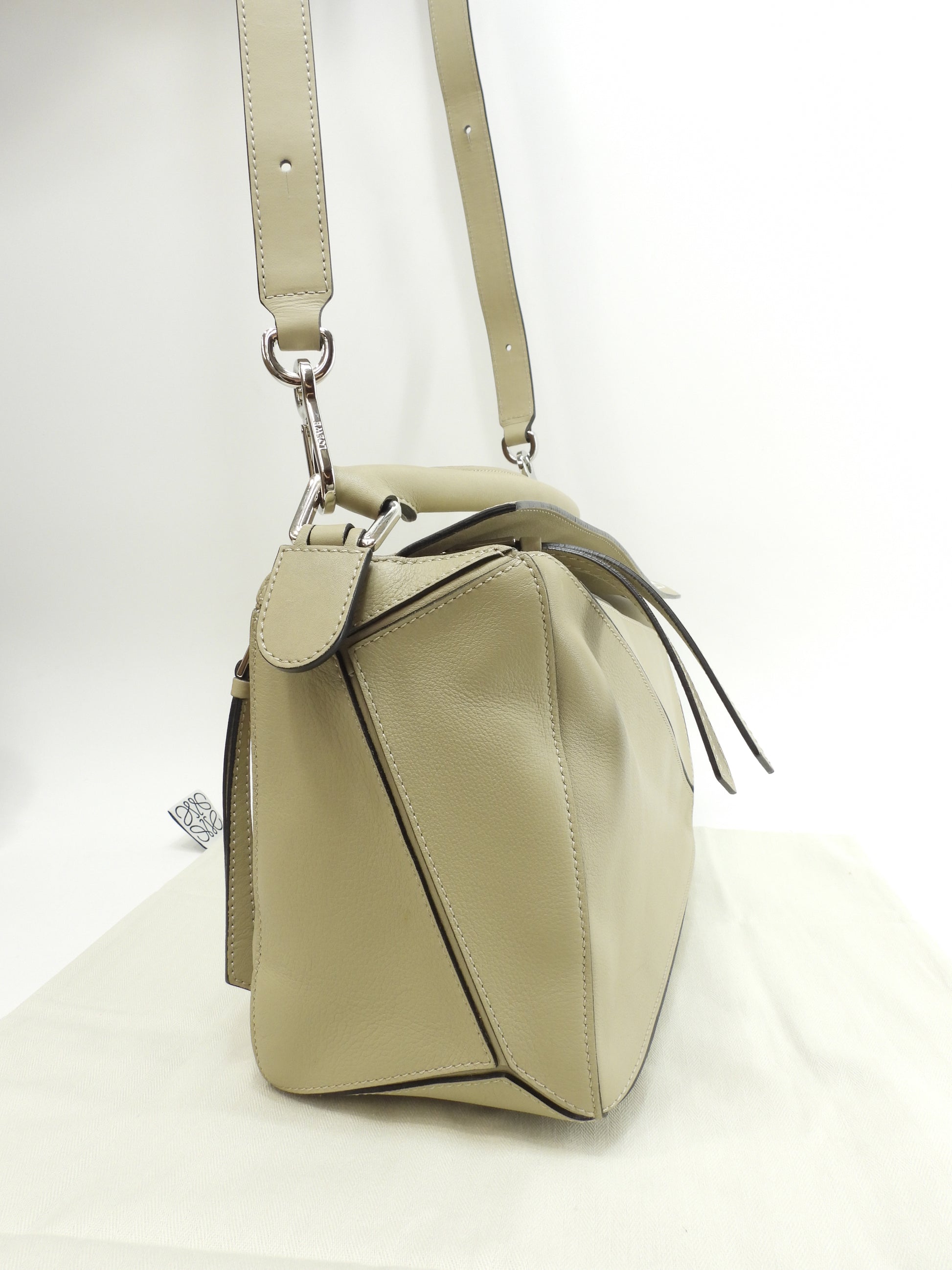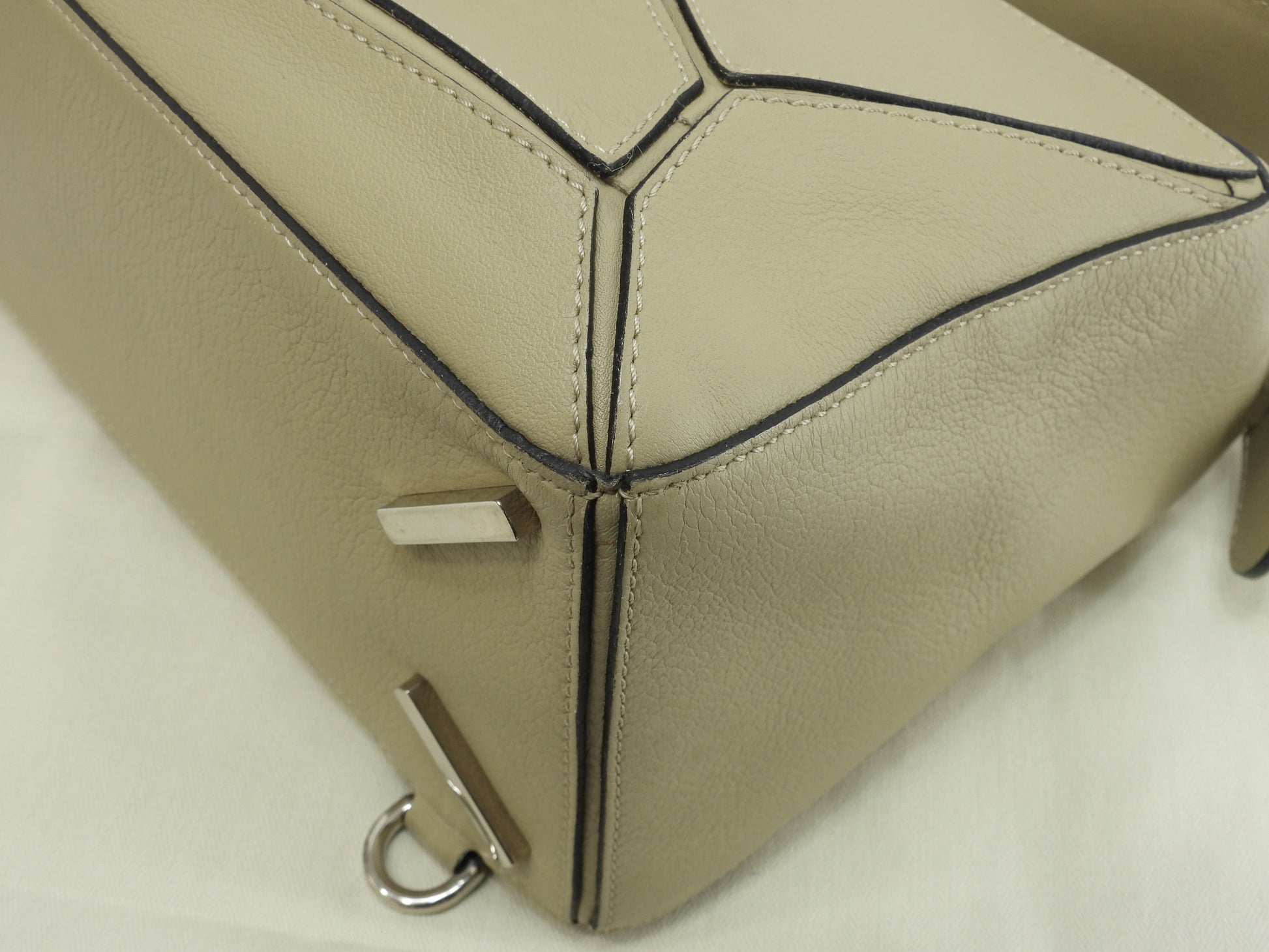 ロエベ パズルバッグ ミディアム レザー/グレージュ ショルダーストラップ付ハンドバッグ 美品@ 5
