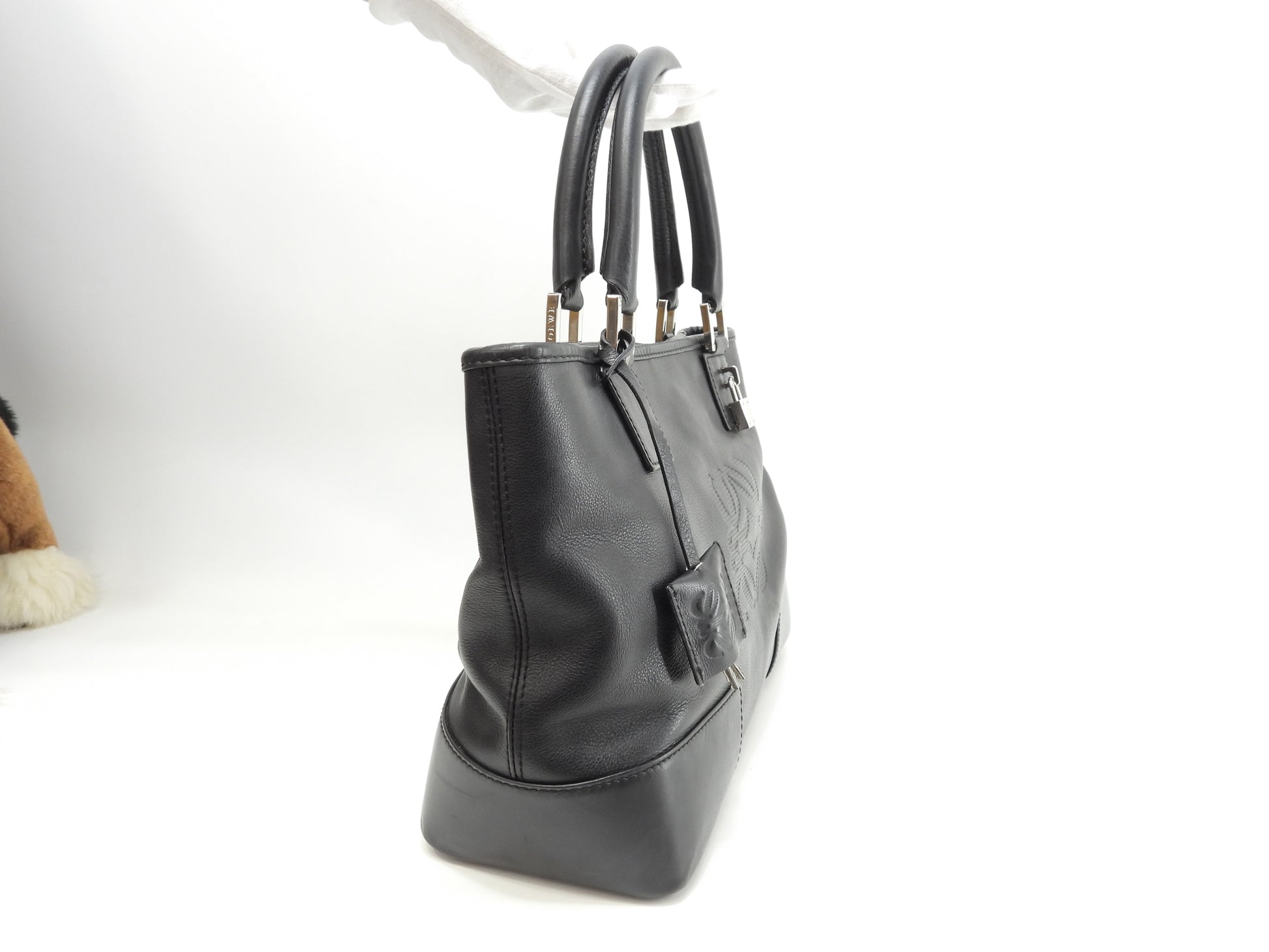 ロエベ フスタ30 レザー黒 シルバー金具 ハンドバッグ トートバッグ@060806